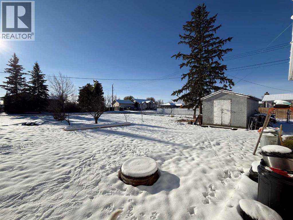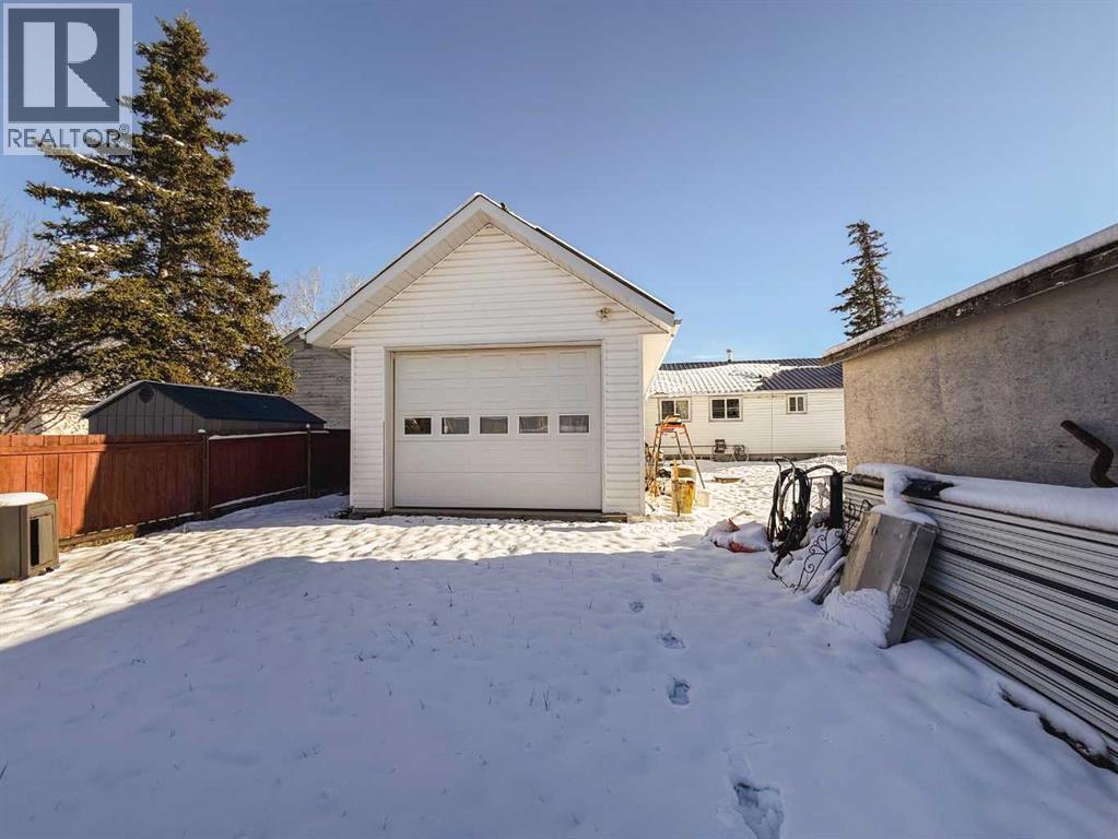 Move-in ready in charming Rycroft! This 3-bedroom, 1-bath bungalow sits on a hugely generous double corner lot, featuring a 70×16-foot attached heated drive-through garage with two doors—your ultimate workshop, toy garage or vehicle storage space. Inside, you’ll find a spacious living room and kitchen with ample cupboard space, and recent upgrades in bathroom incl. flooring and window. Downstairs is laundry plus a large unfinished room—perfect for storage. The west-facing backyard is ideal for evening BBQs and comes with a large, partially fenced yard for ease and versatility. Location matters: Rycroft offers full-service small-town living with a school, library, dance studio, arena, grocery store, hotel and other retail amenities all within reach. Every summer you’ll also find the community coming alive with the signature chuckwagon races and rodeo-style fun. This home is ideal for someone who wants a move-in ready base, huge garage space for hobbies, vehicles or gear, and all the comfort of updates—without the fuss. Don’t miss your chance, call to book your showing today. (id:63190)
