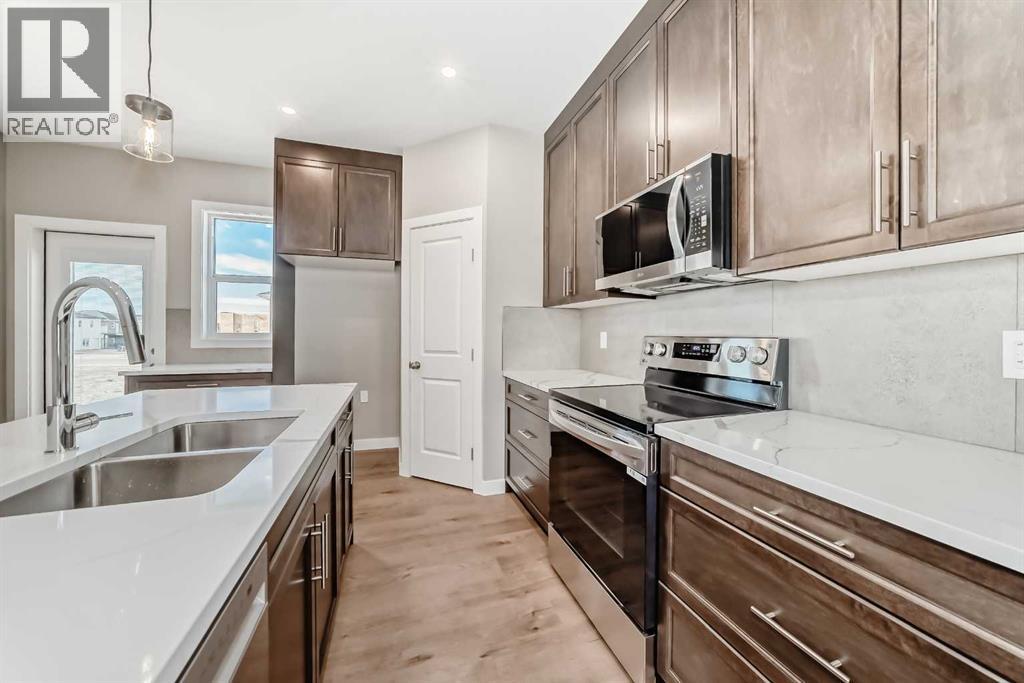 Welcome to your BRAND NEW home in the desirable community of Timberlands North. . Built by top builder BRODER HOMES, this beautifully designed bi-level offers modern finishes, an open-concept layout, and plenty of room to grow. The main level features three bedrooms, including a spacious primary suite with a WALK-IN CLOSET and an attractive ensuite with double shower. The bright and open living area is perfect for family living and entertaining, showcasing vinyl plank flooring, QUARTZ COUNTERTOPS, and stainless steel appliances. Two additional bedrooms and a full main bathroom complete the main floor. The unfinished basement provides the opportunity to add even more living space — with roughed in FLOOR HEAT, potential for two additional bedrooms, a rec room, and another bathroom, allowing you to customize it to your family’s needs. A double attached garage complete with a floor drain adds convenience and storage, while the home’s location in a growing new neighborhood offers easy access to parks, schools, shopping, and amenities. Discover the quality and craftsmanship Broder Homes is known for in this stylish new build — the perfect place to call home in Red Deer’s Timberlands North (id:63190)