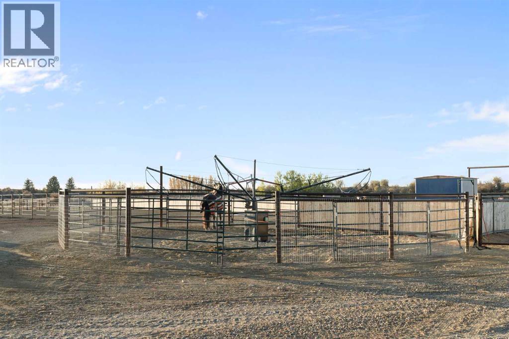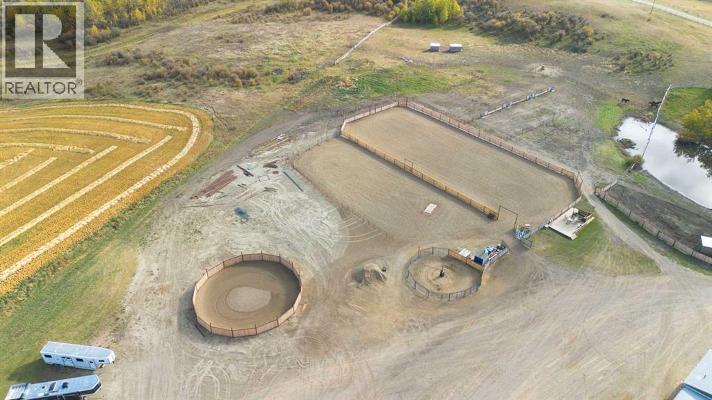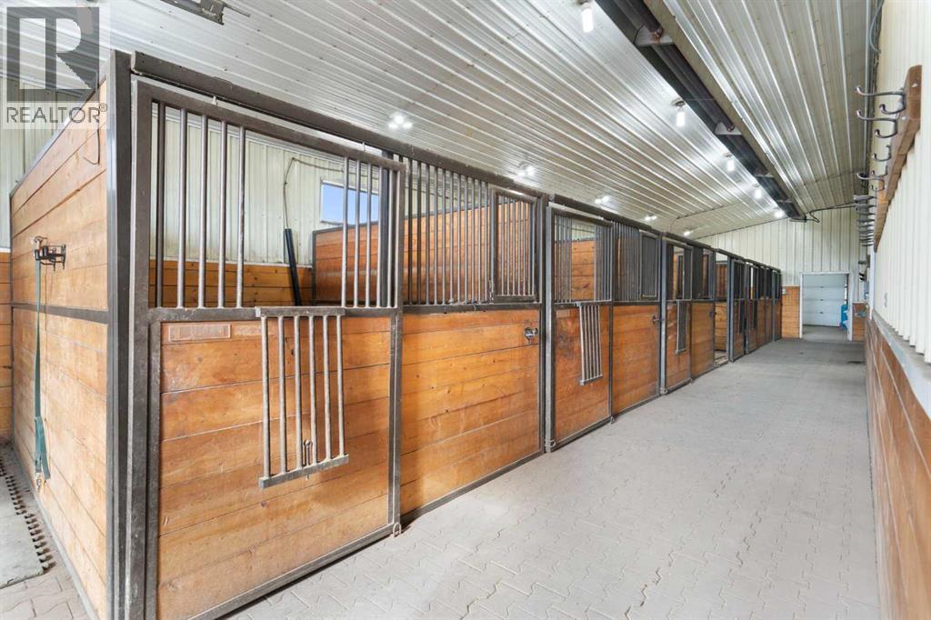 You can let the horses out of the barn—but you can’t take the passion out of a property like this. Thoughtfully designed for serious horse enthusiasts, this 107-acre equestrian facility just north of Calgary offers an exceptional blend of functionality, efficiency, and comfort. Every element has been designed with purpose, making daily operations smoother and the lifestyle truly rewarding.Step into a meticulously planned barn and arena complex that combines practicality with modern efficiency. Features include: heated indoor arena (80’ x 175’) with freshly releveled sand footing; two outdoor arenas (100’ x 210’ and 120’ x 140’); 65-ft, 8-ft-high round pen; hot walker; infrared solarium in the wash rack for year-round conditioning; auto waterers to all stalls; 17 paddocks and 24 shelters across the property; three ~10-acre pastures with excellent grass; insulated lean-to with bobcat bay; Energy Regulation System currently saving up to 28% on utilities; and three shipping containers (one fully converted for blanket storage with racks). The back 70+ acres is ready for the new year with a custom horse hay-blend, previously producing 200-280 round bales per season.Set on 107 private acres, this property offers space, seclusion, and natural beauty. The land is quiet and private, with neighbours rarely around, yet still benefits from school bus service with priority snow clearance and proximity to schools in Cochrane.The main residence is impeccably maintained and showcases a mountain view out of your living room windows. This bungalow has a walkout basement with illegal suite, and newer windows, electrical panel, furnace and hot water tank. A triple-car garage with 220V power adds versatility for tools or trailers, while a concrete parking pad out front adds even more practicality.This is not your average acreage — it’s a turnkey, intelligently designed equestrian operation with proven systems, established supplier relationships, and the perfect blend of form and func tion.If you’re looking for a facility that works as smart as you do, with the peace and privacy of Alberta’s countryside, this property delivers on every level. **See iGuide of House and Barn) (id:63190)