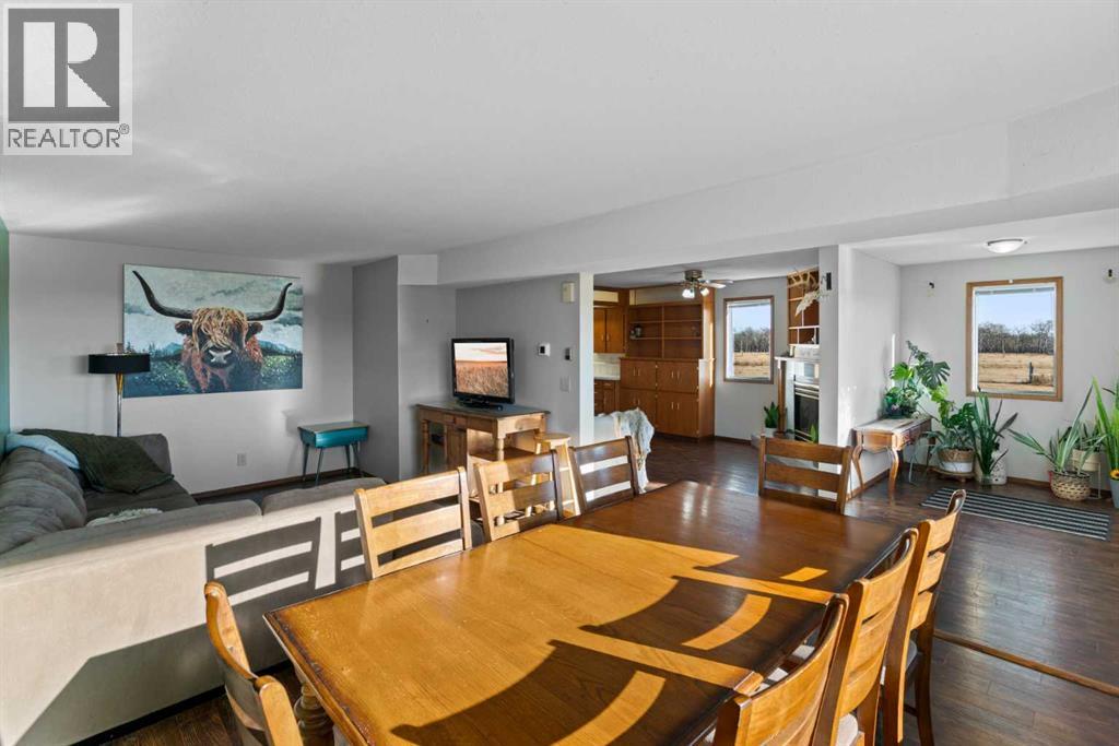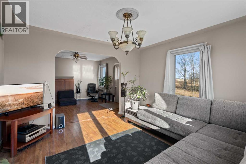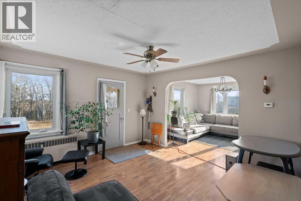 2 Homes on Nearly 10 Acres! Packed with history, and refreshed with modern updates, this acreage is unlike anything else out there. The main home, once a historic residence, was moved to the property and set on a solid modern basement with 9.5’ ceilings. Inside you’ll find lots of updates including freshly renovated bathrooms, new paint, main-floor laundry, a cozy gas fireplace in the dining area, and a boot room big enough to make any rural Albertan proud (with laundry and a bathroom nearby!). The primary suite features a new 4-pc ensuite, plus 5 additional bedrooms upstairs and 2 more in the basement. A large south-facing deck off the living room offers beautiful views towards the river valley. So much forward-thinking went into this home. It’s wired and ready if you ever want A/C, set up for a future garage with living space above, laundry plumbing in the storage room and dyed concrete in the basement that could look like marble with a finishing coat! Step outside where the property itself has stories, space, and serious wow-factor. It's located beside a quiet government access road; main house has new septic mound (2024), and each home has its own well with the main house boasting an impressive 25 GPM flow rate. There’s a massive 50×90 Quonset on asphalt with 100-amp service, a super cute gazebo with wood-burning stove, cross-fencing and pens for animals, walking & quadding trails through the valley and leading down to the river, and wild raspberries, saskatoons & fruit trees tucked along the way. Even a 1900s ranch-hand cabin (now a shed) adds to the story. To top it off, there is a second 4-bedroom 1948 home full of charm on the property with great features; triple-pane windows, boiler heat, an old-school ice room & cold room. Peaceful, practical, and truly one-of-a-kind — this is a property you have to experience to appreciate. Come see it… you’ll fall for it before you hit the end of the driveway. (id:63190)