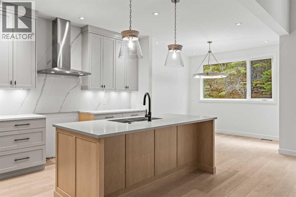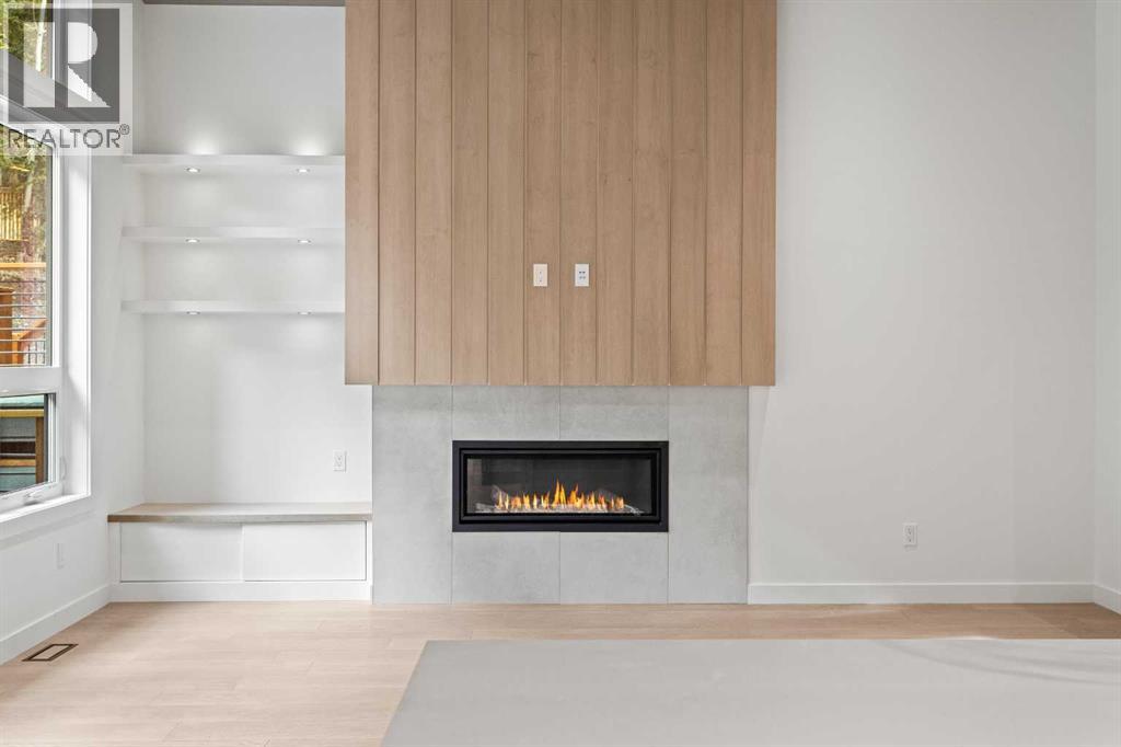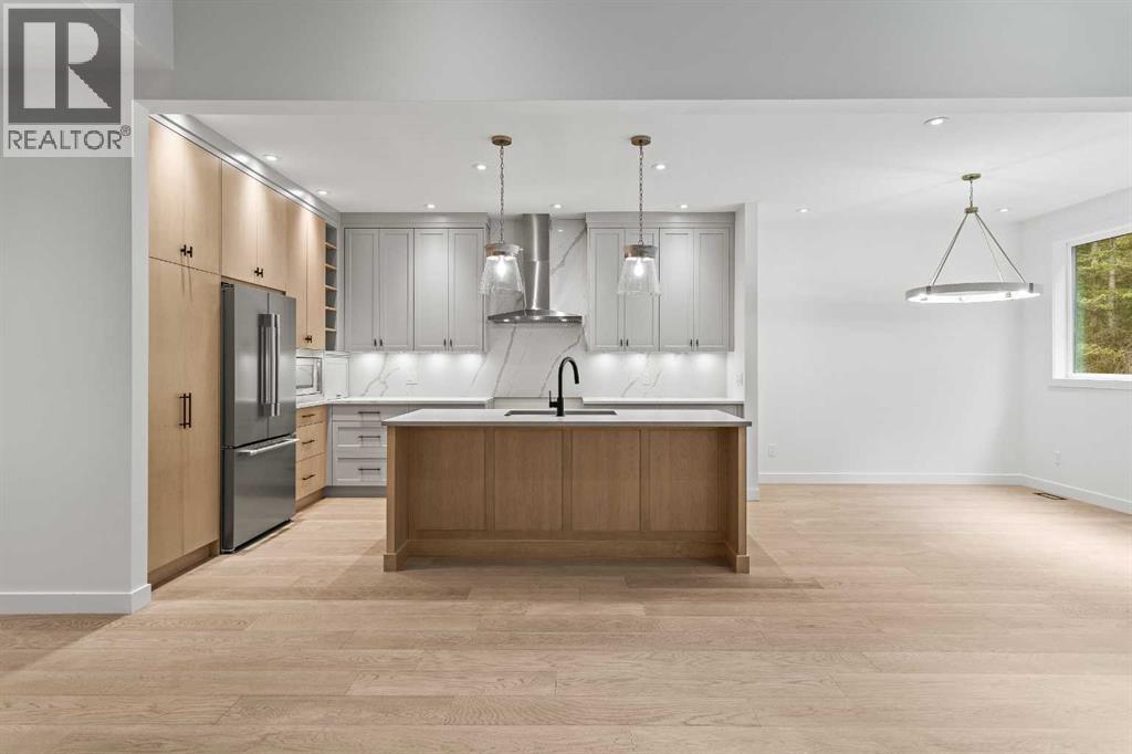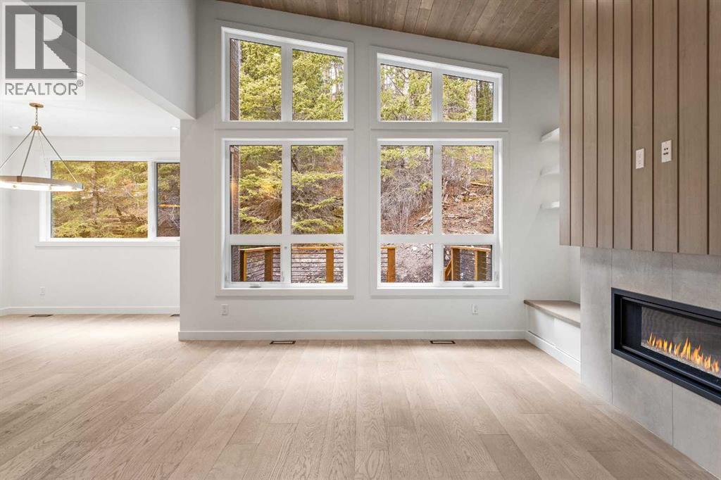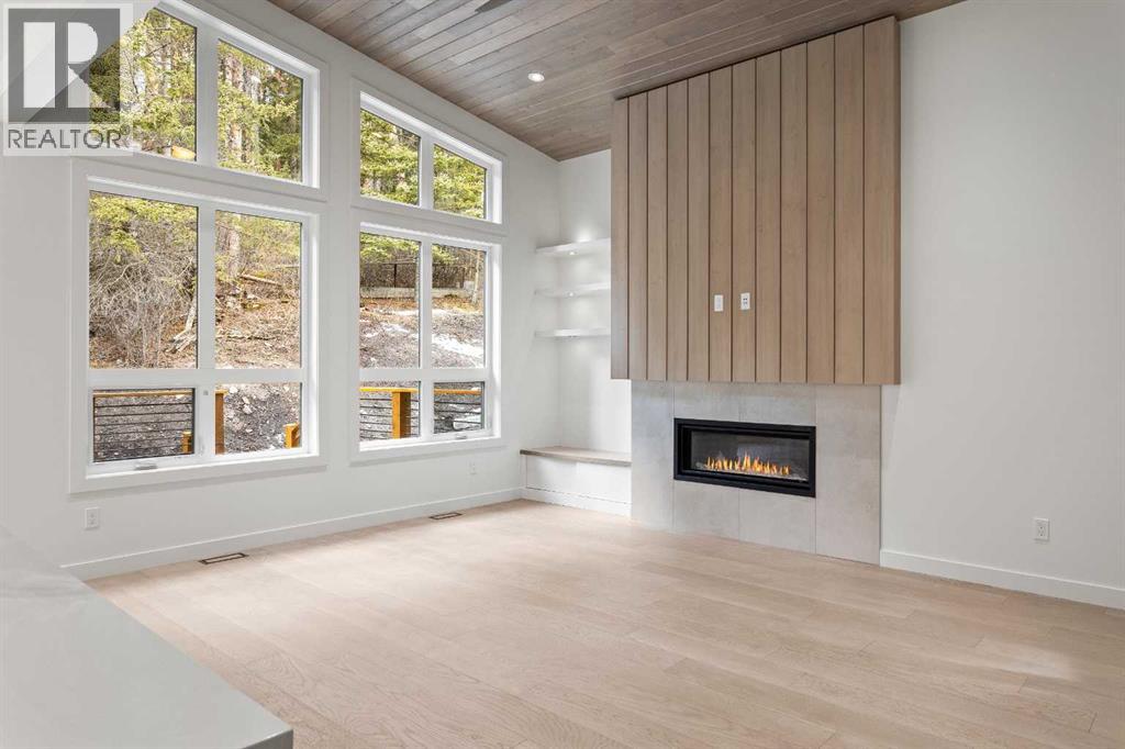 This BRAND NEW, 2700sf 4 bedroom PLUS A DEN duplex effortlessly combines elegance, practicality, and the beauty of nature! The gourmet kitchen, with custom cabinetry, Fulgor Milano appliances, and sprawling quartz countertops is a dream for any chef. While the lower-level rec room & built-in storage solutions ensure entertaining & everyday living are stylish & convenient. Gorgeous hardwood floors & a vaulted wood ceiling add warmth & charm, framing the serene privacy in the treed backyard with no neighbors. PLUS enjoy 3 additional outdoor living spaces included a covered rear porch, 3rd floor view deck, and private balcony off the primary bedroom. Situated on a quiet street just minutes from downtown Canmore, this home offers unparalleled access to outdoor adventures like the Canmore Nordic Center and Bow River trails, all while providing a serene space to unwind and enjoy the surrounding tranquility. Don’t miss the chance to make this extraordinary lifestyle your own! (id:63190)