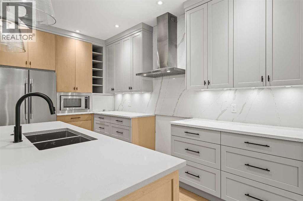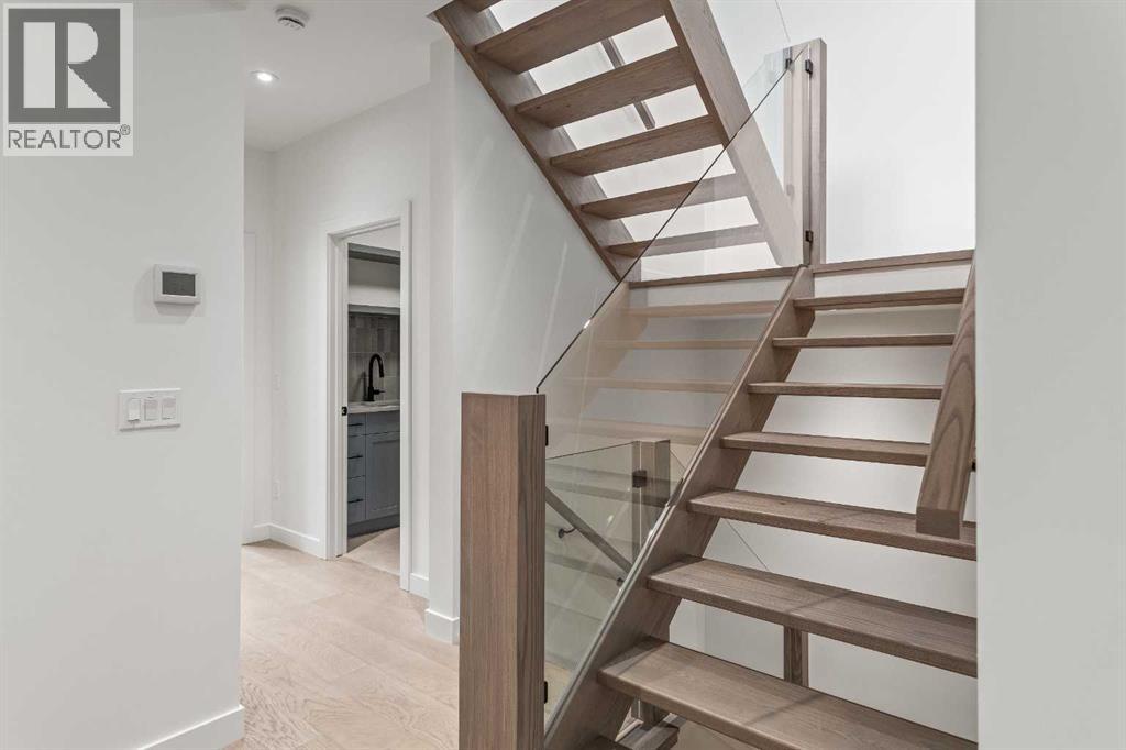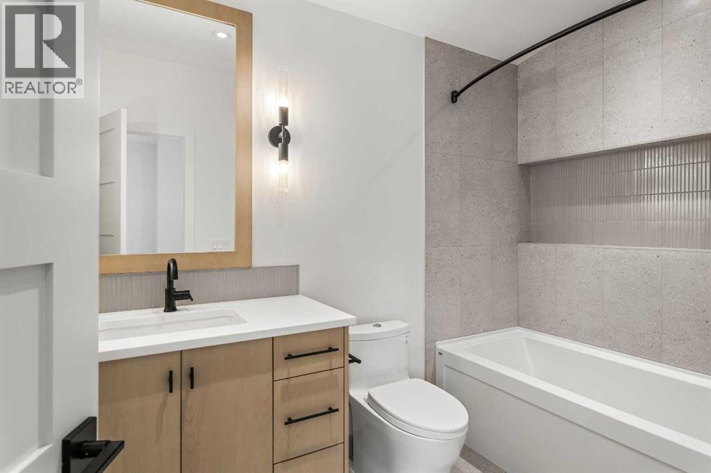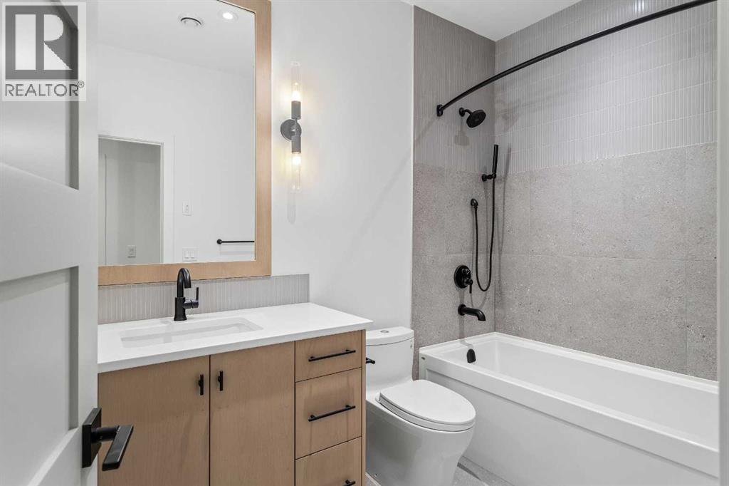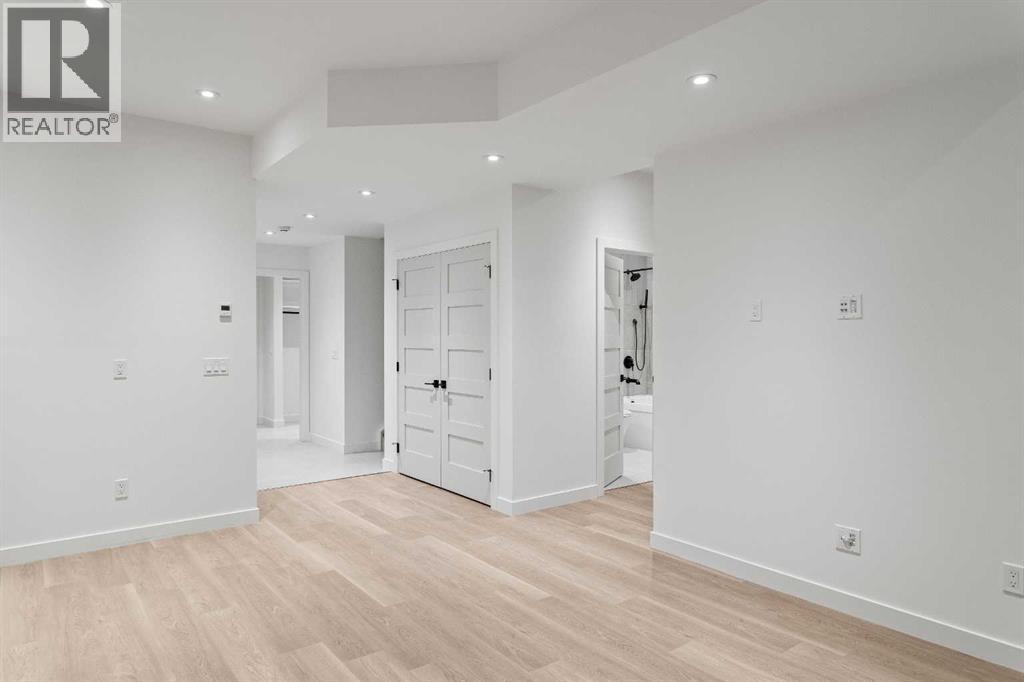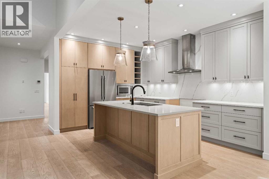 This BRAND NEW, 2700sf 4 bedroom PLUS A DEN duplex effortlessly combines elegance, practicality, and the beauty of nature! The gourmet kitchen, with custom cabinetry, Fulgor Milano appliances, and sprawling quartz countertops is a dream for any chef. While the lower-level rec room & built-in storage solutions ensure entertaining & everyday living are stylish & convenient. Gorgeous hardwood floors & a vaulted wood ceiling add warmth & charm, framing the serene privacy in the treed backyard with no neighbors. PLUS enjoy 3 additional outdoor living spaces included a covered rear porch, 3rd floor view deck, and private balcony off the primary bedroom. Situated on a quiet street just minutes from downtown Canmore, this home offers unparalleled access to outdoor adventures like the Canmore Nordic Center and Bow River trails, all while providing a serene space to unwind and enjoy the surrounding tranquility. Don’t miss the chance to make this extraordinary lifestyle your own! (id:63190)
