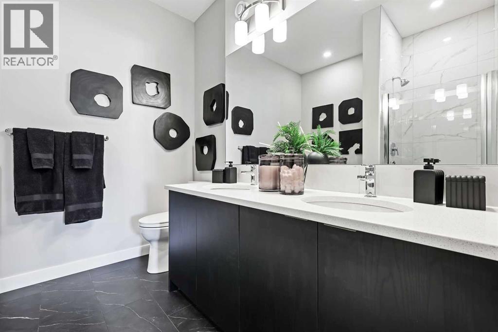 Highest Value. Lowest Price. Nothing Else Compares! Elevate your Lifestyle at Park Place of Mahogany Lake by Jayman BUILT. The newest addition to Jayman BUILT's Resort Living Collection is the luxurious, maintenance-free townhomes of Park Place, anchored on Mahogany's Central Green. A 13-acre green space sporting pickleball courts, tennis courts, community gardens and an Amphitheatre. Discover the MALBEC! An elevated COURTYARD FACING FORMER SHOWHOME suite townhome with park views featuring a Showhome-specific ELEVATED COLOR PALETTE. You will love this palette. The ELEVATED package includes luxurious style tile for the kitchen backsplash. Beautiful cabinetry hardware throughout. Beautiful luxury laminate flooring on the main floor and vinyl tile in the bathrooms and laundry. Sleek chrome finish on kitchen faucet. Stunning pendant light fixtures over the kitchen eating bar, and beautiful vanity light fixtures. The home welcomes you into over 1700 sq ft of fine AIR CONDITIONED living, showcasing two spacious Primary Bedrooms, both with their very own private and spa-like 5-piece en-suites and a half bath for friends and guests, a flex room, a den and a DOUBLE ATTACHED SIDE-BY-SIDE HEATED GARAGE. The thoughtfully designed open floor plan offers a beautiful kitchen with a sleek Whirlpool appliance package, undermount sinks throughout, a contemporary lighting package, Moen Align kitchen fixtures, Vichey bathroom fixtures, a kitchen backsplash tile to ceiling, and an upgraded tile package throughout. Enjoy the expansive main living area, with room for a designated dining area, an additional flex area, and a comfortable living room, complemented by a well-selected window treatment, making this home bright and airy. North and South exposures with a deck and patio for your leisure. The lower level offers another flex area for additional living space, ideal for a media room or den/office. Upgraded with Showhome wallpaper and window coverings. Park Place homeowners will enjo y fully landscaped and fenced yards, lake access, 22km of community pathways, and are conveniently located near the shops and services of Mahogany and Westman Village. Jayman's standard inclusions for this stunning home are 6 solar panels, BuiltGreen Canada Standard, with an EnerGuide rating, UVC ultraviolet light air purification system, high efficiency furnace with Merv 13 filters, active heat recovery ventilator, tankless hot water heater, triple pane windows, smart home technology solutions and an electric vehicle charging outlet. WELCOME TO PARK PLACE! (id:63190)