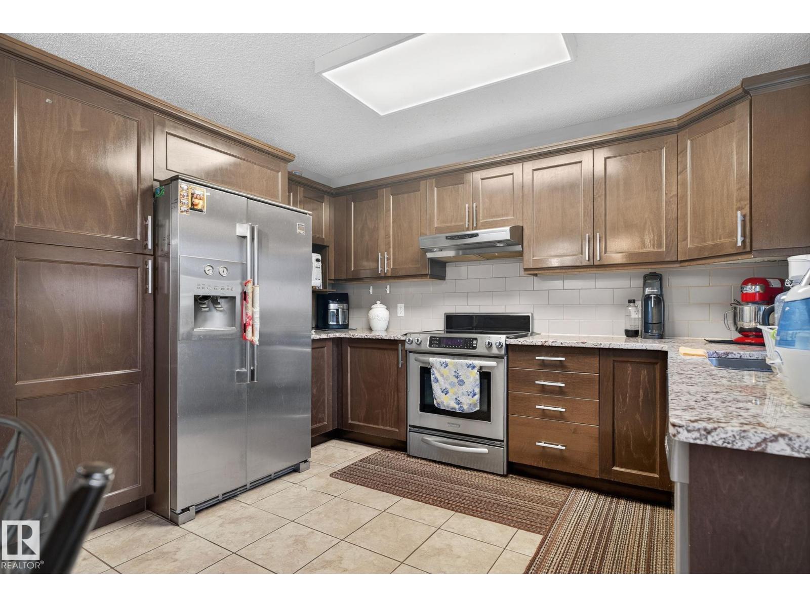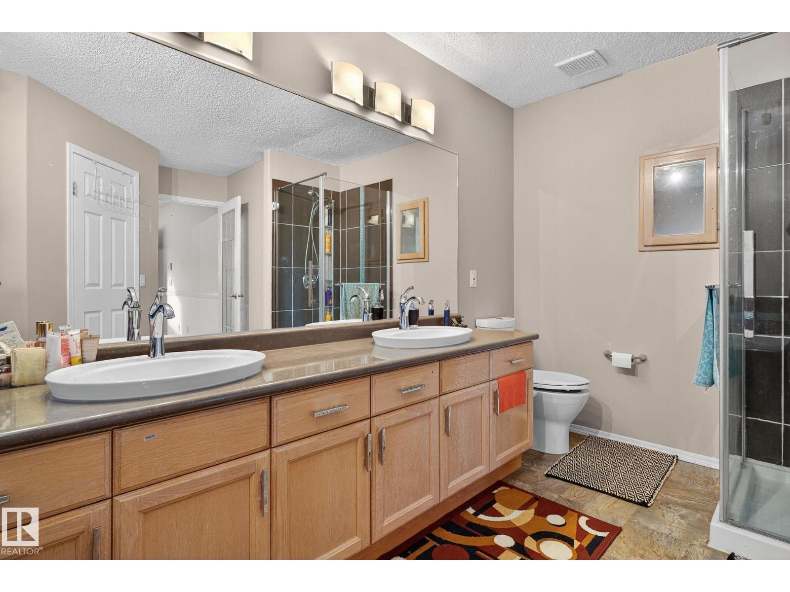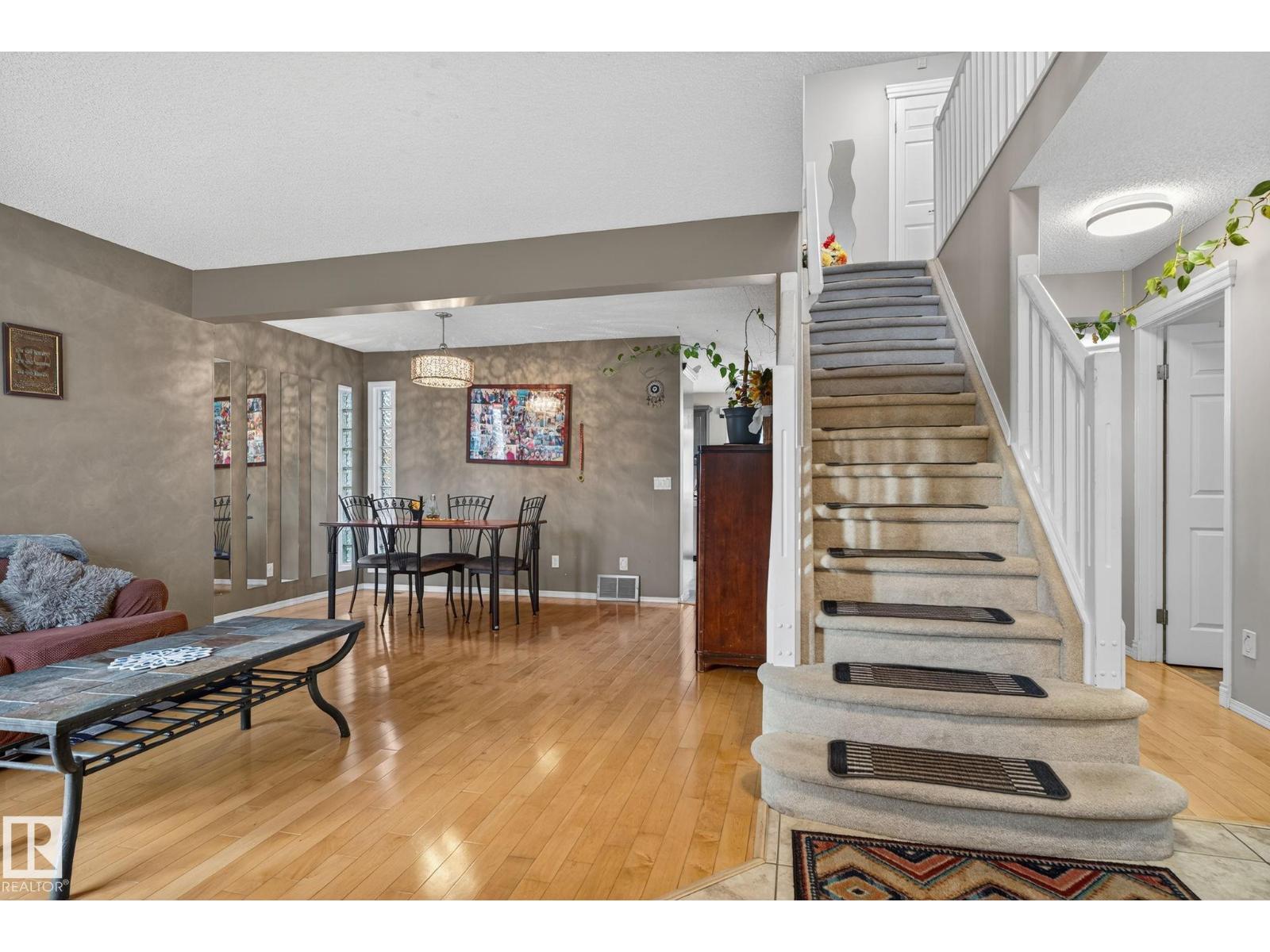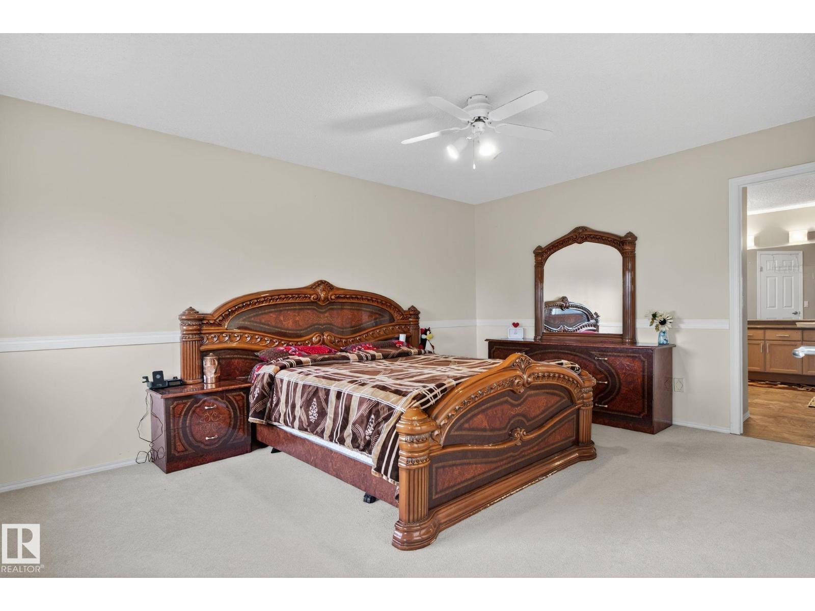 Quiet neighborhood of Larkspur around 2800 sq ft 2 storey, 4 bedrooms+3.5 bath home located in the quiet street .Spacious living room welcomes you leading to the large spacious kitchen with soft close doors cabinets and under cabinet lights, granite countertops, tile backsplash and stainless steel appliances. Family room with gas fireplace adjacent to laundry room that is big enough to convert into an MAIN FLOOR OFFICE.Upstairs primary bedroom has a huge 5-piece ensuite completed with dual soaker tub and a separate glass shower. Professionally developed basement with full bath, rec. room and a bedroom with a triple closet. Basement rec. room has 2nd fireplace with floor to ceiling fieldstone. Double garage is insulated and drywalled with built in storage. Backyard you will find a massive deck along with a storage shed. Roof,bathroom tiles,water heater(2023),AC,Blinds are updated in last 5-10 years.Easy access to 17 & 34 St,Whitemud dr,schools and shopping ctr (id:63190)