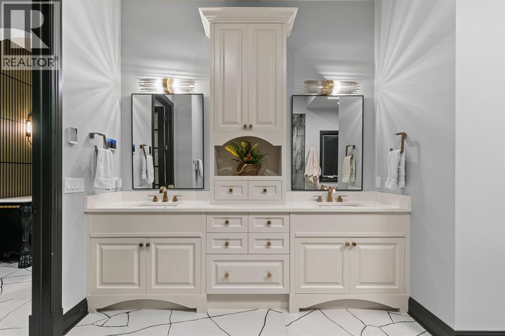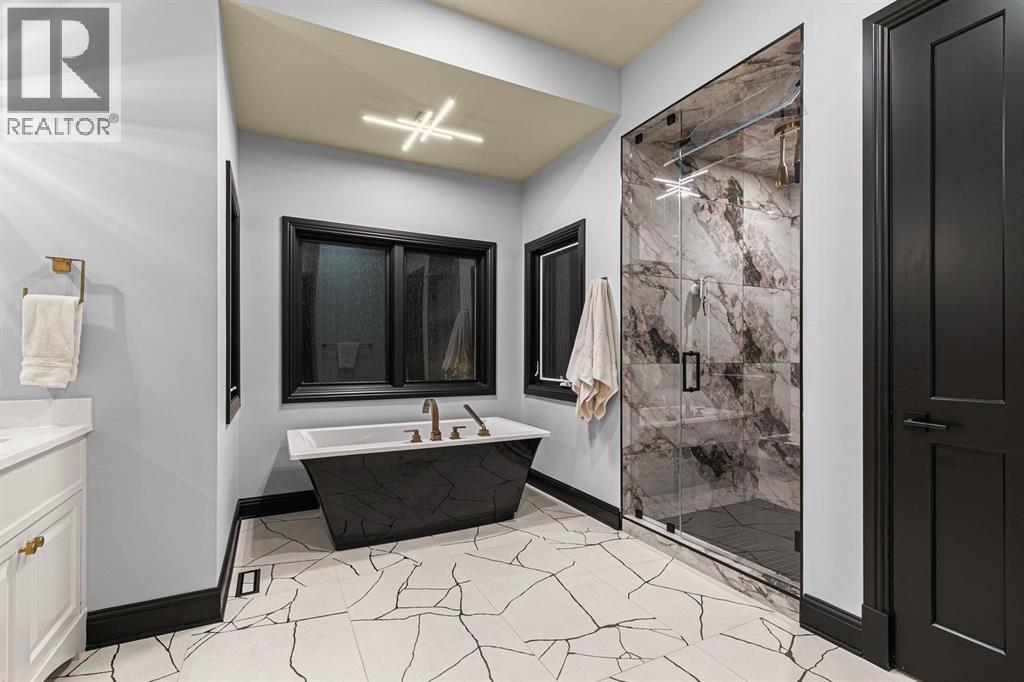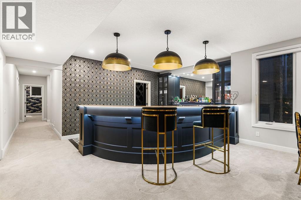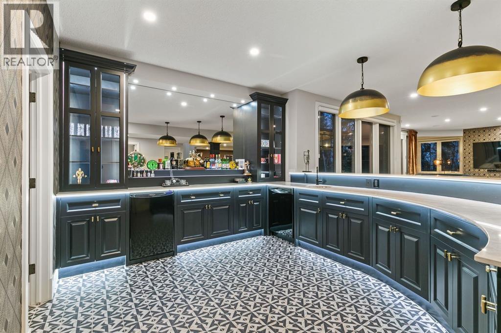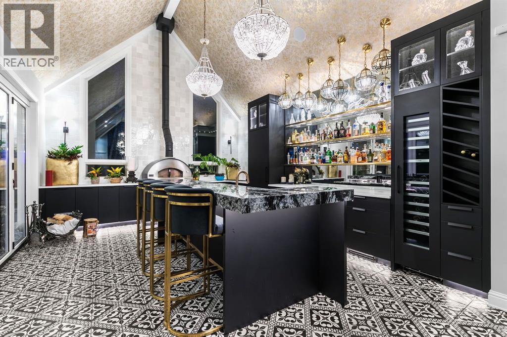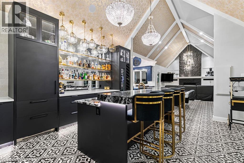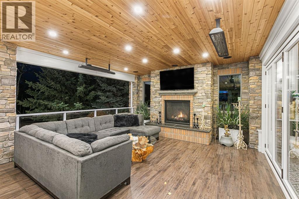 Welcome to this stunning executive bungalow located on one of the most coveted streets in Pinehurst, just south of Calgary and backing the Heritage Pointe Golf Course wooded area. Completely renovated from top to bottom, this exceptional residence offers over 6,200 sq. ft. of luxurious developed living space designed for both comfort and entertaining. Set on a private .86-acre treed lot, the home features an incredible outdoor oasis complete with a three-season room, accessible by acordian doors, a swim spa, and multiple spaces to relax or host gatherings surrounded by nature. Inside, the open-concept design showcases high-end finishes, soaring vaulted ceilings, and expansive windows that fill the home with natural light and frame stunning views of the professionally landscaped grounds. The chef-inspired kitchen is equipped with premium appliances, perfect for culinary enthusiasts, while the full bar on the main floor makes entertaining effortless, including a wood burning pizza oven. The walkout basement extends the living space with additional areas for recreation, wet bar, added storage, fitness, or relaxation. Also offering an oversized heated triple garage, underground sprinklers, fenced dog run, and every convenience you could ask for. Every detail has been thoughtfully crafted, creating an elegant, modern retreat that perfectly balances sophistication, warmth, and functionality—an absolute entertainer’s dream in one of the most prestigious communities south of Calgary. (id:63190)