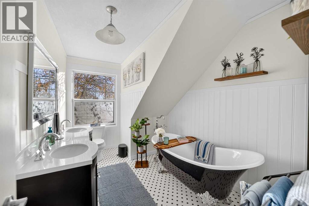Exchange city grind for piece of mind in this beautifully renovated character home in the Historic Town of Didsbury perfectly blends timeless charm with modern luxury. Thoughtfully updated throughout, it retains the elegance of its original details while offering all the comfort and style today’s buyer expects. Step inside through the welcoming front entry with custom built-in coat hooks and bench. You’ll immediately be drawn to the expansive living and dining rooms, highlighted by stained glass windows, rich crown mouldings, and a warm, inviting atmosphere. The custom kitchen is a chef’s delight, featuring a massive island ideal for cooking, entertaining, or family gatherings. A large rear mudroom/sunroom and a designer powder room with hidden laundry complete the main level. Upstairs, the home divides into two distinct wings. The owner’s suite is a private retreat with a cozy sitting area, an impressive walk-in closet/dressing room, and a spa-inspired ensuite with double vanity, oversized shower, and heated floors. The second wing offers three spacious bedrooms and a stunning third bathroom, complete with double vanity, heated floors, and a charming clawfoot tub with handheld shower. Outside, enjoy a massive, treed yard offering privacy and space, along with a sunny south-facing deck—perfect for outdoor living. An oversized, heated double-attached garage adds convenience and functionality. This one-of-a-kind property combines historic character, thoughtful renovations, and modern amenities in a way that truly takes your breath away. Don’t miss your chance to own a piece of Didsbury history—book your showing today! (id:63190)