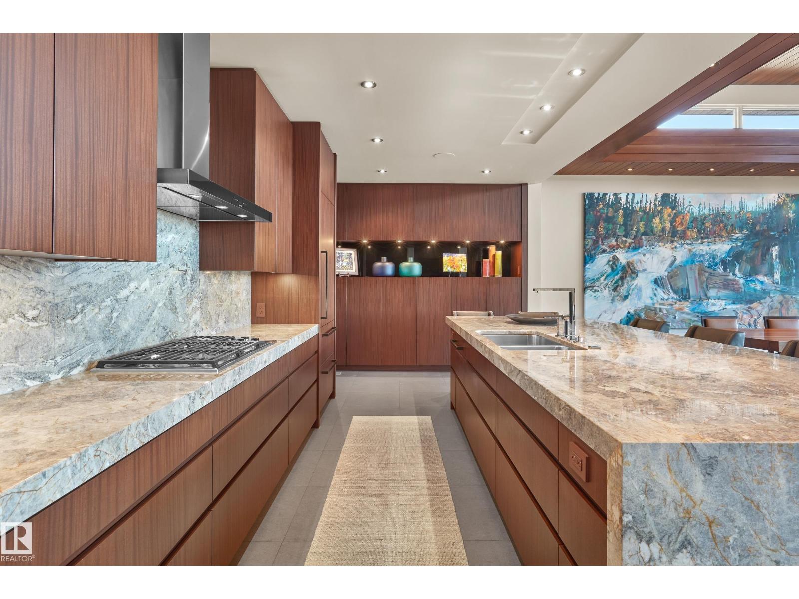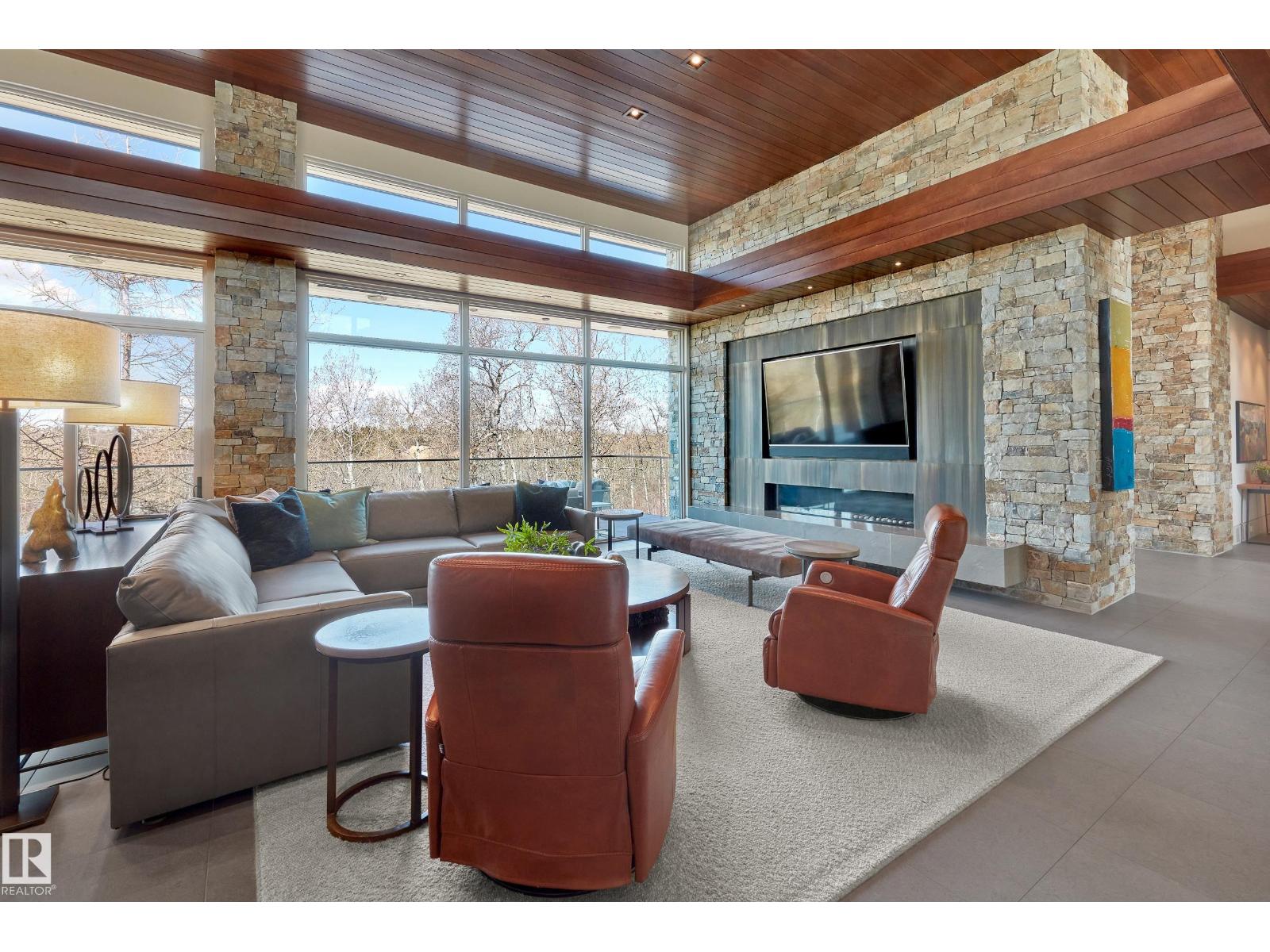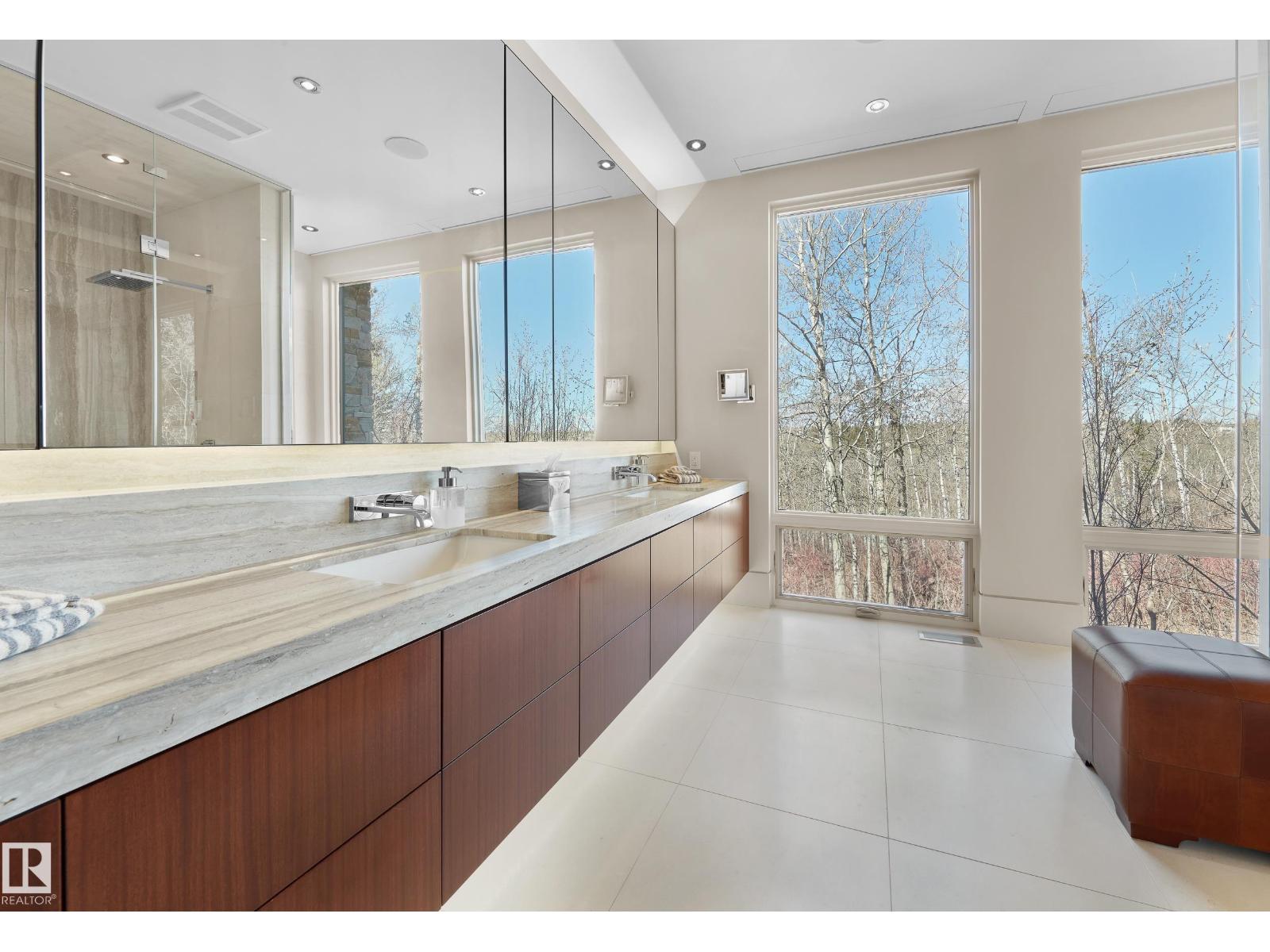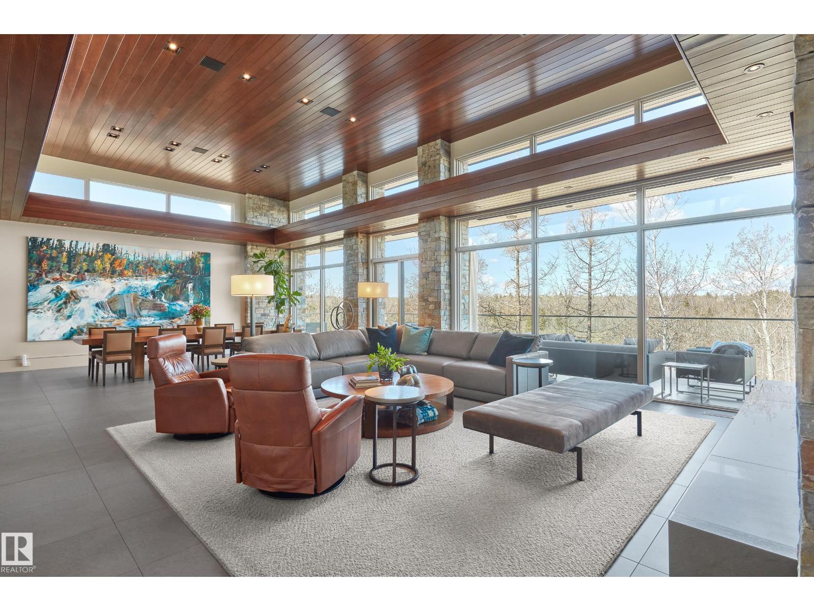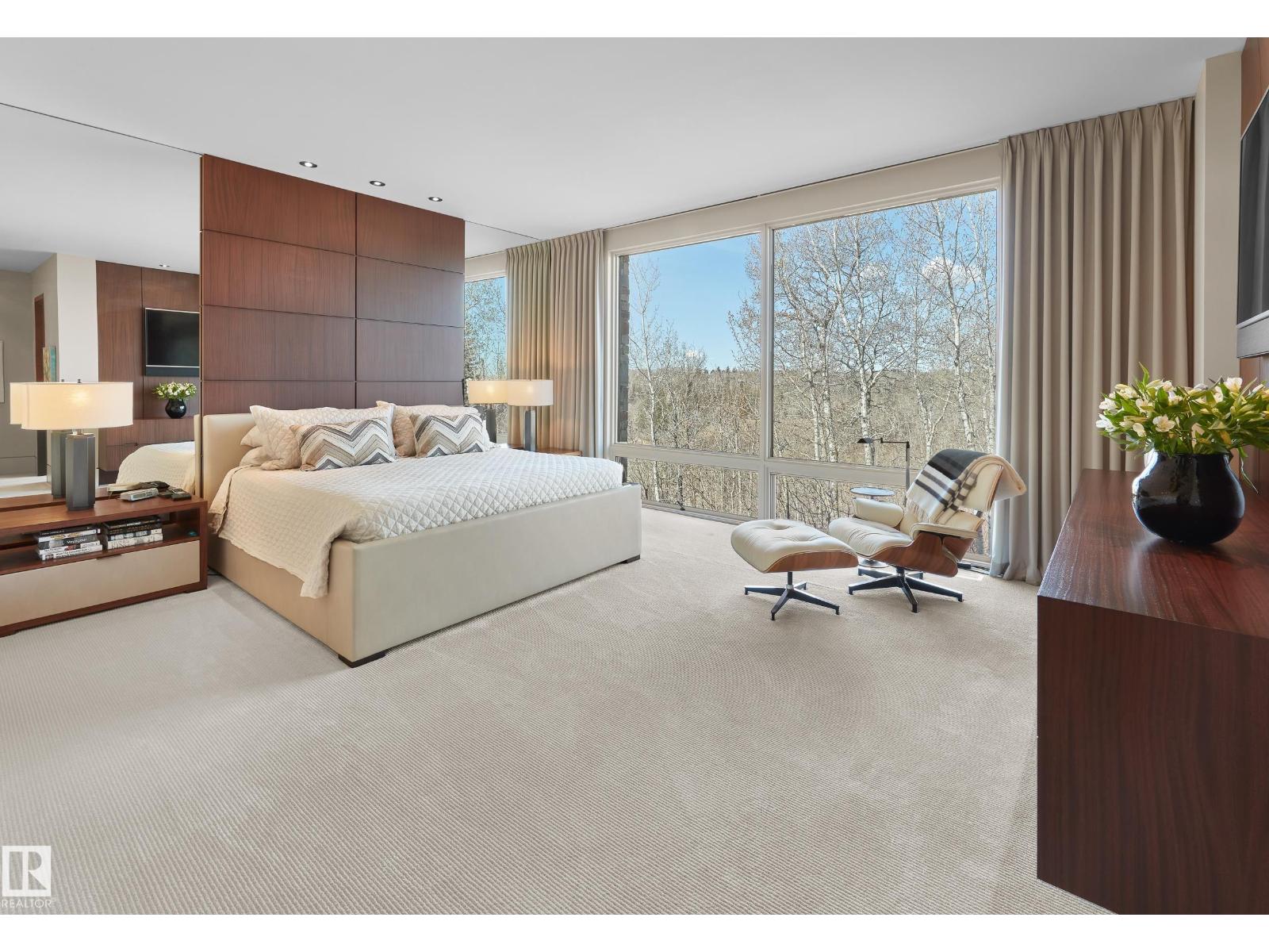 Panoramic RIVER VALLEY views – backing onto Whitemud Creek Ravine – full unobstructed view on this over 12,000sqft lot! The stunning home encompasses 5897 SQFT of developed living space with walkout basement – luxury beds, Gym, Art Room, Office, 2.5 baths, 15ft ceilings – North & South Garages - Quad attached garage (extra height for car lifts) – the entire back of the home is floor to ceiling windows.The attention to detail provides the perfect fusion between structural strength & architectural form – Urbis Architecture, Mitchell Freedland Design/Vancouver! This home seamlessly blends indoor/outdoor spaces capturing all elements of luxury – Flawless design covers every inch of this stunning home well-appointed & sophistication throughout. Every finish was hand selected for a luxurious feel - custom millwork & cabinetry, superior lighting & plumbing fixtures - the craftsmanship is like no other fit & finish you have never seen before – West Coast Luxury in YEG - boasting every state-of-the-art finish. (id:63190)