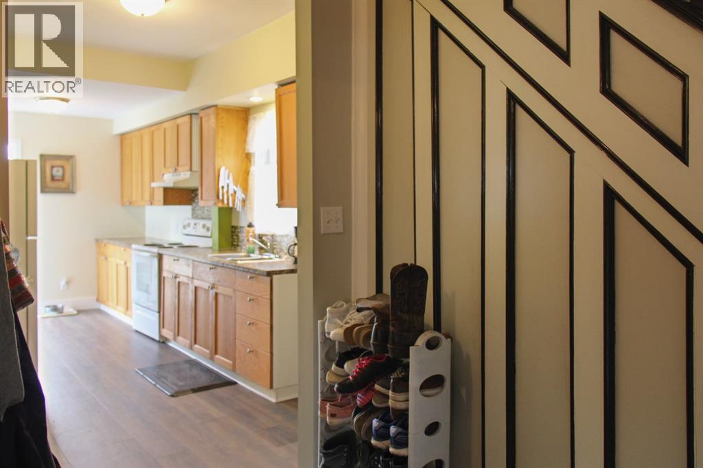Welcome to this charming 1.5-storey home that’s full of character and move-in ready! Featuring 2 bedrooms and 2 bathrooms, this property offers comfort, practicality, and small-town living at its best. The main bathroom is conveniently located near the back entrance, complete with a shower — perfect for cleaning up after a day in the garden. The spacious kitchen is ideal for cooking and entertaining, flowing easily into the large living and dining area, where beautiful stained glass windows add a touch of timeless charm. Downstairs, you’ll find laundry in the basement, while outside, a detached garage with an automated door and concrete pad provides excellent winter parking. The fenced backyard offers plenty of space, with the option to reconfigure fencing for RV parking. The yard is a gardener’s delight, featuring fruit trees and shrubs — including blackberry, cherry, and raspberry — perfect for anyone who enjoys homegrown goodness. Located in the welcoming community of Sedgewick, this home is within walking distance to Central High Sedgewick Public School and close to everything the town has to offer — shopping, a golf course, a lake campground, and more. Plus, with hospital services just 10 minutes away in Killam, this location truly has it all. (id:63190)