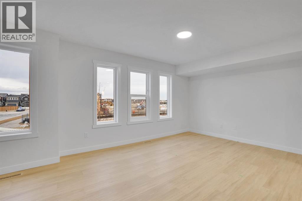 Welcome to your new home in the vibrant community of Belmont! This beautifully built townhouse combines modern design with thoughtful upgrades for comfortable living. The main floor features a double attached garage and a versatile office or flex room — perfect for a home workspace or hobby area.The second floor offers a bright, open-concept layout with a stunning kitchen featuring elegant finishes and ample counter space. The adjoining dining and living areas are perfect for gatherings, while a convenient 2-piece bath completes the level.On the top floor, you’ll find two spacious bedrooms, a 4-piece bathroom, and a laundry area for added convenience. The primary suite includes a walk-in closet and a luxurious 5-piece ensuite, providing the perfect spot to unwind.Ideally located near MacLeod Trail and Stoney Trail, this home offers easy access to shopping, dining, and nearby parks. Stylish, functional, and ready for you to move in — don’t miss the opportunity to make it yours! (id:63190)