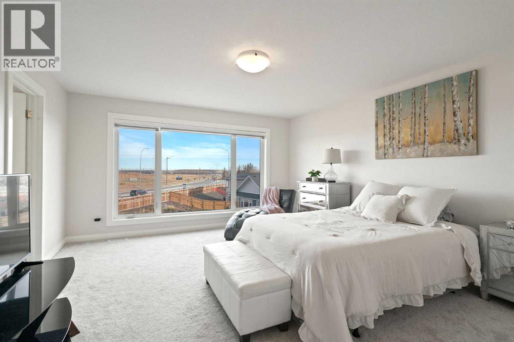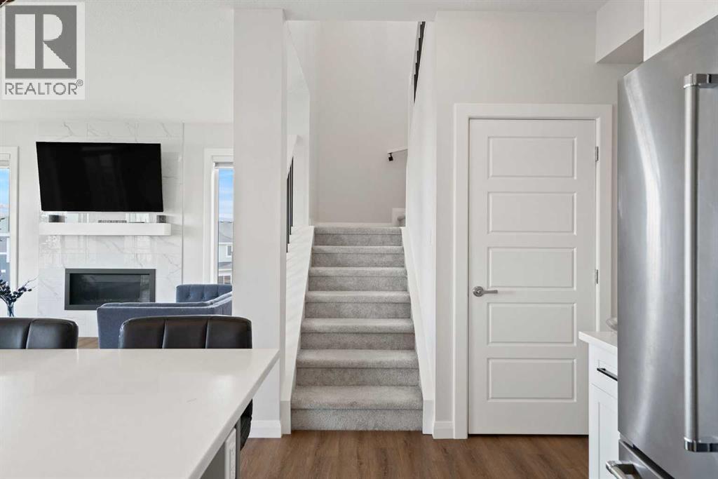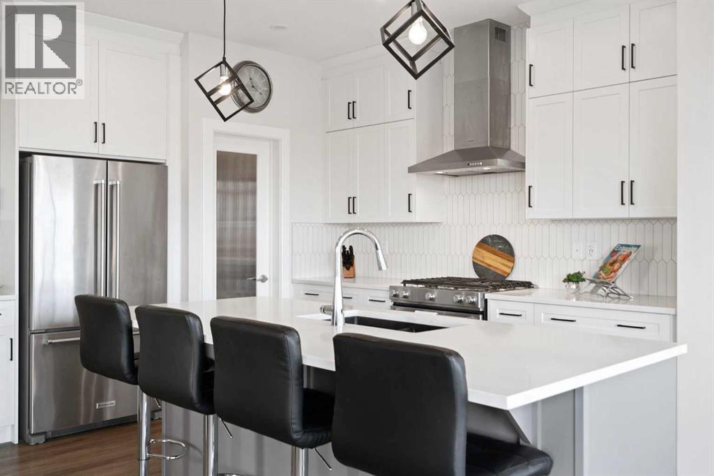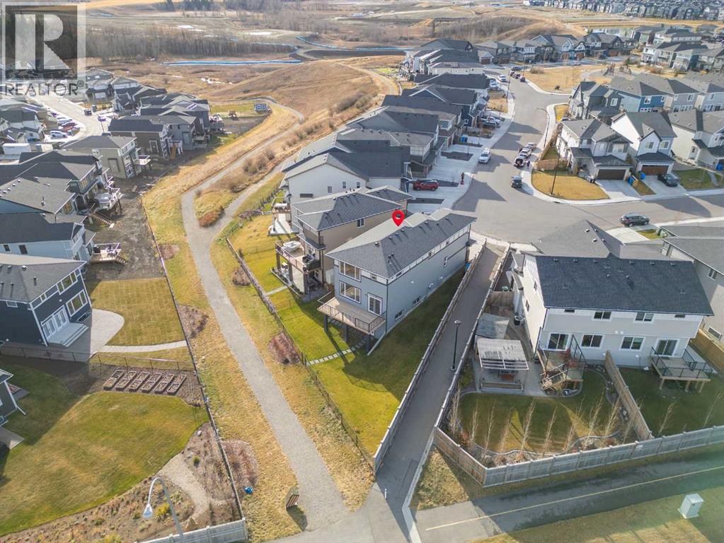 Say “hello!” to this charming Creekstone walkout home. Tucked away on a quiet cul-de-sac, this upgraded single-family home sits on an oversized, pie-shaped lot backing directly onto a greenbelt walking path, with completed landscaping, open views of nature, and even downtown skyline views and Stampede fireworks in the distance.Inside, timeless design meets modern comfort. Wide-plank luxury vinyl flooring grounds the main level, while 9’ ceilings, wrought-iron railings, and large windows create a bright, welcoming flow. The heart of the home is the beautifully curated, highly upgraded kitchen with KitchenAid appliances, including a gas range, chimney hood fan, quartz countertops, tile backsplash, walk-through pantry, and an oversized island perfect for gatherings. The spacious great room centers around a floor-to-ceiling tile fireplace, while built-in speakers throughout the home (controlled via the Sonos app) set the mood for every occasion. A private main-floor office enclosed by double French doors offers a quiet workspace. Step out to the wraparound deck to enjoy peaceful greenbelt views and watch the sun set over your fully landscaped yard, which slopes gently away from the home.Upstairs, a central bonus room anchors the second floor, offering separation and privacy between bedrooms. The primary suite is a serene retreat with automatic blinds, a spa-inspired ensuite featuring dual sinks with tons of counterspace and storage, a tiled walk-in shower, a deep soaker tub, and a generous walk-in closet. Two additional bedrooms (each a great size) are located on the opposite side of the bonus room, along with a stylish 4-piece bath and a dedicated laundry room that’s on every mom’s wishlist!Downstairs, the bright unfinished walkout basement features oversized windows and is roughed in for a future bathroom, ready to be developed into your dream rec area, additional bedrooms, or a legal suite (subject to City approvals).The exterior is wrapped in James Hardie bo ard for lasting durability, and the insulated, drywalled double attached garage adds everyday convenience.Located in Pine Creek, one of Calgary’s most scenic and fast-growing new communities, this home offers quick access to Stoney Trail, Macleod Trail, 210 Ave, Township Plaza, Legacy’s shopping districts, and Spruce Meadows, with future schools planned nearby. With its natural pathways, playground down the street, family-friendly energy, and city conveniences close at hand, this move-in-ready walkout delivers the space, finishes, and lifestyle you’ve been waiting for, without the wait to build.Your next chapter begins here. Book your private viewing today and don't forget to WATCH THE VIDEO! (id:63190)