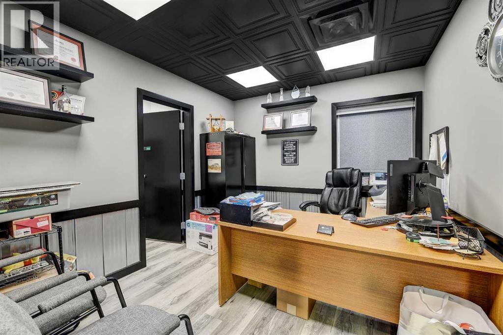 Turn-key investment opportunity, offers a prime commercial asset complete with a long-term tenant and an appealing 8% Cap Rate. This mint condition property features a 7,200 sq. ft. industrial shop situated on a 4-acre corner lot at the main entrance to Kestrel Business Park. Ideally positioned just one mile south of the Town of Sexsmith and eight miles north of the City of Grande Prairie, it benefits from excellent visibility with frontage along Township Road 732 to the south & easy access to HWY 2. Constructed only five years ago, the building is extremely well-maintained and combines 5,567 sq. ft. of shop space with 1,633 sq. ft. of professional office space with second-storey storage wired for future expansion of offices. The office area includes two private offices—one with its own two-piece washroom—along with an additional public washroom. The space features a concrete slab finished with vinyl composite tile, 10-foot ceilings throughout the offices, and a welcoming reception area highlighted by tall ceilings and a large L-shaped counter. A T-bar ceiling with fluorescent lighting, forced air gas furnace, air conditioning, and a staff room equipped with a full kitchenette, large tool crib room and direct access to the shop complete the thoughtful office layout. The expansive shop area offers four 80-foot drive-thru bays and an additional 37-foot shipping bay with mezzanine storage, providing exceptional functionality for industrial operations. It is equipped with eight 12' x 16' overhead doors and one 10' x 16' all powered and insulated. The shop features 18-foot ceilings, a concrete slab with sumps, T-5 fluorescent lighting, suspended radiant tube heating with circulating fans, upgraded air make up, a mezzanine, counters, and a two-piece shop washroom. The building also includes two three-phase converters with transformers, converting Delta to Wye service. Laundry connections are located in the mechanical room for onsite convenience. The exterior of the buildi ng is clad in metal with attractive stone veneer accents and is surrounded by a chain-link fence & gravelled yard. Additional site improvements include two 10' x 90' concrete aprons. The property is serviced by a water well and a 2,500-gallon septic tank equipped with an oil skimmer. With a strong tenant already in place and solid returns supported by an 8% Cap Rate, this property is an exceptional opportunity for any investor seeking a reliable, income-producing commercial asset. Lease details are available upon request. A PLEASURE TO VIEW & MUST BE SEEN TO BE APPRECIATED! Connect with your commercial Realtor® to schedule a viewing. (id:63190)