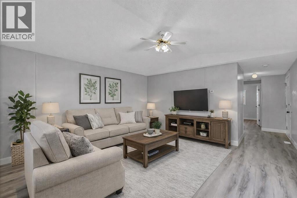 This lovely mobile home is ready for you! Fresh and clean with 3 bedrooms and 2 bathrooms, all you have to do is bring your furniture! There is fresh paint and vinyl plank flooring throughout, new windows and brand new shingles! The large front deck will make the perfect place to enjoy your morning coffee and the double asphalt driveway provides good parking. This home sits on a large corner lot in the Sunnylea Mobile Home Park, Wildrose Garden Estates with lot rent price applicable. (id:63190)