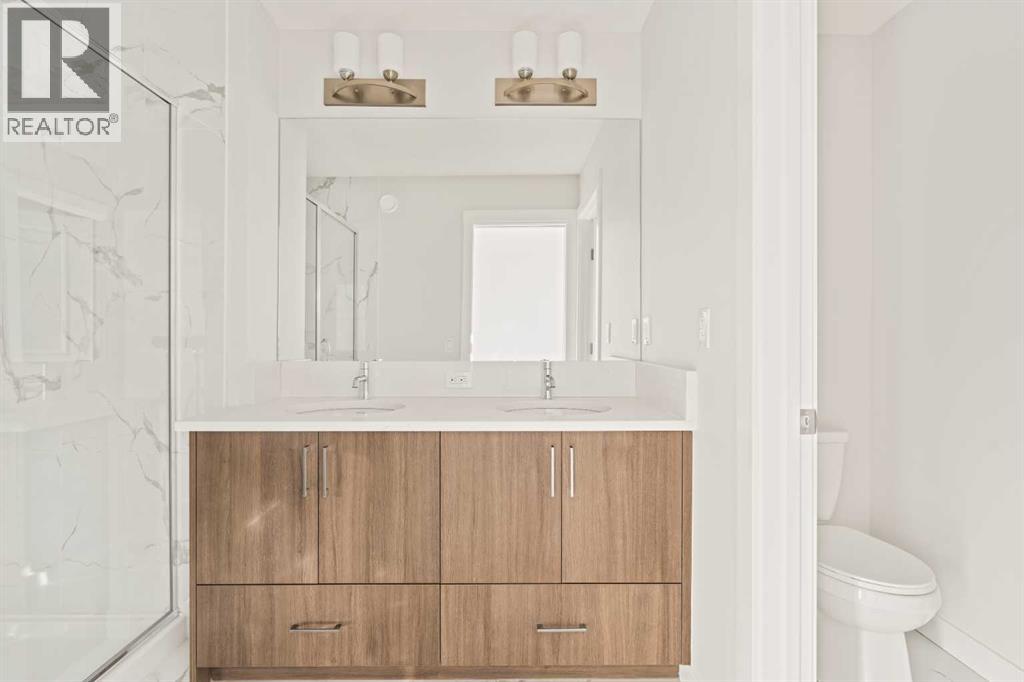 This beautiful brand-new Oak model by Brookfield Residential is intelligently designed to offer exceptional functionality, modern style, and the added benefit of a fully legal 1-bedroom basement suite! Featuring 2 living areas, 3 bedrooms, 2.5 bathrooms above grade, and a complete legal secondary suite that is accessed via its own private side entrance, this home provides over 2,300 sq. ft. of thoughtfully crafted living space across three levels - perfect for families, multi-generational living, or those looking to offset monthly costs with rental income. Located in the newest phase of Seton, Seton Ridge, this stunning home blends open-concept design with purposeful layout choices tailored for today’s lifestyle. The main level features expansive south-facing front windows that fill the home with natural light throughout the day. The 9' ceilings enhance the sense of openness, while the central kitchen acts as the true heart of the home. A large island, spacious pantry, and a full suite of stainless-steel appliances - including a chimney hood fan and a lower built-in microwave - create a functional and stylish space ideal for cooking, hosting, and everyday living. The dining area overlooks the front yard through large south-facing windows that flood the space with natural light all year long. At the back of the home, an inviting great room centres around an electric fireplace with a wall over windows overlook the private backyard. A 2-piece powder room completes the main level. A modern iron spindle railing guides you upstairs to a perfectly positioned central bonus room, providing privacy between the primary retreat and the secondary bedrooms. The spacious primary suite includes a walk-in closet and a beautifully finished 4-piece ensuite with dual sinks, a tiled walk-in shower and private water closet. Two additional bedrooms, a full bathroom, and an upper-level laundry room finish off this family-friendly second floor. The fully legal 1-bedroom basement suite is m ove-in ready after possession and features its own dedicated mechanical system. Complete with a full kitchen, living/dining area, a generous bedroom with walk-in closet, a full bathroom, and in-suite laundry, this suite is ideal for extended family or as an excellent income generator to help offset your mortgage. Outside, the sunny backyard offers the perfect place to relax or entertain in the warmer months. A rear gas line adds to everyday convenience and the double parking pad provides ample space and future potential for a detached garage if desired. With both the builder’s warranty and the Alberta New Home Warranty included, you’ll enjoy complete peace of mind with your purchase. Just steps from the extensive amenities of Seton - including restaurants, shopping, the YMCA, and the South Calgary Health Campus - this home combines beautiful design with unmatched convenience. (id:63190)
