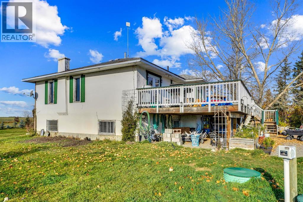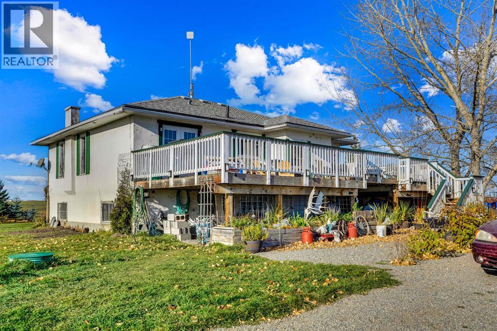 Welcome to your own slice of countryside serenity—just minutes from the city. This 44-acre hobby farm offers endless possibilities with 44 acres of irrigated land, perfect for crops, grazing, or gardens. A charming bungalow with a walk-up basement anchors the property, blending rustic character with modern updates for comfortable everyday living.With 40 acres of lush pasture backing onto an irrigation canal and year-round underground irrigation around the home, the land is set up beautifully for farming, ranching, or simply enjoying green, open space. The remaining acres feature the home and well-planned outbuildings, including a barn with 4 box stalls and 6 additional open stalls, plus a 28x24 shop ideal for equipment, hobbies, or storage.Inside the home, you’ll find a welcoming blend of comfort and potential. Recent updates— including modern appliances, refreshed cabinetry, and a bright, functional layout—make it perfectly livable from day one, while the original hardwood floors and spacious rooms offer a chance to bring your own style and ideas to life. Whether you envision restoring its classic charm or adding contemporary touches, this home provides a solid, updated foundation ready for your personal visionWhether you're dreaming of raising horses, starting a market garden, or creating a peaceful rural retreat, this property offers the perfect canvas. All of this, and you're only 25 minutes to Calgary and 12 minutes to Strathmore, with paved access right to your driveway.Come experience the space, the quiet, and the possibilities this unique acreage has to offer. (id:63190)