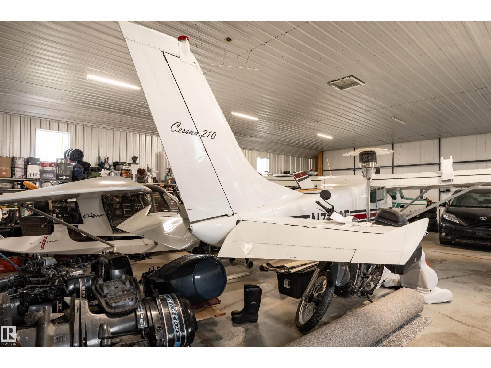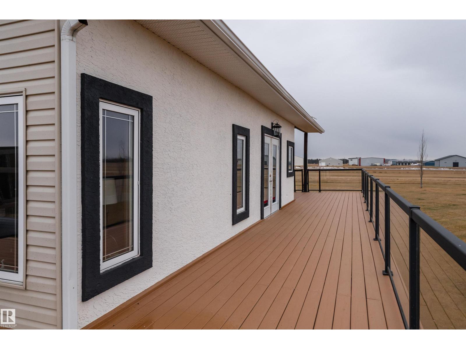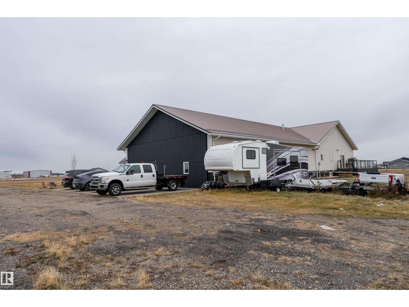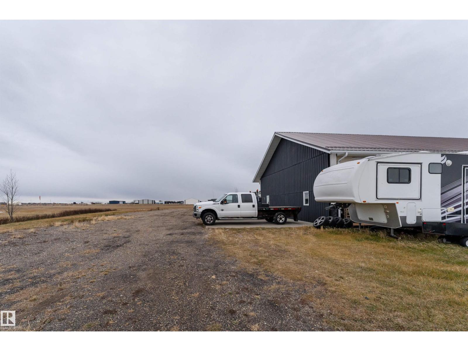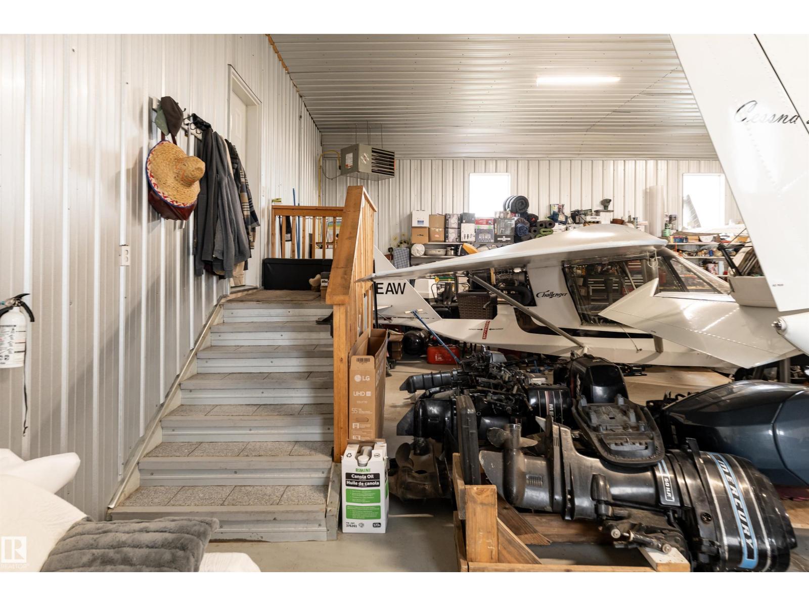 Get Inspired in Westlock. A rare aviation lover’s dream! Welcome to West Air Estates, an exclusive community where you can live, work, and fly right from your own backyard. This stunning 4 bed + Den, 3 bath bungalow is attached to a massive heated and insulated hangar, giving both you and your aircrafts a place to call home. The hangar measures 44 ft by 58 ft with a 40 ft bifold door and tons of natural light, perfect for your plane, ultralight, or helicopter. Enjoy watching aircraft take off and land right from your living room or kitchen while relaxing in a bright, open space featuring 10 ft ceilings, hardwood floors, granite counters and a chef’s kitchen. The fully finished basement has new vinyl plank flooring, wet bar and a spacious rec area for entertaining. Set on nearly 2 acres, there’s room for your RV, boat, or classic cars, plus extra storage sheds and a workshop. Located minutes from the runway, amenities, and only 40 minutes to Edmonton, this is your chance to own a true pilot’s paradise. (id:63190)