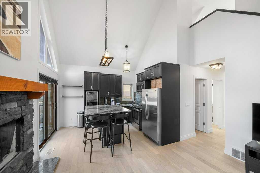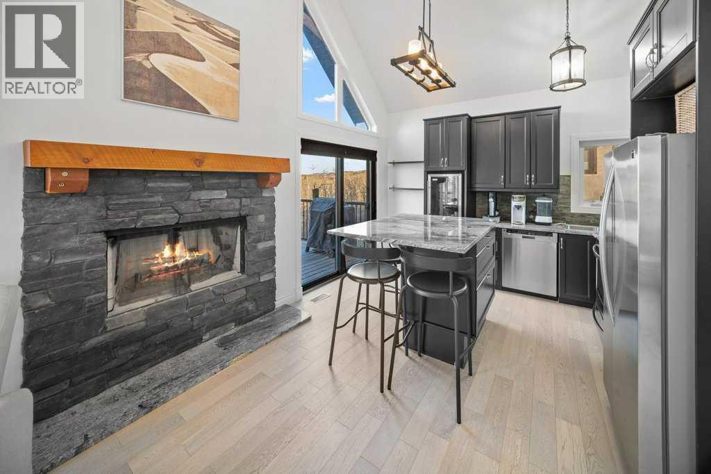 Perched in one of the most coveted locations within the community, this beautifully updated one-and-a-half story home captures the very best of lake living. Step inside through the convenient entryway to discover an open-concept living space where soaring windows frame unobstructed west-facing mountain views that will take your breath away morning and night. Fresh paint and new flooring throughout create a move-in-ready canvas, while the central wood-burning stone fireplace anchors the main living area with warmth and character.The main level thoughtfully offers two bedrooms alongside a full bathroom, ideal for family or guests. Ascend to the lofted primary suite—a private retreat with its own ensuite bathroom. Natural light pours through every corner of this home, making even the grey days feel bright.The developed basement extends your living space with a cozy family room or ideal space for a fourth bedroom, giving you flexibility as your needs evolve. Please note that the basement ceiling height is 6 feet and still a functional and comfortable space. With over 1500 square feet of living space the possibilities are endless. Outside, the expansive wraparound deck overlooks the ravine with nothing but nature and mountains beyond—no neighbours to interrupt your view. Located on one of the larger lots in Phase 1 at 5,401 square feet, the freshly landscaped property includes a crushed stone driveway leading to a double detached garage with the potential for an additional guest suite.Living here means more than just a beautiful home. A quick stroll brings you to the exclusive clubhouse where resort-style amenities await: boat launch, indoor pool, outdoor hot tub, tennis courts, gym, commercial kitchen, BBQs, and a wood-fired pizza oven on the huge sun soaked patio. Ideally situated within 30 minutes of both Calgary and the Rockies and only 15 minutes to Cochrane, Cottageclub delivers the best of both worlds—urban convenience meets mountain adventure at your doorstep. E njoy this year-round recreational paradise with every amenity and service you could possibly want just a short drive away. (id:63190)