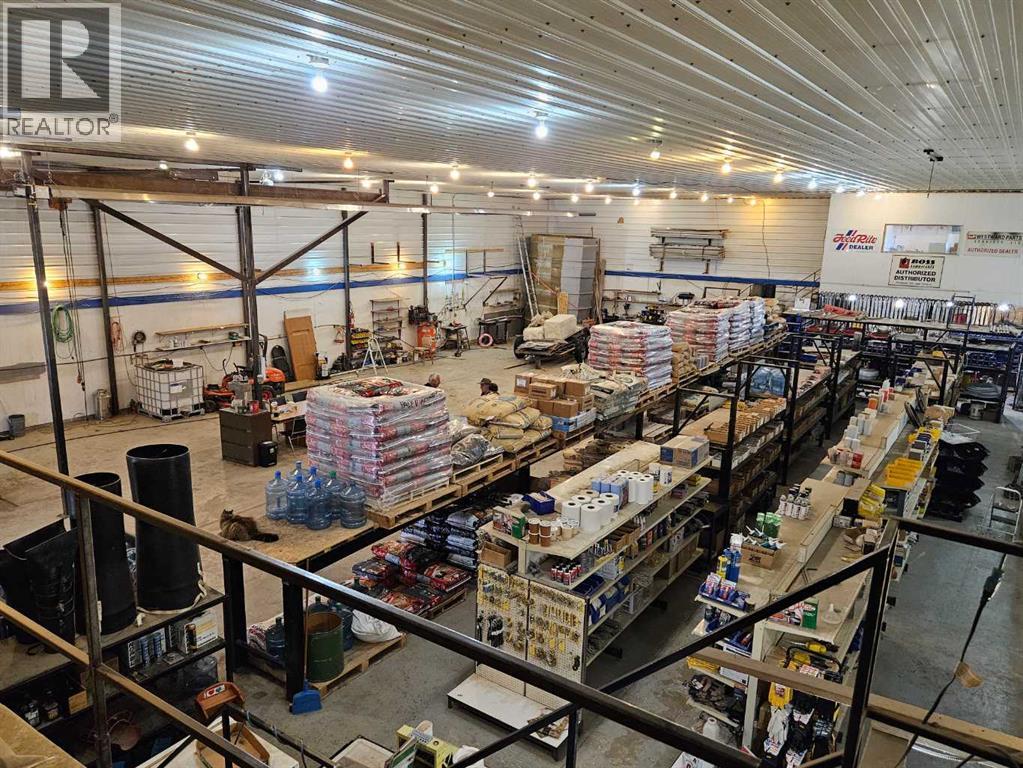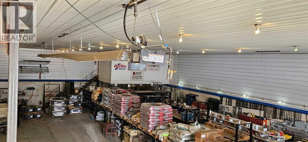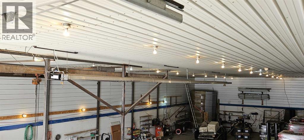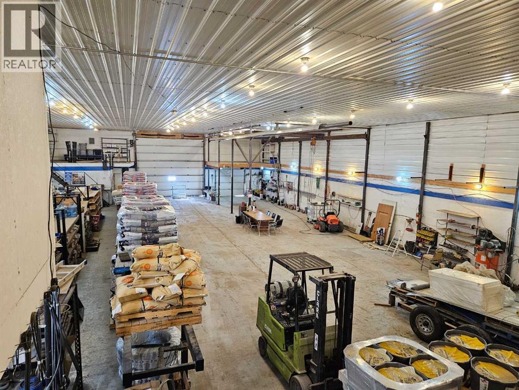 Welcome to Meeting Creek ... the "Hub of the Farming Community" just 1/2 hour south of Camrose. This 6240 sq ft building offers 3 mezzanines (providing lots of storage), 2 offices, 1.5 baths and also houses a local store ... and if possible, the renter who runs it, would love to stay on. You'll want to know that this building has 8" walls, 18' ceiling height and offers a 18'Wx16'H overhead door. There are two 7,000 gallon tanks under the floor. The one on the East side of the building has had potable water in it, and the West one has rain water collected in it from eavestroughs around the perimeter of the building. Then the water is pumped into the 4000 gallon tank in the NW corner of the shop, is filtered and chlorinated for use in the building. There's in-floor heat as well as an overhead heater. Ample parking at the front of the building makes it perfect for customers. Bring your ideas to this neat property in Meeting Creek! (id:63190)