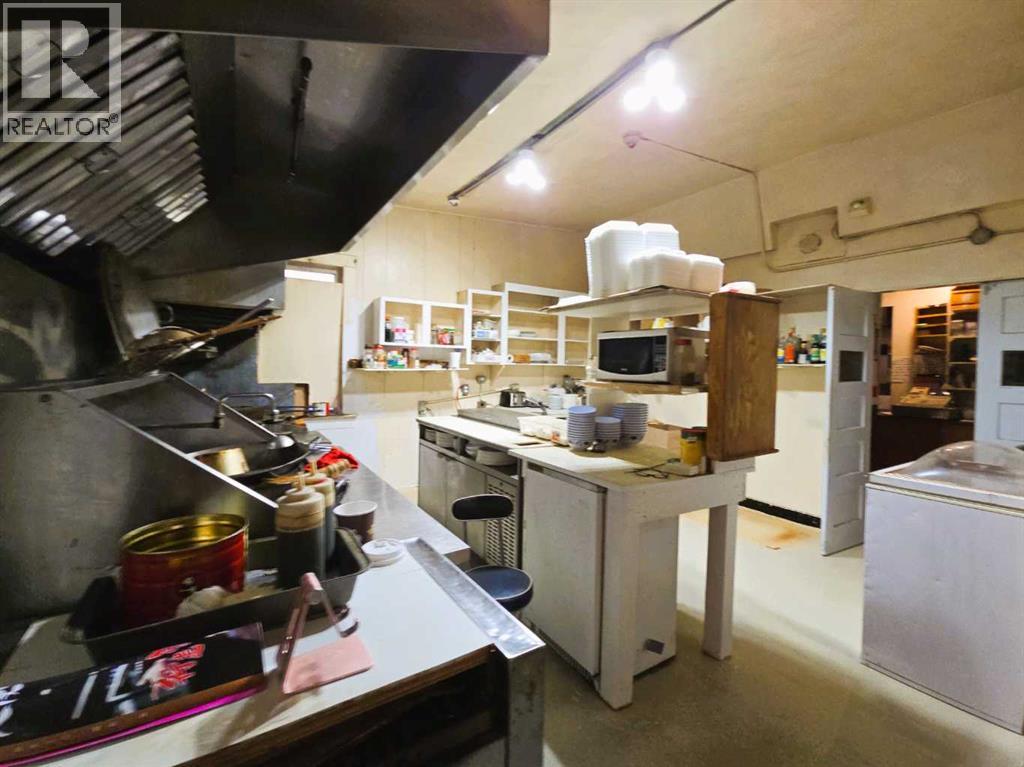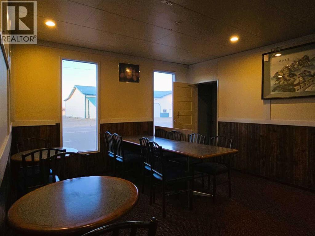 A rare opportunity to rethink how life and work can exist together is now available in the community of Duchess. This mixed use property brings commercial and residential spaces into one building, offering a layout that may suit buyers seeking simplicity, convenience and a unified daily rhythm. The main level features a restaurant style arrangement with a dining area, a lounge area and a commercial kitchen. Kitchen equipment, tables and chairs are included in the sale as viewed. The layout may support various food service concepts depending on buyer plans and all required approvals. The property does not have VLT machines at this time. The seller is willing to share general information about the VLT application process with the buyer. The building has previously contained an ATM and there is space where an ATM may be placed. Buyers may independently assess the suitability and requirements for this option.The upper level offers a residential area with four bedrooms, a living space and a full bathroom. Buyers may consider this level for owner occupancy, staff accommodation or other uses as permitted and confirmed through their own due diligence. The arrangement creates the possibility of keeping daily life and daily work close, while still maintaining separation between the two floors.Duchess is a quiet community located north of Brooks with access to local amenities and straightforward travel to the Trans Canada Highway. The area provides a small town environment with recreational facilities, community services and seasonal visitors traveling to nearby attractions. Buyers may explore how the surroundings align with their intended use of the property.This building brings together commercial space and on site residential living in a single location, offering a flexible layout for various buyer needs. (id:63190)
