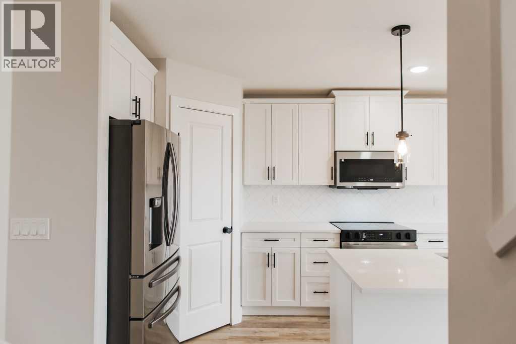 Offering exceptional value for both first-time buyers and investors, this brand-new KINLEY LUXURY Duplex in Bridgewater, Clairmont is set for completion in JUNE 24, 2026 and delivers a blend of comfort, efficiency, and modern style, highlighted by quartz countertops, a clean tile backsplash, soft-close shaker cabinets, upgraded stainless steel appliances, pendant lighting, and durable Valhalla barn wood vinyl plank flooring; the open main floor layout includes a corner pantry and thoughtfully designed storage, while upstairs you’ll find a peaceful rear primary bedroom with a walk-in closet and four-piece ensuite, two additional bedrooms, a full main bath, and the convenience of second-floor laundry; energy-conscious features such as hot water on demand, a high-efficiency furnace, Low-E argon windows, lifetime fiberglass shingles, low county taxes, and a 10-year new home warranty help reduce long-term costs; the unfinished basement offers flexibility for adding two more bedrooms and another full bath, and the insulated, drywalled 11'9" x 23'5" attached garage adds everyday practicality; buyers and investors also have the option to acquire up to four adjoining units, with photos shown from a previous build and final finishes subject to variation—contact us for more information or to arrange a viewing.( click on the video or multi media link to see the 3D tour!) (id:63190)