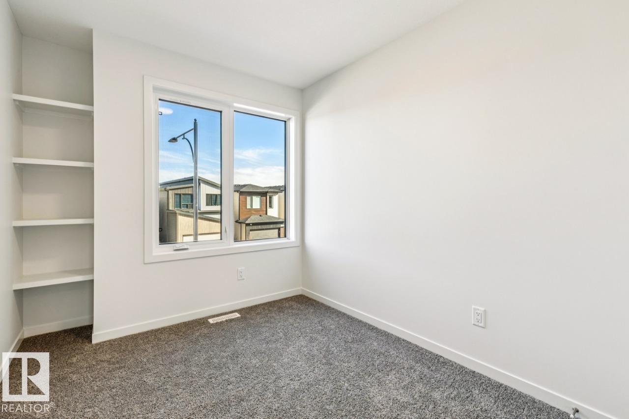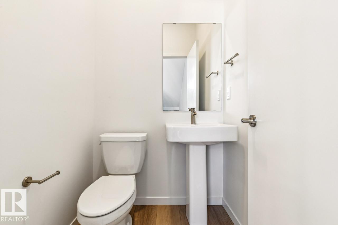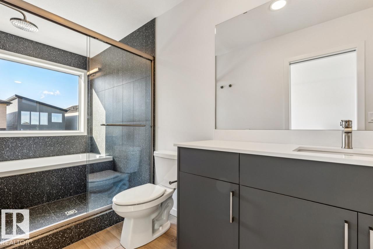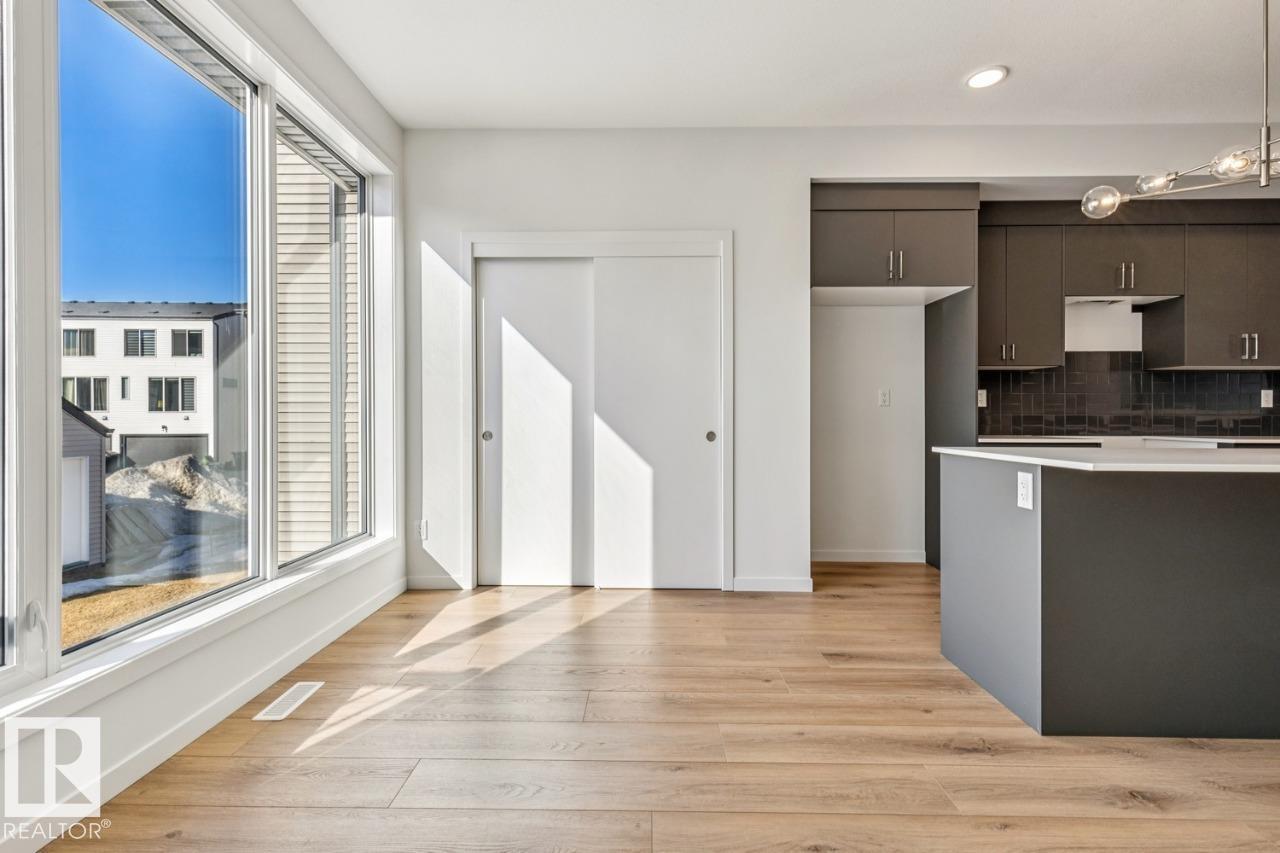 Welcome to the Metro Elevate 18 by Cantiro Homes! Located in the sought after community of Riverstead at Keswick in Southwest Edmonton, this 1391 sq ft rear laned single family home offers 3 beds, 2.5 baths and upstairs laundry. This home offers a thoughtfully designed split level layout that seamlessly connects your main living spaces. The spacious living room flows into an elevated kitchen and dining area, creating an open yet distinct feel. Upstairs, the large primary bedroom includes a luxurious ensuite with a wet room and drop in tub, along with direct access to the walk in closet and adjoining laundry room for added convenience. Additional features include: electric fireplace, upgraded iron spindle railing, Slate interior style, and West Coast Fusion Plus exterior. (id:63190)