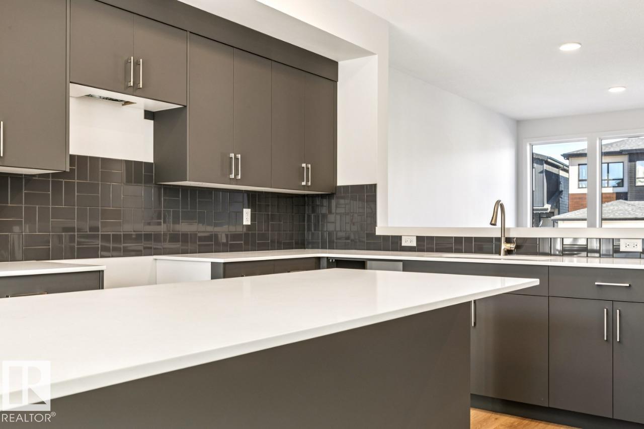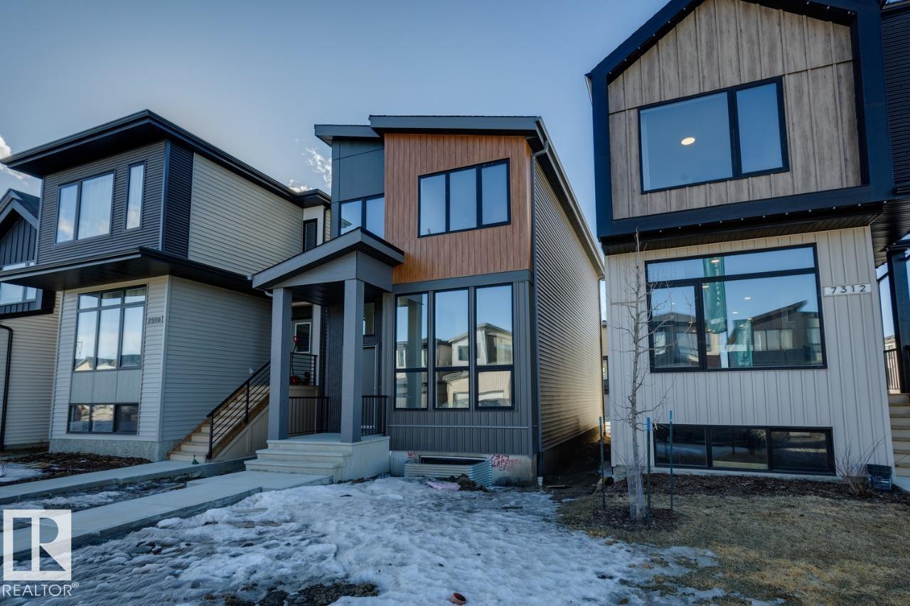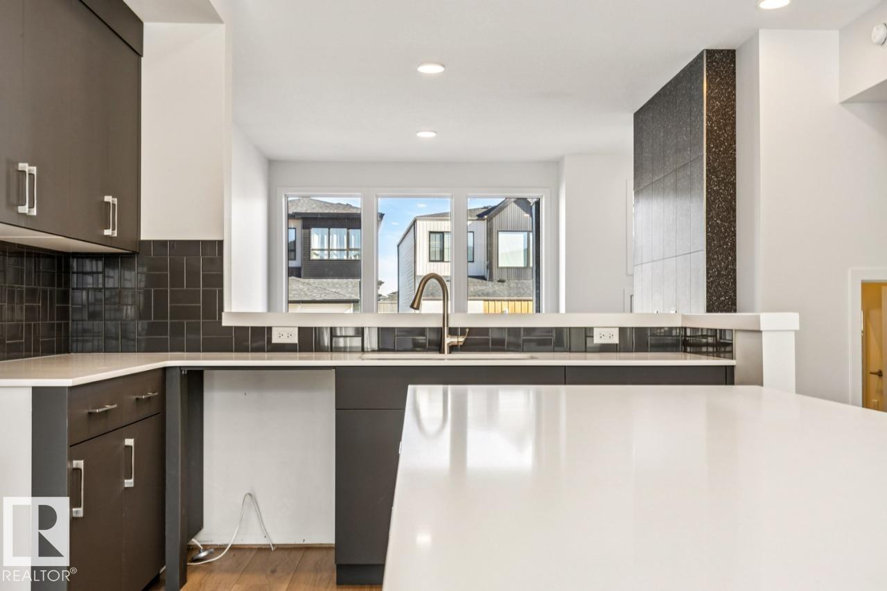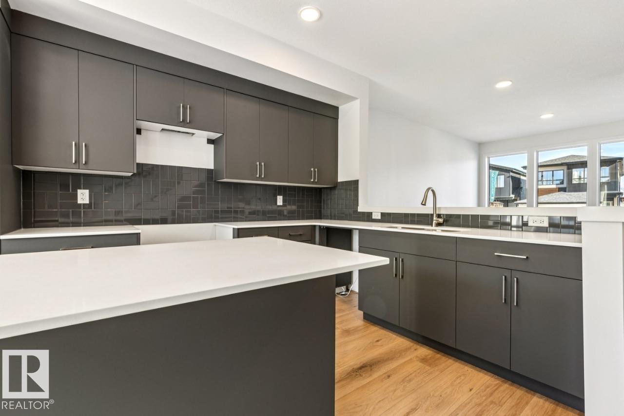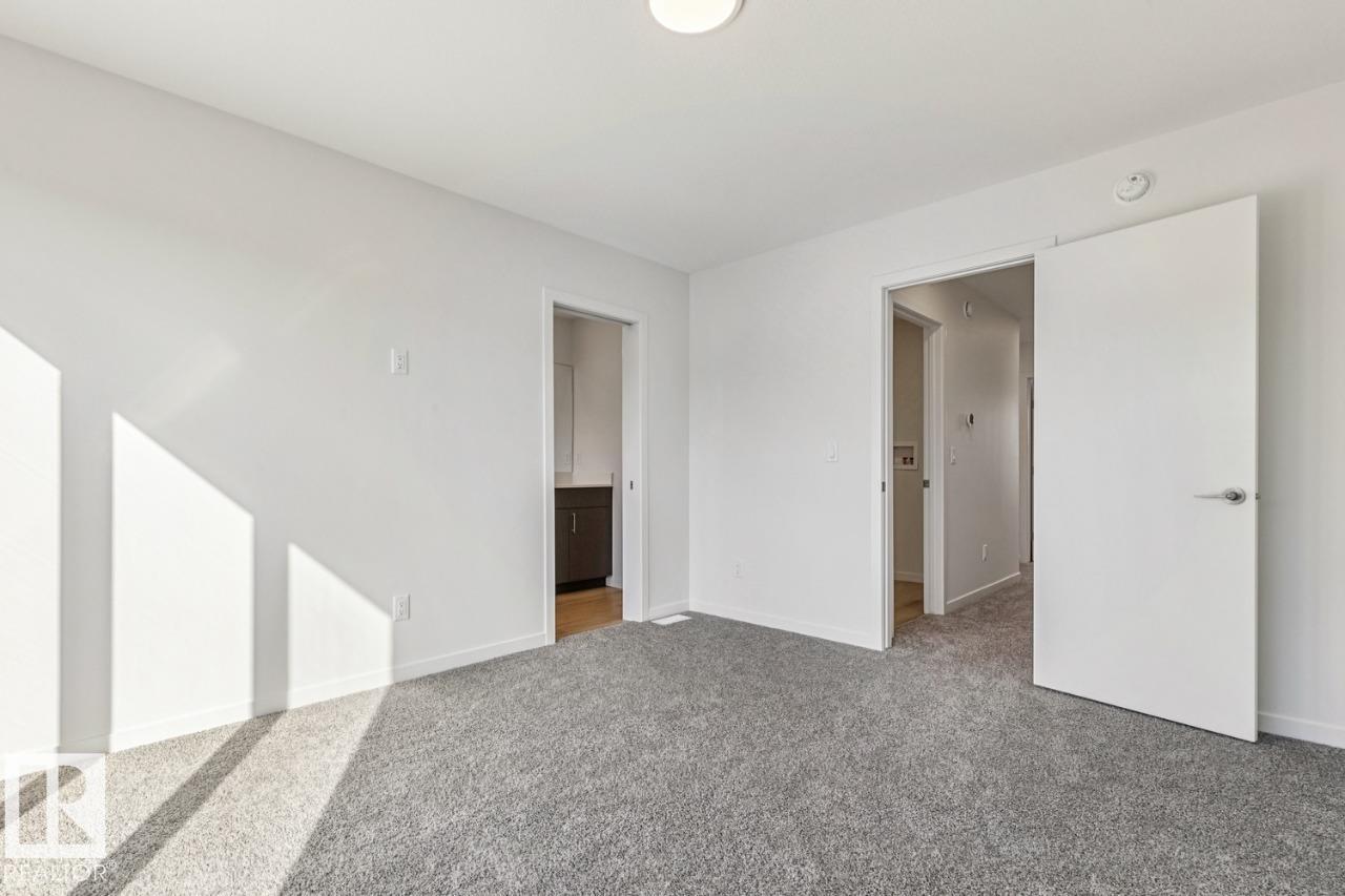 Welcome to the Metro Elevate 18 by Cantiro Homes! Located in the sought after community of Riverstead at Keswick in Southwest Edmonton, this 1391 sq ft rear laned single family home offers 3 beds, 2.5 baths and upstairs laundry. This home offers a thoughtfully designed split level layout that seamlessly connects your main living spaces. The spacious living room flows into an elevated kitchen and dining area, creating an open yet distinct feel. Upstairs, the large primary bedroom includes a luxurious ensuite with a wet room and drop in tub, along with direct access to the walk in closet and adjoining laundry room for added convenience. Additional features include: electric fireplace, upgraded iron spindle railing, Slate interior style, and West Coast Fusion Plus exterior. (id:63190)