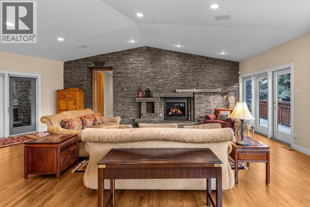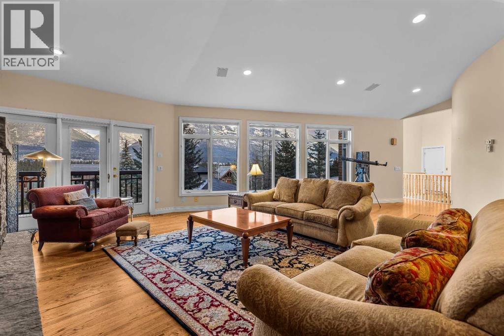 Set in one of Canmore’s premier neighbourhoods, this custom-built Prospect residence captures panoramic mountain views from its elevated perch. Crafted for both everyday living and effortless entertaining, the home’s main level brings together the kitchen, dining area, great room, and primary suite in a seamless layout that can be reached directly from the front entry or the triple-car garage via a private elevator.Resting on an impressive 21,786 sq ft lot, the property rises gently above the road and borders a natural forested slope, allowing the home to take full advantage of its stunning alpine backdrop. A selection of thoughtfully placed outdoor spaces lets you follow the sun and enjoy the changing seasons year-round.The lower level welcomes family and guests with a spacious family room and three well-appointed bedrooms. Upstairs, an additional guest room—or a comfortable home office—adds flexibility to the 4,341 sq ft floor plan. Timeless mountain-inspired finishes, including a striking Rundle stone fireplace, lend warmth and sophistication throughout.With Main Street just a short stroll away along the Bow River pathway, this remarkable home pairs mountain living with unbeatable convenience. (id:63190)