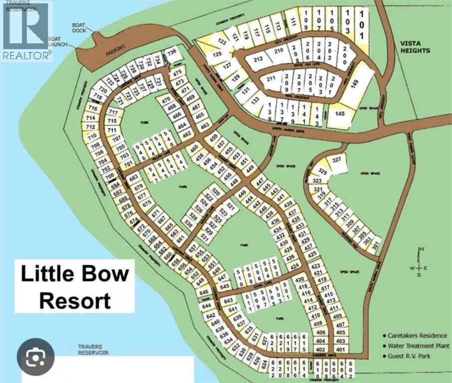 Large Lot top the hill in Vista Heights in EXCLUSIVE Little Bow Resort! On Lake 1.5 hours out of Calgary and 1 hour out of Lethbridge. Build your dream home on this large 1/3of an acre lot with spectacular views. Little Bow’s clean Reservoir is over 21 Km long with unlimited options to explore, perfect for all water sports, including boating from the private marina, swimming, private sandy beaches, fishing, and in the winter is skating, sledding, ice fishing, and fun on the ice, off-road trails, community activities, fireworks, fishing, derbies, barbeques. Stunning sunsets, northern lights. Walk-out home possible, lot access from the front and back. Full services include electricity, gas, water and sewer to building site, water treatment plant (no septic needed), and garbage removal. Excellent cell coverage and high-speed internet are available. On site refueling for water craft. Secure storage. No building time restrictions; there is RV parking & storage so you can enjoy paradise right away and share it with your guests. Maintenance Supervisor on site year-round. Great Investment for future development. Video Available. (id:63190)