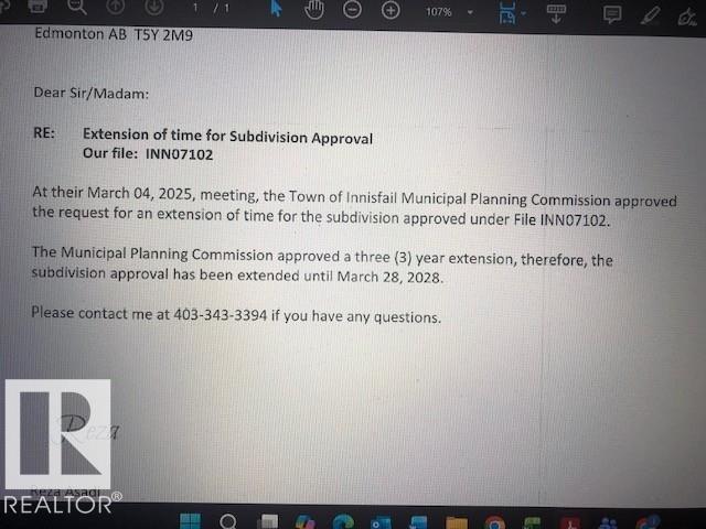 Property is 3.26 Acres with proposed and approved rezoning for Hwy Commercial and Multifamily use. Locked gate off of Hwy 2A. Proceed to 4408-44 Street and enter from cul-de-sac. Large 2272 sq.ft home with double garage is ideal living until property is developed. Being the Seller has not lived in the home; it is being sold 'As Is'.1.71 Acres is zoned for Hwy Commercial; and balance of 1.55 Acres is zoned for R-3 Multi-Family. Innisfail town park borders this property; adding to the value for Multi-family development. All permits and plans are included in the Purchase Price. (id:63190)