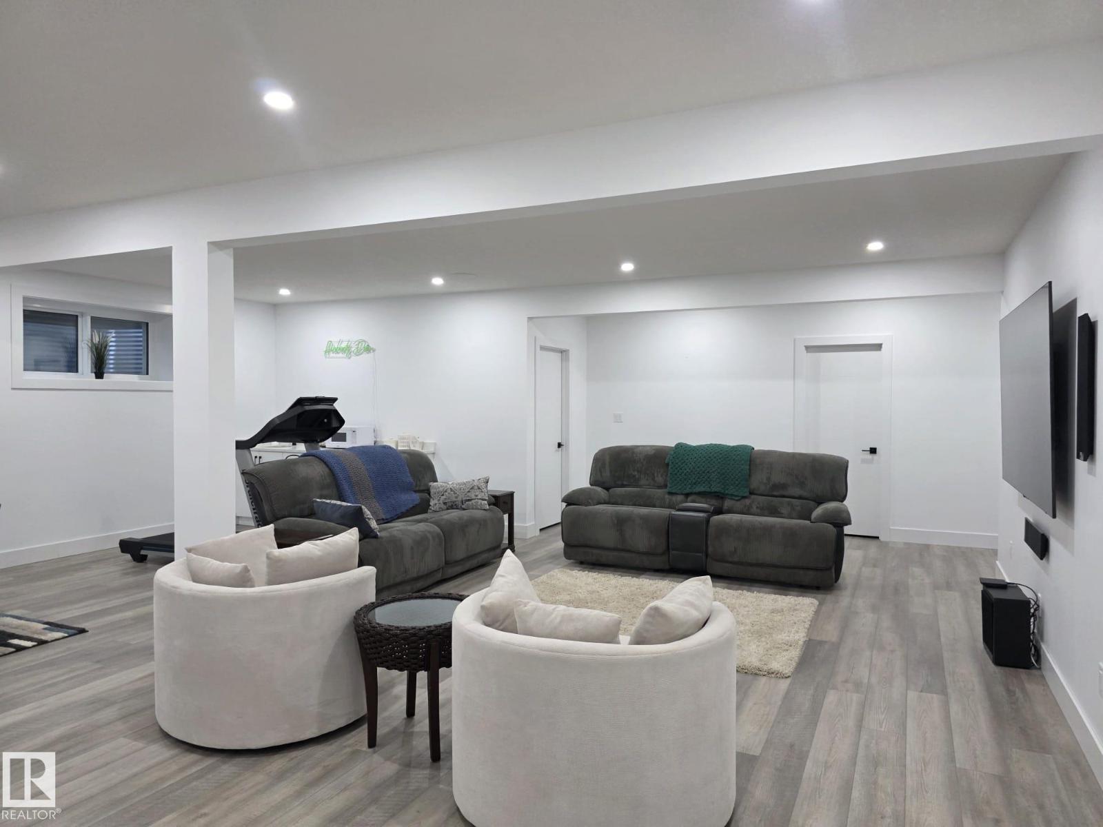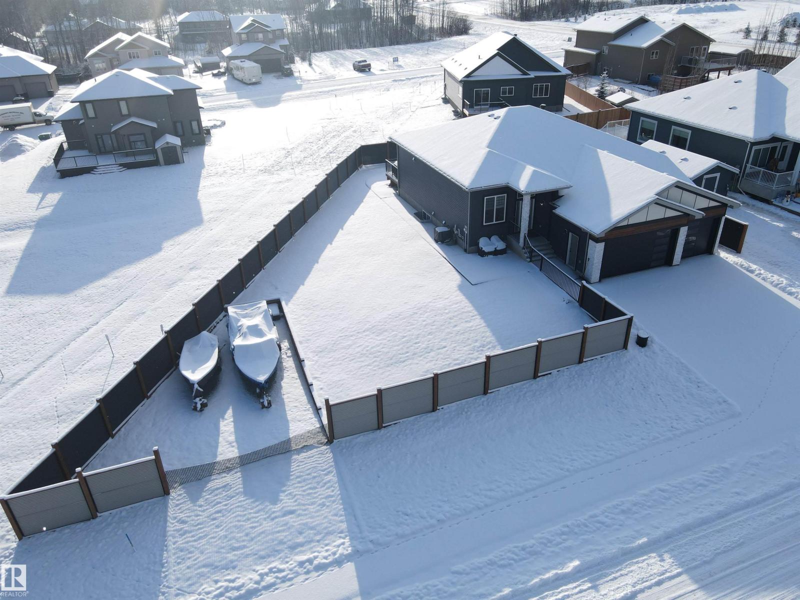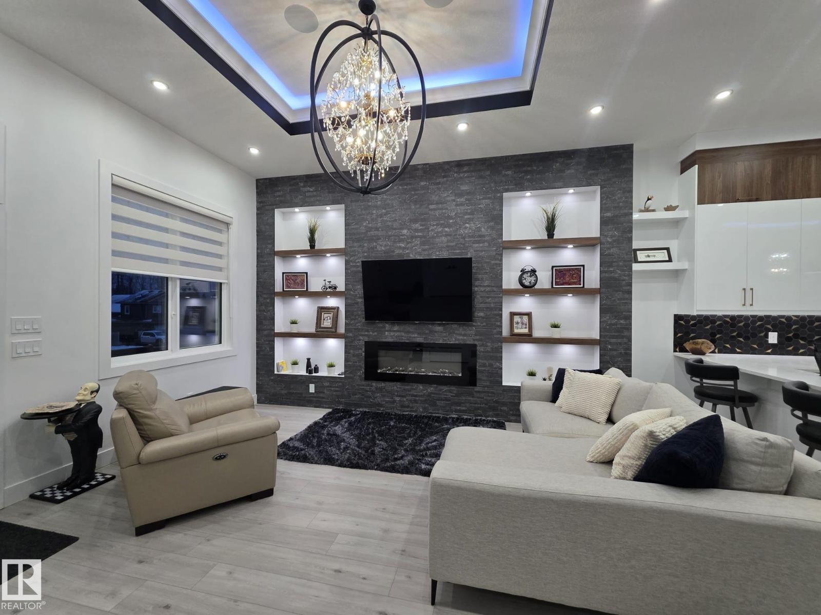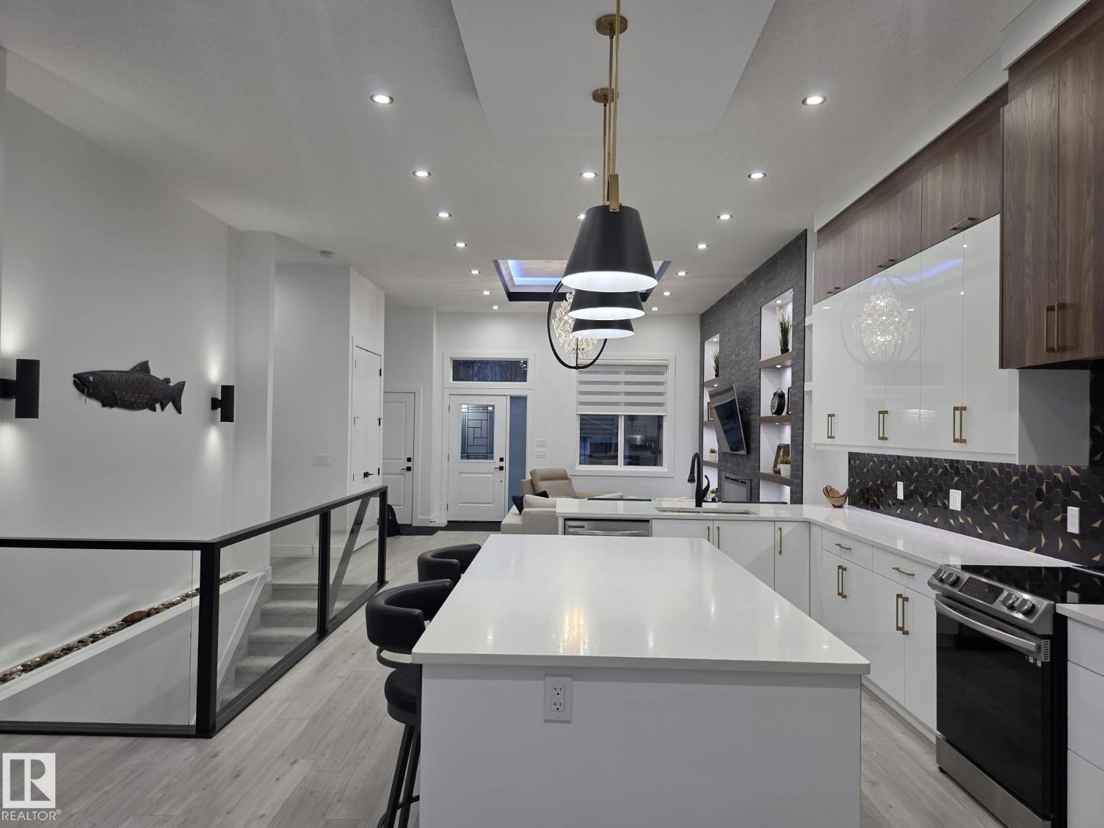 Welcome to this exceptional 5 bed, 4 bath bungalow in the desired River Ravine Estates, crafted for those who appreciate luxury comfort. Set on .27-acres w/ RV parking, this home offers over 1,800 sq ft on the main level, 11 ft ceilings & expansive windows create an inviting, light-filled atmosphere throughout the open living space. The striking kitchen boasts a large island, quartz surfaces & stainless steel appliances. A beautiful floor-to-ceiling stone fireplace anchors the living room. Main floor offers 3 baths, two of which are ensuites and main floor laundry. The finished basement adds the two additional bedrooms, a 3-piece bath (awaiting your completion), & an impressive family area w/ a wet bar. High-efficiency furnace, central AC, HRV system and triple-pane windows. Outdoors, enjoy a 24x10 vinyl deck with aluminum railing, professionally designed landscaping and concrete patios. A spacious triple garage completes this stunning property! (id:63190)