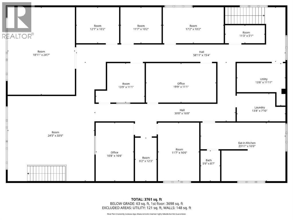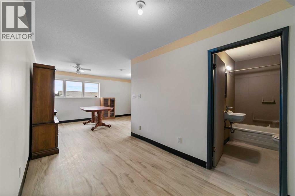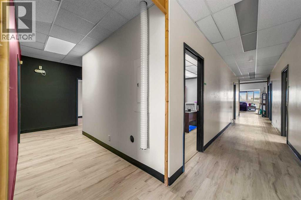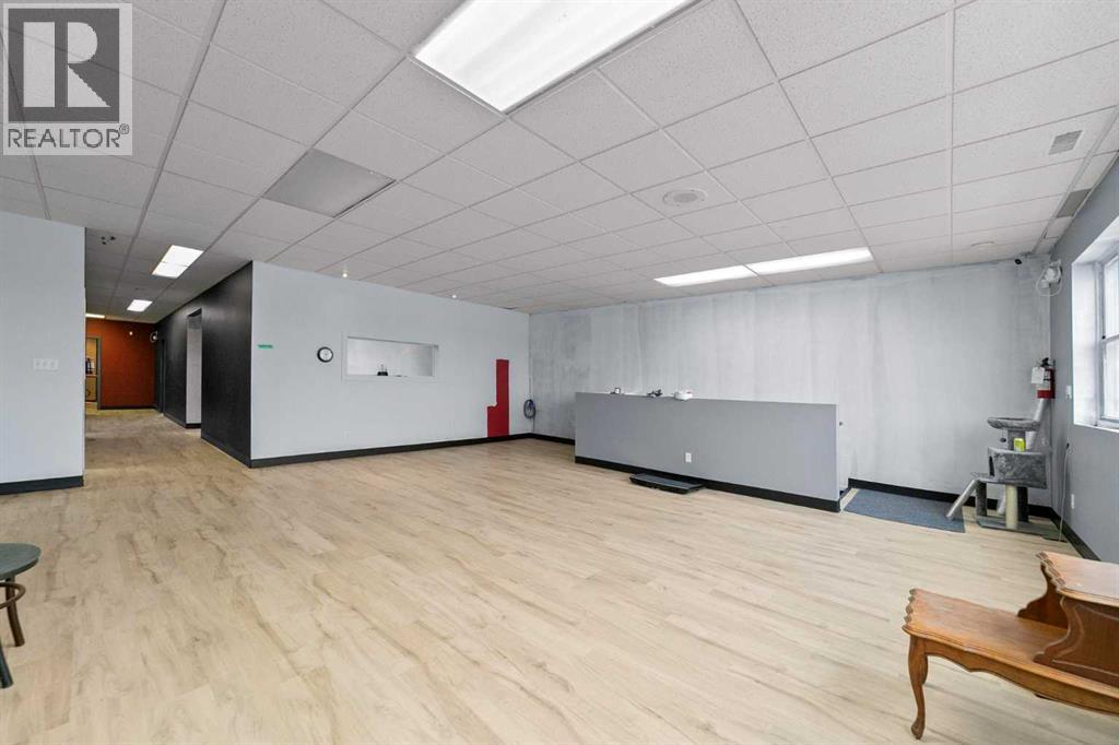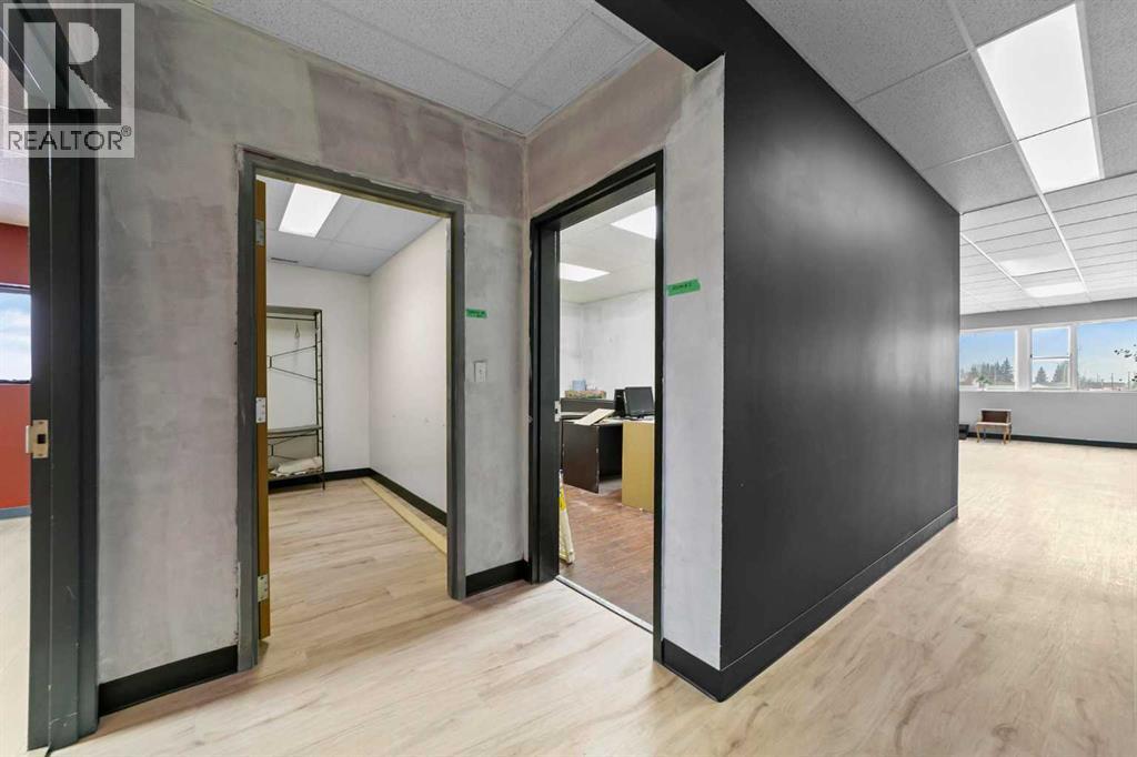 Available Immediately. Large, second floor multi-purpose space for lease. Suitable for small business, professional services, and retail. $2300 per month plus power. Gas & water included. Designed to combine commercial/workspace and residential functions within the same unit. New durable vinyl plank flooring throughout gives the space both a modern and comfortable feel. There is public access from street with employee parking and second entrance from the rear. This ideally located space within the downtown of Camrose offers many work space options. There are 2 large front spaces with expansive windows suitable for reception, show spaces, or open work areas. 7 large multi function office spaces can easily be used as meeting rooms, private offices, or service spaces. Additionally there are 2 storage rooms, a full bath with shower, kitchen, laundry room, and continuous hall to easily connect all spaces. (id:63190)