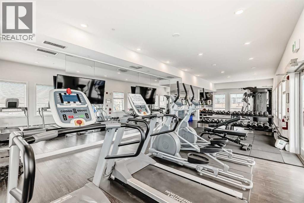 Welcome to this beautifully maintained 2-bedroom, 2-bathroom condo in the highly sought-after Legends of Cornerstone. Occupied by a single tenant since possession, this home has been exceptionally cared for and shows like new. Featuring 9 ft ceilings, oversized windows, and modern laminate flooring, the unit offers a bright, open-concept layout that provides both comfort and functionality.The contemporary kitchen is equipped with quartz countertops, stainless steel appliances, and sleek cabinetry extending to the ceiling—perfect for everyday cooking or hosting guests. The living area flows seamlessly onto a spacious private balcony, ideal for morning coffee, fresh air, or relaxing after a long day.The primary bedroom includes a walk-in closet and a 4-piece ensuite bathroom. A well-sized second bedroom and an additional full bathroom make this home ideal for small families, professionals, or investors.Enjoy the convenience of titled underground parking and assigned storage. Residents also have access to some of the best condo amenities in the city, including a fully equipped gym, yoga studio, spinning room, theatre room, pet spa, and a large community event space with a kitchen—perfect for larger gatherings or celebrations.Located in Cornerstone, one of Calgary’s fastest-growing communities, this condo is minutes from Stoney Trail, Calgary International Airport, shopping centers, schools, parks, and walking paths.A must-see opportunity—book your private viewing today! (id:63190)