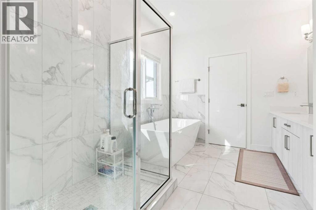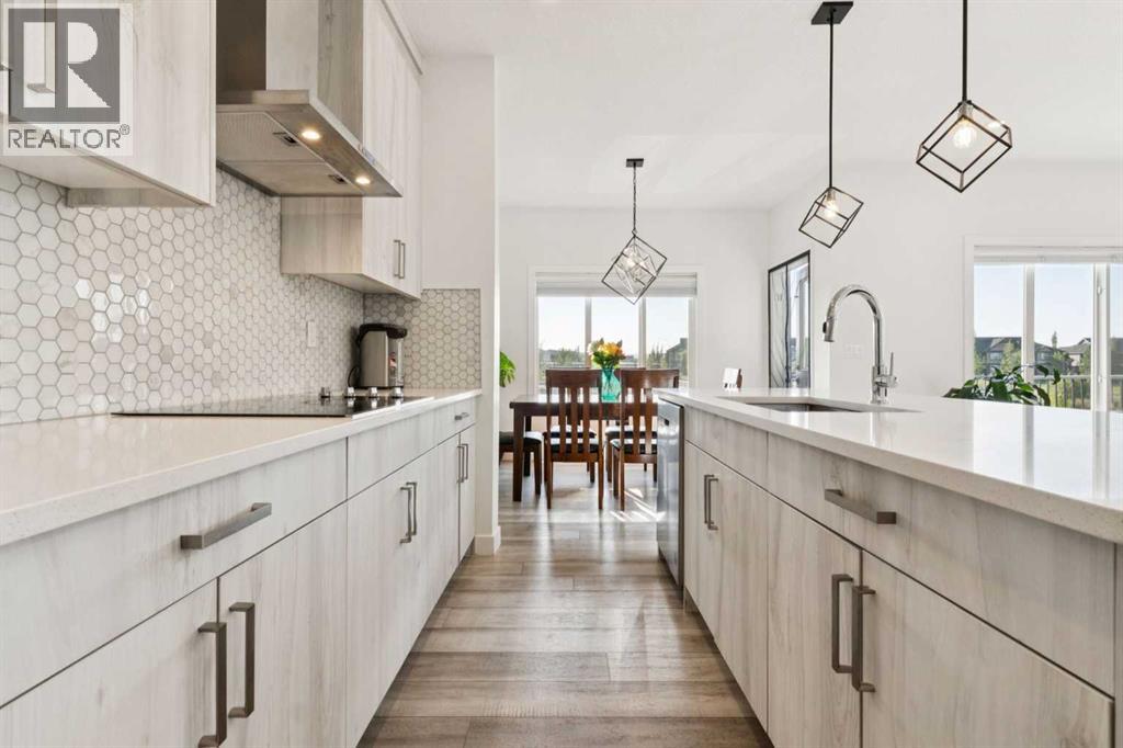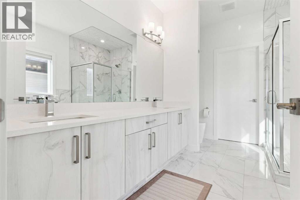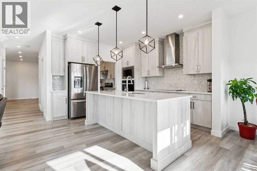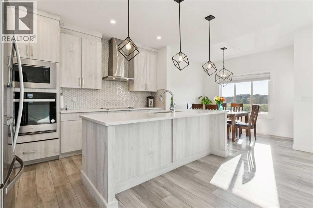 Welcome to your dream family home! This exquisite Walkout property, built on a premium Corner Lot in Midtown Airdrie, seamlessly blends modern luxury with practical living. Featuring 6 Bedrooms, 4.5 Bathrooms, and Two master suites, and total over 3300 sqft developed living area, it offers flexible living space perfect for any lifestyle. Each floor comes with 9-foot ceilings, offering a bright and spacious living environment. Step inside to discover a sun-filled open-concept layout with higher ceilings and oversized windows framing serene lake views. The main level offers a welcoming foyer, a spacious living and dining area, and a chef’s kitchen complete with built-in electric cooktop, built-in wall oven and microwave, full-height cabinets that extend to the ceiling, providing plenty of storage space, and a versatile SPICE Kitchen with an additional gas range —perfect for effortless cooking and gatherings.Upstairs, enjoy four generously sized bedrooms, including Two luxurious master suites. The primary retreat boasts stunning lake views, a walk-in closet, and a spa-like 5-pc ensuite with dual vanities and a freestanding tub. A second master bedroom faces the quiet green space and includes its own walk-in closet and ensuite bathroom. A bright bonus room overlooking the lake and a convenient laundry room complete this level.The fully finished walkout basement is an entertainer’s delight, featuring two additional bedrooms, a full bathroom, a stylish wet bar, and a second massive laundry room with extra storage—offering excellent potential for guests, teens, or rental income.Outside, the professionally landscaped backyard includes a custom garden, new concrete steps, a widened driveway, and a peaceful sunroom with motorized blinds. Enjoy summer days on your deck overlooking the pond, while kids play in the nearby playground.Recent upgrades include a new AC system (July 2025), new iron fencing, fresh concrete work, and more. Located moments from green spaces, la ke access, and a school bus stop directly across the street, this home combines luxury, location, and lifestyle like no other.Don’t miss the chance to make this extraordinary property your own! (id:63190)