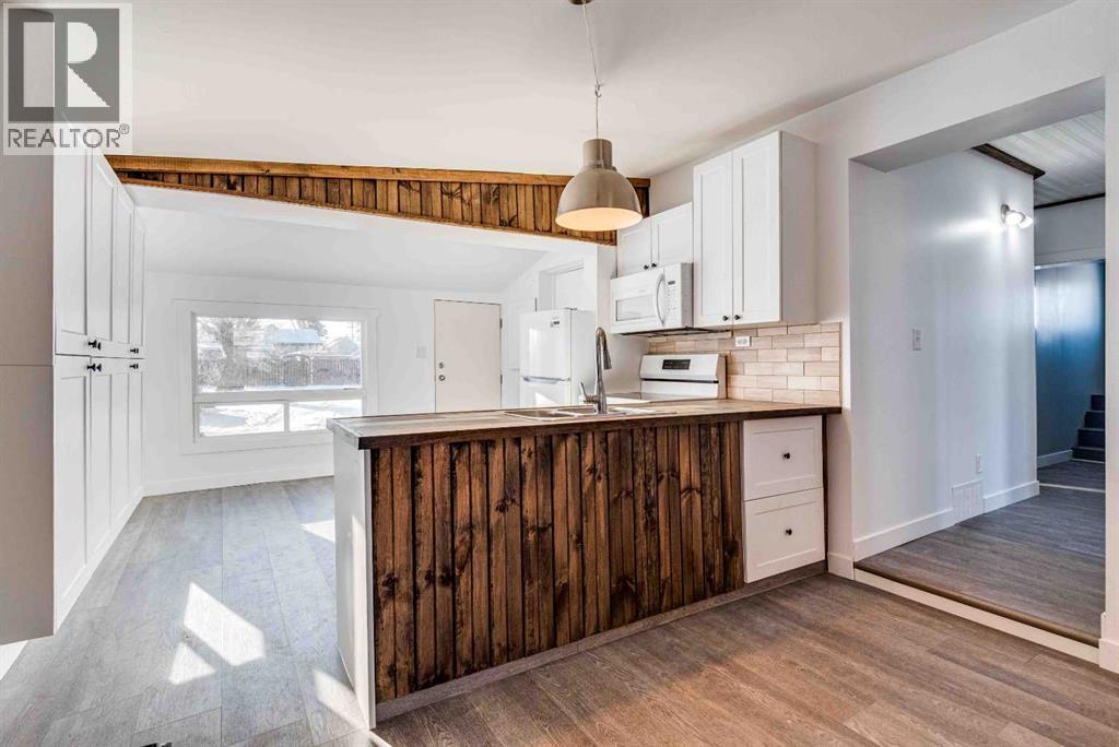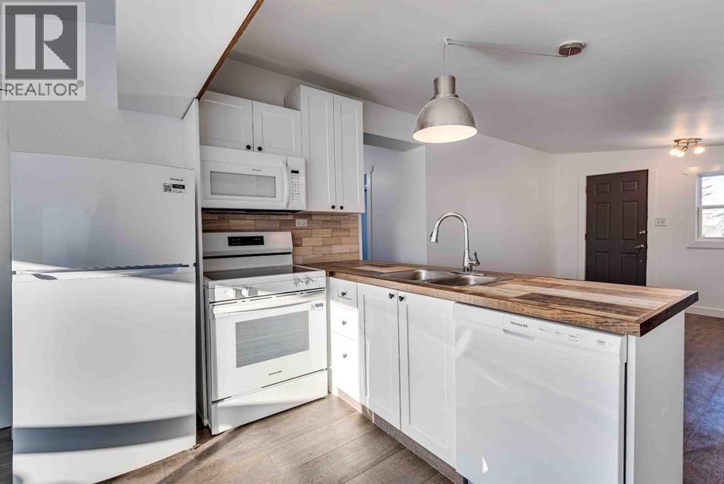Quaint! Charming! Adorable! Welcome to 205 Trochu Ave—a fully renovated home, seamlessly blending modern chic with old house charm leaving you with a warm cottage comfort. The beautiful living room, boasts a custom hearth and gas stove., open to a trend and modern kitchen, and the home boasts a large master suite, with a second bedroom and a finished attic provides ample space for a single homeowner a couple or smaller family, main floor laundry, all the comforts of home. The yard is spacious and ready for your hearts desire, be it a new garage, or an expansive garden or a bit of both. This home is central Trochu and walking distance to the golf course, school, and the growing downtown. This is a cute old house made "all but new" with new appliances, flooring, paint, windows, siding, metal roof, hot water tank, and new Pex waterlines, and even a new 100 amp service. (id:63190)