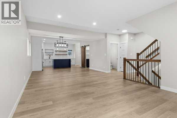 NO CONDO FEES. Located in the vibrant community of Sylvan Lake, this centrally located 2023-built 1865 square foot townhouse offers the perfect blend of modern style, space, and convenience. This high-end home features 5 bedrooms in total—3 on the second level, including a spacious primary bedroom with a luxury 4-piece ensuite, plus an additional 4-piece bathroom. The second level also includes a conveniently located laundry right alongside the bedrooms. Beautiful neutral paint tones, an abundance of large windows, and durable vinyl plank flooring create a bright, inviting atmosphere throughout the home. The open-concept main level showcases a bright white kitchen with a walk-in pantry, large island, and adjoining living room, along with a mudroom and a 2-piece bath. Off the kitchen, enjoy access to a back deck overlooking the fully fenced yard. The fully developed basement offers 2 additional bedrooms, a large family room, and another 4-piece bathroom. Just minutes from shopping, schools, the NexSource Centre, the community centre, and only three blocks from beautiful Sylvan Lake, this home delivers exceptional comfort in a great location. (id:63190)