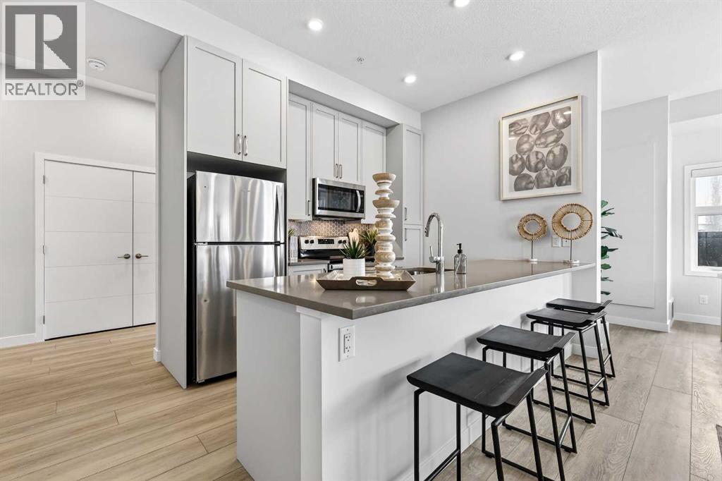 ** OPEN HOUSE SATURDAY 2-4**2 TITLED UNDERGROUND STALLS INCLUDED** LOVE YOUR LIFESTYLE! Les Jardins by Jayman BUILT next to Quarry Park. Inspired by the grand gardens of France, you will appreciate the lush central garden of Les Jardins. Escape here to connect with Nature while you savor the colorful blooms and vegetation in this gorgeous space. Ideally situated within steps of Quarry Park, you will be more than impressed. Welcome home to 70,000 square feet of community gardens, a proposed Fitness Centre, a Dedicated dog park for your fur baby, and an outstanding OPEN FLOOR PLAN with unbelievable CORE PERFORMANCE. You are invited into a thoughtfully planned 2 Bedroom, 2 Full Bath MAIN FLOOR CORNER UNIT plus expansive balcony, (LARGEST DECK AVAILABLE). This home boasts QUARTZ COUNTERS through out, sleek STAINLESS STEEL WHIRLPOOL APPLIANCES , dishwasher , slide in stainless steel electric range with ceramic cooktop, and built-in microwave. Luxury Vinyl Plank Flooring, High End Fixtures, Smart Home Technology, A/C and your very own in suite WASHER AND DRYER. This beautiful suite offers a spacious dining/living area with sliding doors and large bright windows, a spacious entry corridor with two storage closets, an expansive balcony, a galley kitchen design with an extended eating bar, and side-by-side laundry. STANDARD INCLUSIONS: Solar panels to power common spaces, smart home technology, air conditioning, state-of-the-art fitness center, high-end interior finishings, ample visitor parking, luxurious hallway design, forced air heating and cooling, and window coverings in bedrooms. Offering a lifestyle of easy maintenance where the exterior beauty matches the interior beauty with seamless transition. Les Jardins features central gardens, a walkable lifestyle, maintenance-free living, nature nearby, quick and convenient access, smart and sustainable, fitness at your fingertips, and quick access to Deerfoot Trail and Glenmore Trail. It is located 20 minutes from downtown, minutes from the Bow River and pathway system, and within walking distance to shopping, dining, and amenities. Schedule your appointment today! (id:63190)