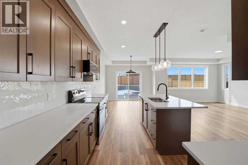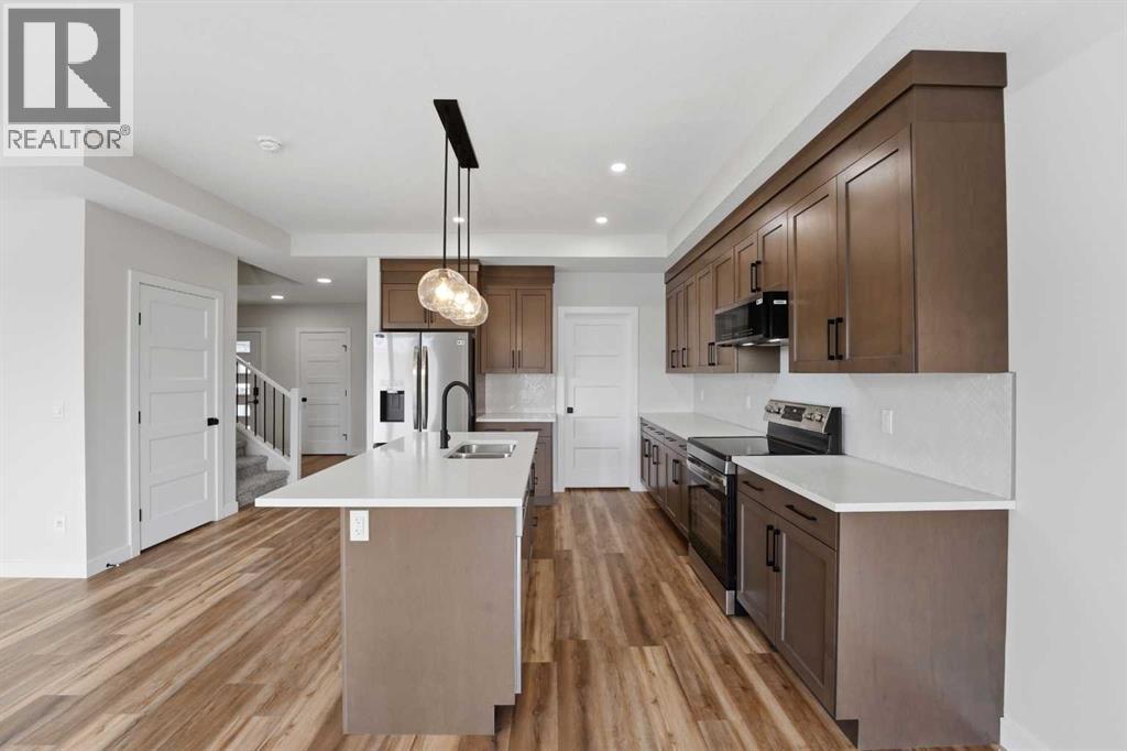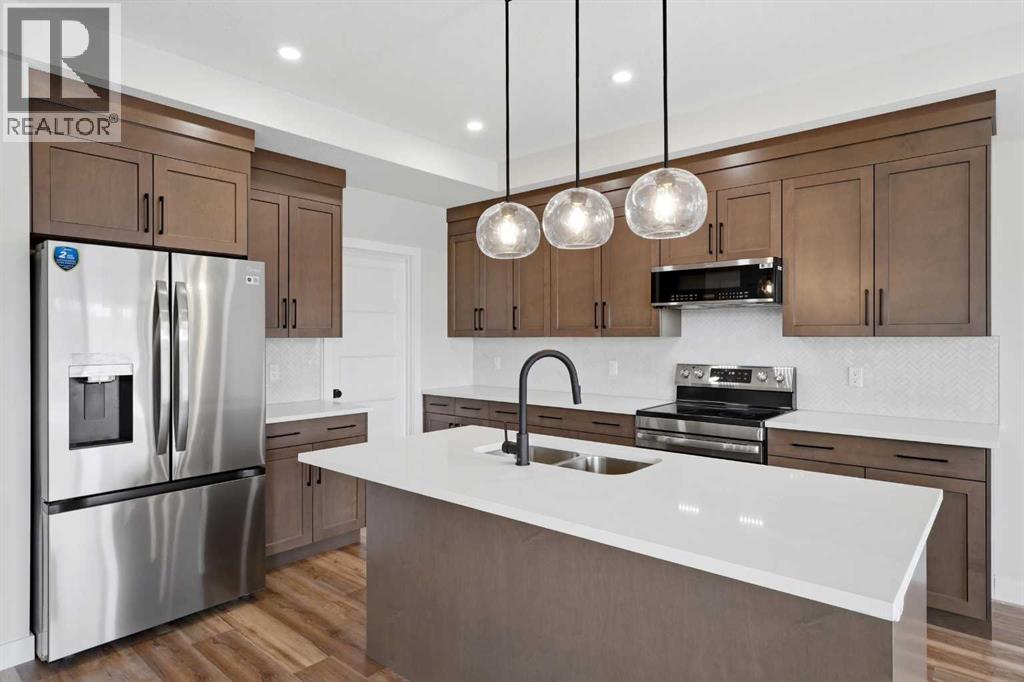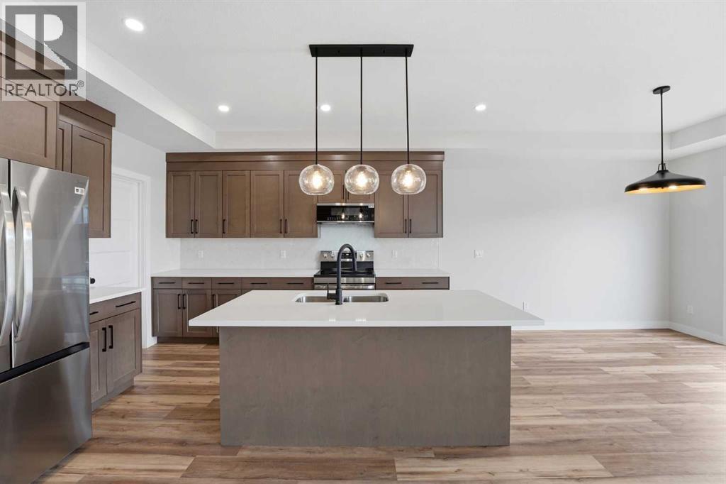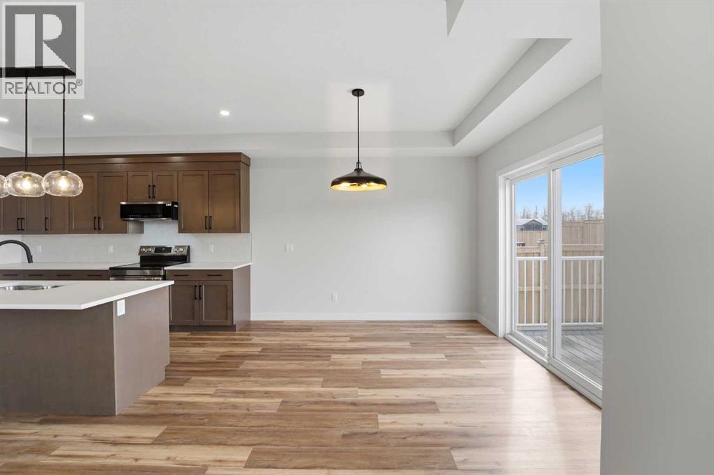Brand new Black Wolf Custom home in Sylvan Lake. Step into this stunning new build in the sought-after Crestview community, offering exceptional curb appeal with modern exterior finishes, an abundance of windows, and a welcoming covered front porch with durable composite decking. The spacious front entry greets you with luxury vinyl plank flooring, a built-in bench for convenience, and a walk-in coat closet. Designed with entertaining in mind, the bright and open main floor features a generous living area and a show-stopping kitchen complete with a large center island, quartz countertops, stainless steel appliances (with a waterline for fridge/ice maker), and a stylish butler’s pantry that includes a prep sink, coffee bar, and space for a freezer or wine fridge. The dining area is perfect for hosting and opens directly onto a west-facing 10' x 12' composite deck. Upstairs, you’ll find a sunny bonus room, two well-sized bedrooms, a 4-piece main bathroom, and a convenient laundry area with washer and dryer included. The spacious primary suite easily fits a king-sized bed and offers a walk-in closet and a 4-piece ensuite with double sinks & stand up shower with glass door. The unfinished basement features a separate side entrance for home business, private guest space, or a teen retreat. With 9-foot ceilings, a high-efficiency furnace, and rough-ins for both air conditioning and in-floor heating, this home is built for comfort and future flexibility. The attached garage is insulated and drywalled, complete with a floor drain and a 220V outlet—ideal for EV charging. Located in the desirable Crestview neighborhood, this home is close to the highway, town amenities, the local trail system, and beautiful Sylvan Lake. Seller to complete front & back sod as well as pressure treated fence so bring the kids and pets, move in ready, immediate possession available (id:63190)
