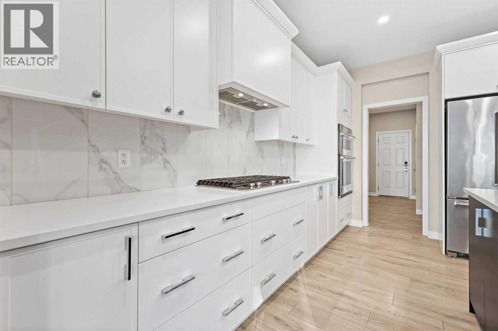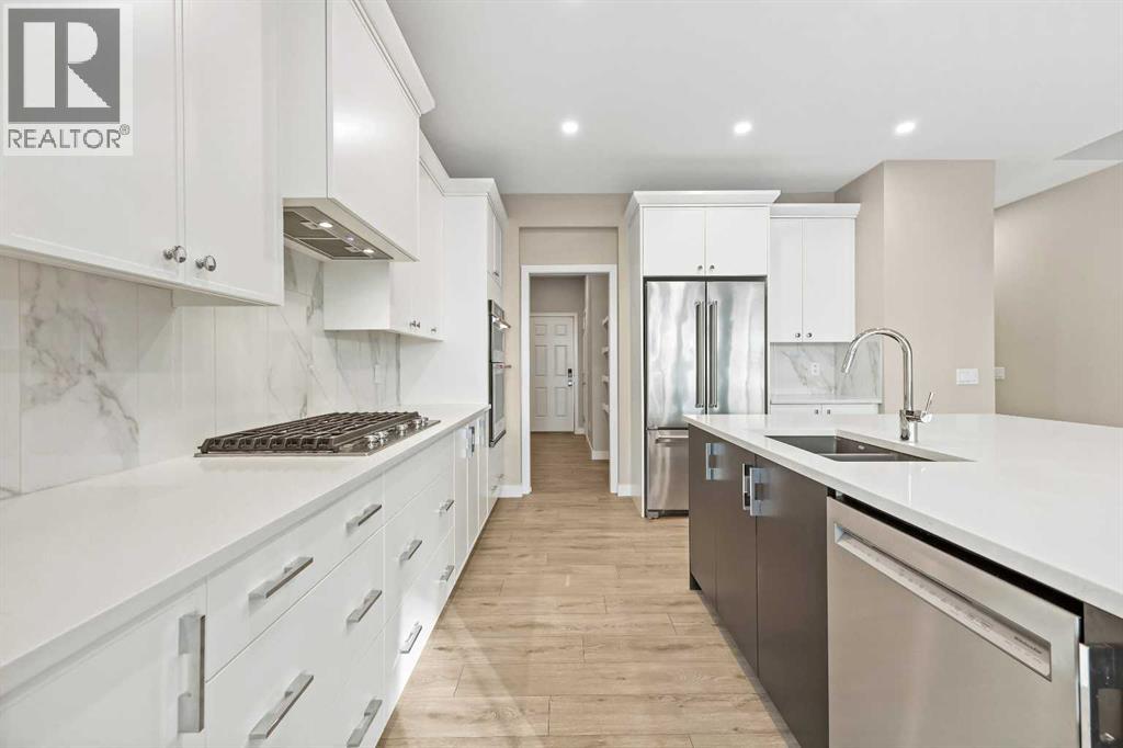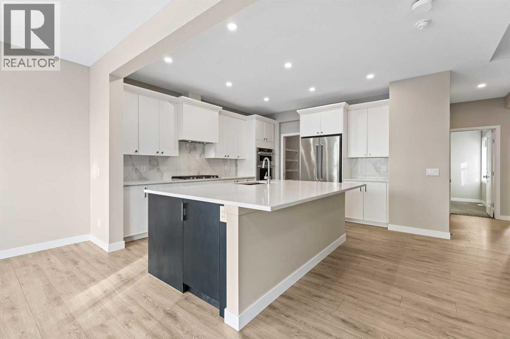 ** OPEN HOUSE 2-4 pm THIS SUNDAY ** JAYMAN CERTIFIED KARMA 24 FLOOR PLAN ** Boasting 2279+ square feet of gorgeous upgraded Fit and Finish design and décor that will appeal to the most discerning buyer. Immediately upon entering, you are invited into an open floor plan that exudes beauty. Seamlessly transitioning to the 4TH BEDROOM and FULL BATH, could easily be your Den/Home Office. The main floor plan opens up to showcase a stunning, oversized, Elegant White Quartz island framed by the same stunning quartz countertops around the perimeter. Boasting stunning Glacier White cabinets, stylish chrome hardware, soft-close drawers, and a beautiful full tile backsplash, the kitchen will check off all your boxes. Sleek stainless steel KitchenAid appliance package includes a 36" gas cooktop, built-in wall oven with convection microwave, French door refrigerator with water dispenser and ice maker, dishwasher with stainless steel interior and Broan power pack built-in hood fan with designer shroud. Complimenting the main floor, you will discover Divine Maestro Forte laminate flooring throughout, with 12x24 Divine Luxury Vinyl tile in the Main Bath, en suite, and laundry. To complete this outstanding main-floor area design, you will also find a cozy electric fireplace and a sliding glass patio door that will lead you out to your future backyard. The upper level features a centralized Bonus Room with a tray ceiling, along with three more sizeable bedrooms, with the primary suite offering a 5-piece 'spa-like' en suite. Dual vanities, oversized soaker tub, stand-alone shower, and a spacious walk-through closet to the 2nd-floor laundry for ease of access. Excellent design for the busy family. James Hardie board on the front exterior, along with the elevated contemporary prairie elevation and EXTRA Fit & FINISH. Enjoy the DOUBLE FRONT ATTACHED GARAGE and CONVENIENT SIDE ENTRANCE. Wolf Willow is a highly sought-after community located in the Bow River Valley adjacent to the Blue Dev il Golf Course. Breath-taking and inspiring with plans to include parks, schools and additional amenities, Wolf Willow offers 9km of pathways alone. Not to mention the abundance of trails surrounding the neighbourhood. A quiet retreat allowing you to enjoy nature's best while being close to the big city amenities and quick access to McLeod Trail and 22X. Welcome Home! (id:63190)