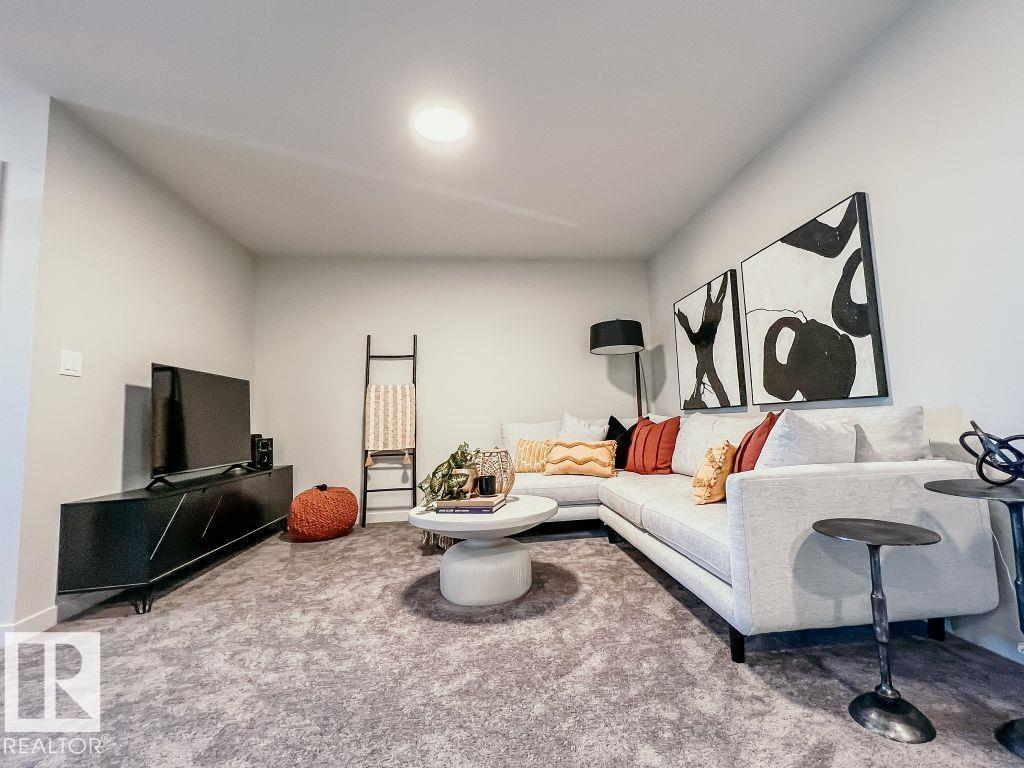 Welcome to the Entertain Impression 20 by Cantiro Homes! Step into the stunning 1832 sq ft front drive single family home featuring 3 beds and 2.5 baths, designed with entertaining in mind. The Entertain Impression floorplan offers an oversized kitchen island, a spacious dining area perfect for hosting, and an upstairs recreation room for family fun or casual gatherings. Boasting a modern Shade interior style with chic black and white accents, this home exudes contemporary elegance. The West Coast Fusion Plus exterior impresses with a side entry, electric fireplace, and 9' foundation, complemented by glass railings. Every detail has been thoughtfully designed for homeowners who love to entertain and make a lasting impression. Photos are representative. (id:63190)