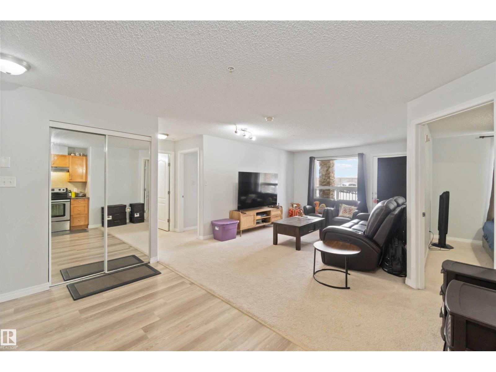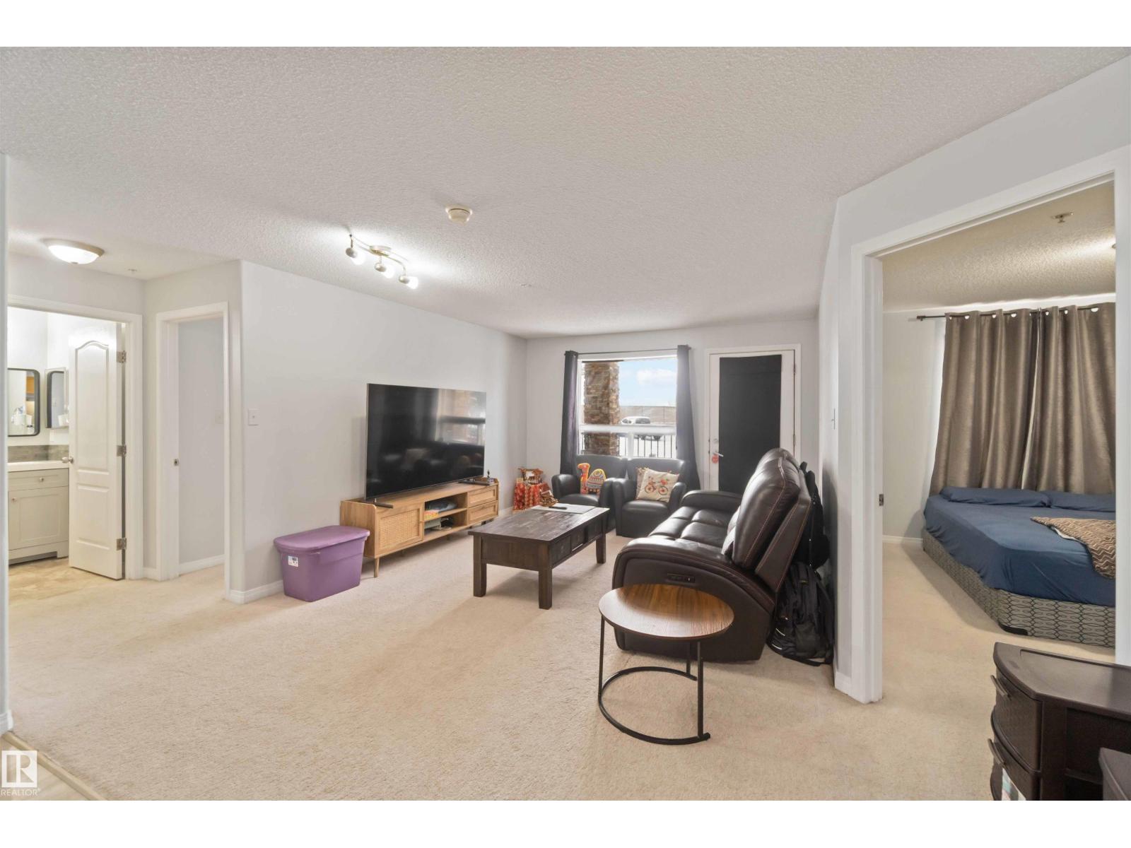 Welcome to this freshly painted main floor condo in South Terwillegar, offering a bright, comfortable layout designed for easy living. The open-concept kitchen, dining area, and living room create an inviting space perfect for relaxing or hosting friends. The primary bedroom includes a walk-thru closet leading to a 4pc ensuite, while the second bedroom and additional 4pc bath provide great flexibility for guests or a home office. You’ll appreciate the large in-suite laundry room with extra storage, complete with a BRAND NEW washer and dryer—an incredible bonus in condo living. Step outside to a spacious balcony, ideal for morning coffee or unwinding after a long day. The building features a fully equipped gym and entertainment rooms, and the unit includes an above-ground parking stall for year-round convenience. Close to the rec centre, shopping, the Anthony Henday, and the airport, this home blends comfort, updates, and location seamlessly. All this home needs is YOU! (id:63190)