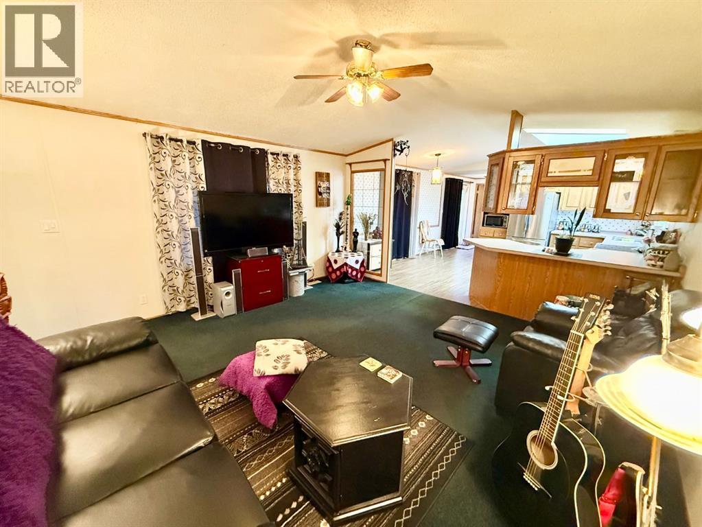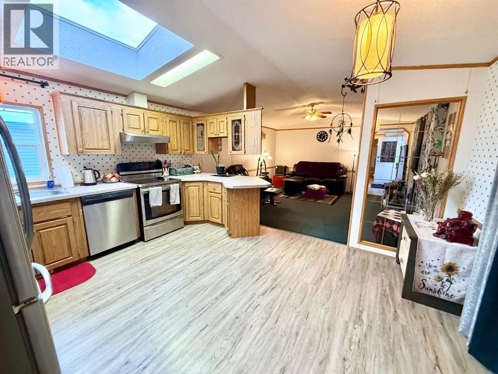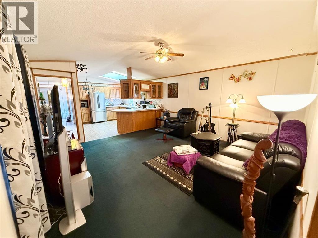 Beautifully maintained home in a quiet, adult only community! This spacious open-concept layout features large windows and a skylight the fill the living areas with natural light. The kitchen offers oak cabinetry, loads of cupboard space, all appliances included and a dedicated dining area. The primary bedroom is privately situated and includes a 4 piece ensuite with a soaker tub plus a large walk in closet. At the opposite end are two additional bedrooms and another 4 piece bathroom, perfect for guests or a home office. You'll love the convenience of the separate laundry room with sink, along with valuable recent upgrades including shingles, furnace, hot water tank, and eaves. Outside features a large deck, private yard, double driveway, and two storage sheds. Move-in ready and set in a peaceful location - this is affordable, low maintenance living at its best. (id:63190)