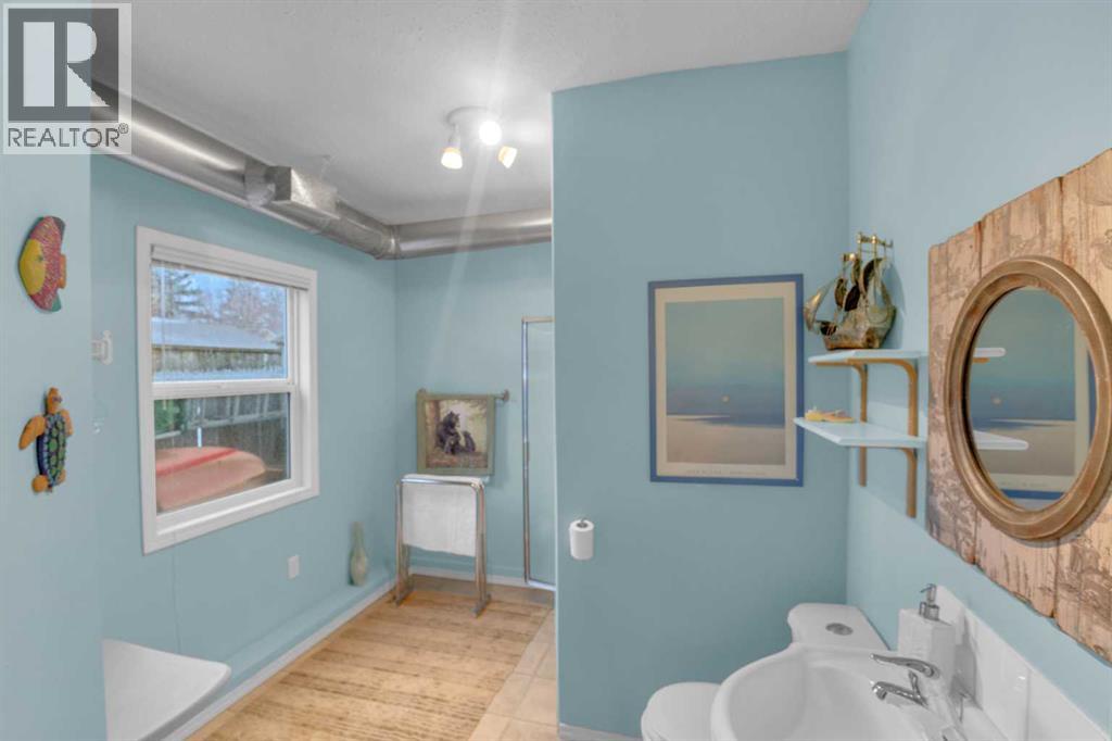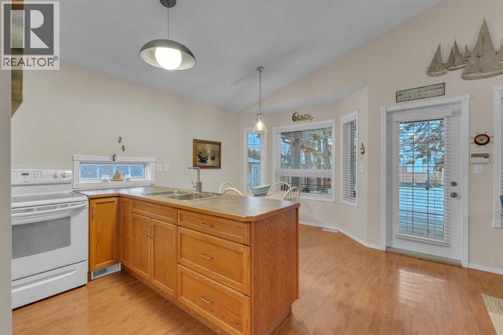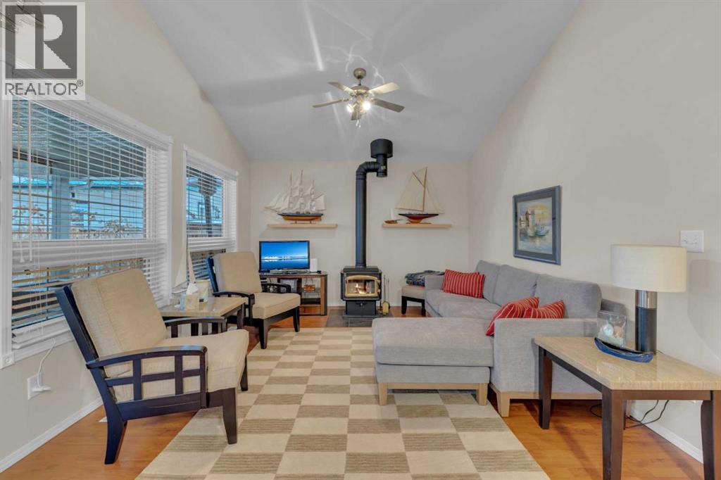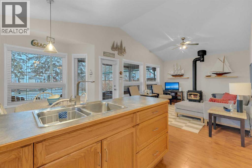 Charming year round Cabin + Studio on one of Sylvan Lake’s Most Sought-After Streets! Nestled in the highly desirable Sylvan Lake Cottage Area, this unique property offers 1,359 sq ft of total living space, featuring an 868 sq ft, 2-bedroom, 1-bathroom cabin along with a 501 sq ft studio that adds an additional space. The bright and versatile studio, equipped with its own furnace, 3-piece bath—an ideal setup for guests and extended family. This space is also perfect for crafts, hobbies, music enthusiasts, or anyone needing a creative retreat. Step into the main cabin’s inviting vaulted-ceiling great room, complete with a full kitchen and pantry, spacious dining area, cozy wood-burning stove, and laminate flooring throughout. The layout flows effortlessly to a generous primary bedroom, a second bedroom, and a well-appointed 4-piece bathroom. A 4-ft poured concrete basement houses the furnace, water softener, and sump pump, providing ample clean, dry storage. Sitting on a 40’ x 140’ lot, the property showcases one of the area’s largest gardens, surrounded by mature evergreens and enhanced by professional landscaping with flowers blooming in stages from spring through fall. The fully fenced and exceptionally private yard can be enjoyed from the covered, oversized deck that spans the width of the home—perfect for morning coffee or evening relaxation. All appliances, blinds, fixtures, a full-size washer and dryer, and a water softener are included, allowing you to simply move in and start enjoying lake life. This lovingly maintained property is in exceptional condition, offering a rare turnkey opportunity filled with comfort, charm, and incredible potential—right in the heart of Sylvan Lake. (id:63190)