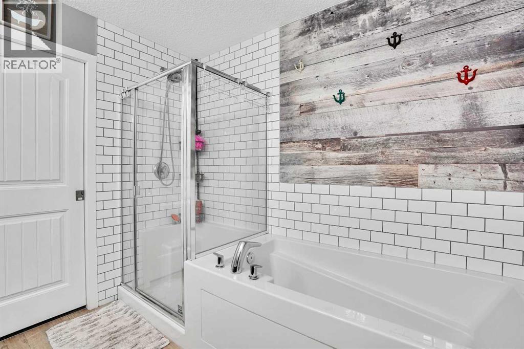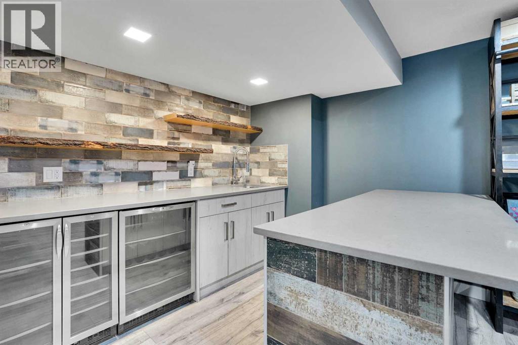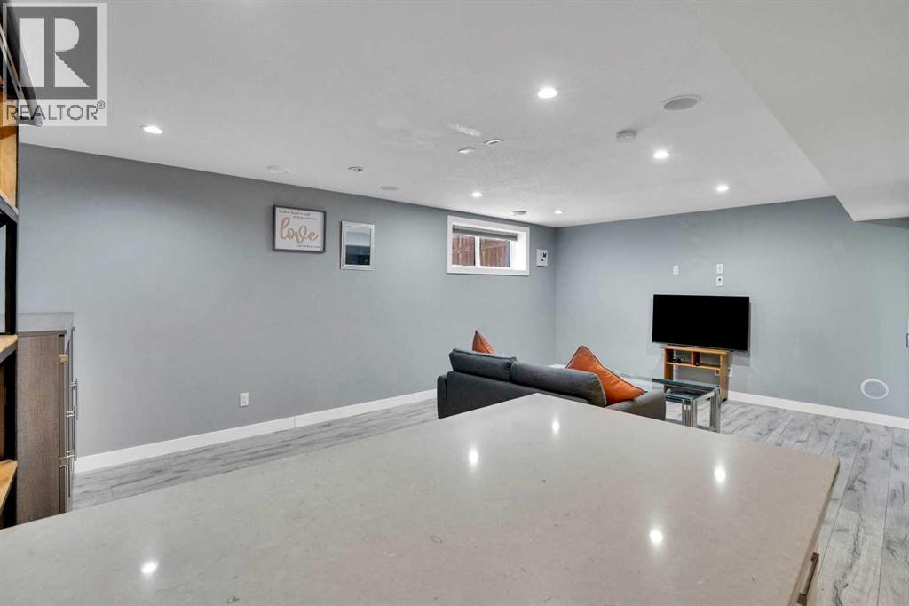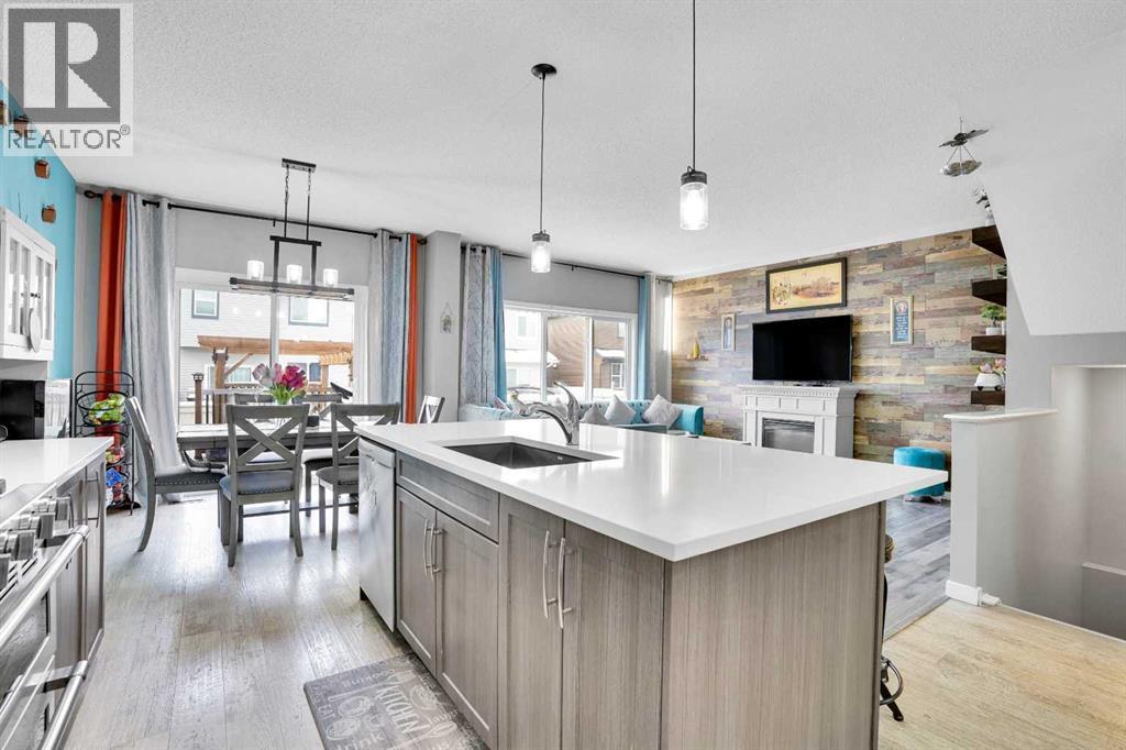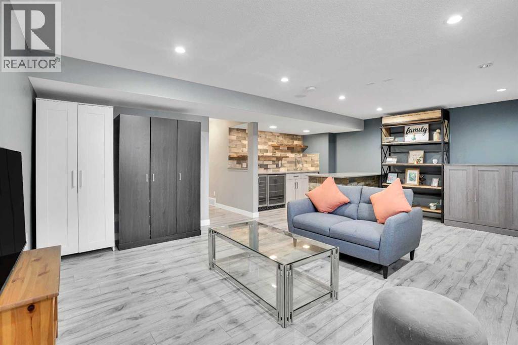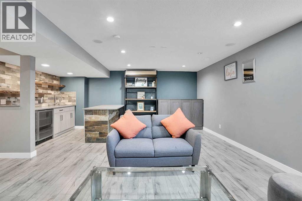 FINISHED BASEMENT! AMAZING OPPORTUNITY! to own a truly remarkable 4 BED 3.5 BATH with over 2260 SQFT of developed living space property in one of the Airdrie’s most sought-after communities—‘Kings Heights’. Thoughtfully customized from top to bottom, inside and out, this beautifully modernized two-storey home with a double attached garage stands out with its unique features and exceptional planning. Step inside '100 Kingsbury Close', through the charming covered veranda and into a spacious front entry with a coat closet. Continue past the stylish half bath to the stunning open-concept main floor, showcasing a fresh colour palette, upgraded lighting, LVP flooring for all floors and 9’ ceilings. The chef’s kitchen is a showstopper, featuring: Granite under-mount farmhouse sink, Gas stove with oven, Heavy duty newly installed hood fan, Bosch dishwasher, Large island with eating bar, Abundance of soft-close cabinetry, Quartz countertops and Walk-in pantry with pocket door and motion-sensor lighting! The expansive living room is brightened by large windows and accented with a rustic feature wall and shelves, fireplace, while the generous dining area provides access to the west-facing backyard retreat. Perfect for entertaining, this outdoor space includes a two-tier deck, Pergola, built-in Bench seating, Fire Pit, plenty of green space, fully fenced and gated for excellent privacy!! Upstairs, you’ll find a bright and inviting primary suite featuring stunning feature walls, a walk-in closet, and a luxurious 5-piece ensuite complete with dual sinks, a soaker tub and tiled shower. The upper level also offers other three additional spacious bedrooms, a 4-piece main bath, and a perfectly sized laundry room equipped with a pedestal sidekick washer. FINISHED BASEMENT—a beautifully designed space loaded with upgrades! Enjoy a gorgeous wet bar with two beverage coolers, raised eating bar, ample cabinetry, and live-edge shelving. The basement also includes a generous living are a with built-in SPEAKERS, a stunning 3-piece bathroom with an oversized tiled walk-in shower, HEATED FLOOR, and excellent storage options. This home continues to impress with $25,000 in premium upgrades, including: Professionally installed heater in double attached garage with abundant shelving, Tankless water heater, Heavy duty hood fan in the kitchen, Central A/C, Heated floor in the basement washroom, LVP flooring all around (except basement stairs), Two outdoor storage sheds, Two-tier deck with pergola and a seating bench and Watts Exterior Bluetooth lightings. Bothered from on-road traffic noise? Welcome! This property is located in a quiet close (CL)—no through traffic—this home is perfectly positioned for families. It is just steps away from schools such as Heloise Lorimer (Eng)/École des Hautes-Plains, skating rink, parks, walking trails to pond and three football fields. If you’re looking for a home full of character, thoughtful upgrades, and unique features, this one is truly a must-see! (id:63190)