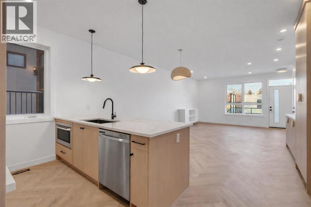 Move into the heart of South Calgary today with this brand-new, walkout townhome that perfectly blends luxury, location, and low-maintenance living! Thoughtfully designed w/ 3 beds, 2.5 baths, and a LEGAL 1 BED SUITE (approved by the city), this is inner-city living without compromise! The interiors strike a perfect balance between modern luxury & livable design. Find high-end finishes that are rare to find at this price point — blonde wood tones, sleek custom cabinetry, and modern & thoughtful tile. Designer hardware, mid-century inspired embellishments, and a clean neutral palette give this space a fresh, elevated vibe. The kitchen is the heart of the home, designed w/ both form and function in mind. A large quartz island anchors the space w/ bar seating for casual meals or morning coffee. There's a full stainless steel appliance package, generous cabinetry, and a stylish backsplash that adds just the right amount of visual interest. It's open to the dining area and spacious living room & balcony, creating the perfect layout for hosting or just relaxing at home. And don’t forget the upscale powder room, complete w/ designer lighting. Upstairs, the primary suite feels like a boutique hotel retreat w/ a PRIVATE BALCONY, a large walk-in closet, and a modern 3-pc ensuite w/ a fully tiled walk-in shower. Two additional bedrooms and a full bathroom give you space for guests, kids, or home office! And yes, there's a laundry room upstairs, tucked conveniently between bedrooms. Downstairs is perfectly set up for a mortgage helper, additional income generator, or the perfect spot for multi-generational living w/ a LEGAL 1-BED SUITE (approved by the city). The modern touches flow into this space as well, w/ an open kitchen & living room space w/ ceiling-height cabinetry, stainless steel appliances, and quartz countertops, complete w/ separate laundry, a great-sized bedroom, and a full 4-pc bathroom. There is a separate entrance to the suite, as well as access from the main h ome to the suite for complete ease of use. The suite also boasts a private deck. The low-maintenance landscaping and a detached garage at the back are a serious bonus in the inner city. The backyard also features upright bike racks & secure CycleSafe lockers for added convenience. You’re tucked into a tree-lined street in South Calgary, but just a short stroll to absolutely everything. Our Daily Brett and South Calgary Pool & library are just at the end of the street, cSPACE King Edward’s arts & community programming is just a few blocks over, and all the everyday amenities in Marda Loop are w/in walking distance — Blush Lane Organic Market, Safeway, Shoppers, fitness studios, and an incredible lineup of restaurants. You’re minutes from 17th Ave’s restaurants & nightlife, and a quick commute to downtown! Whether you're looking for a stylish new home in an established neighbourhood or a long-term rental property w/ strong demand, this unit is an incredible opportunity! *pictures from show suite* (id:63190)