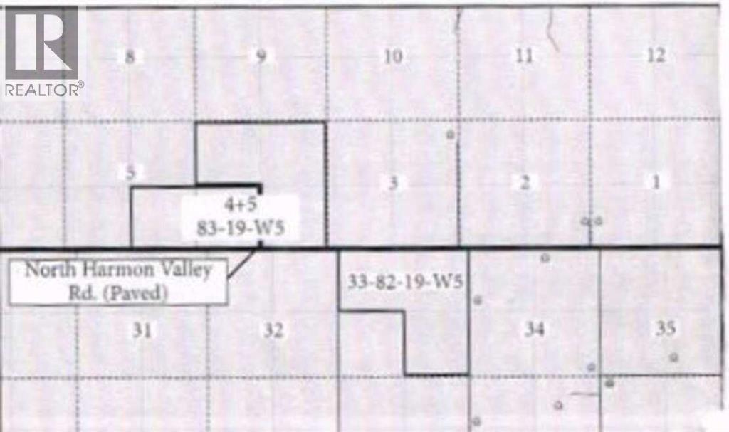 For more information, please click the "More Information" button. An exceptional opportunity awaits with five quarters of prime agricultural land available for sale. Located just 15 miles southeast of Peace River, this expansive property offers a blend of arable land and grazing areas, making it ideal for a variety of agricultural pursuits. The property is conveniently accessed from the North Harmon Valley Road, township road 830, which is a paved highway, ensuring easy and reliable access year-round. This strategic location provides both the tranquility of rural living and the convenience of being close to Peace River. Arable Land: Most of the land is arable, offering fertile soil perfect for crop production. Whether you’re looking to expand your farming operations or start a new agricultural venture, this land provides ample opportunity. Grazing Areas: The property is also fenced off for grazing, making it suitable for livestock. The combination of arable land and grazing areas allows for diversified farming activities. Hay Production: Some sections of the land are seeded to hay, providing an additional source of income or feed for livestock. Water Resources: The property includes two dugouts, ensuring a reliable water supply for both crops and livestock. (id:63190)