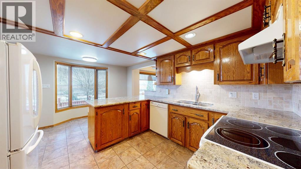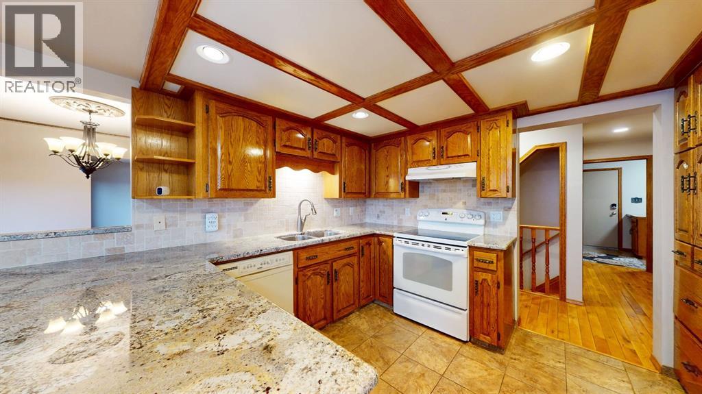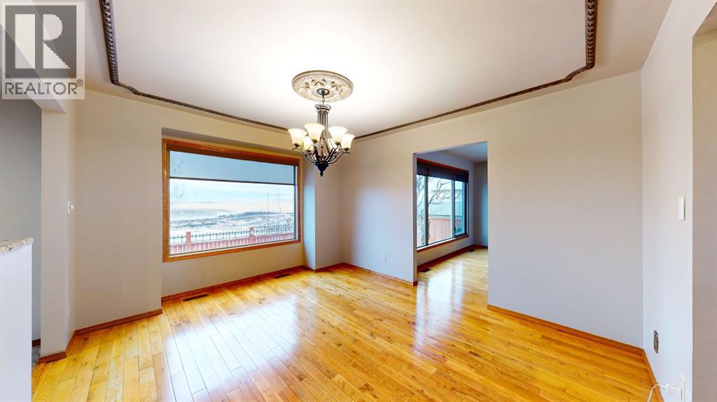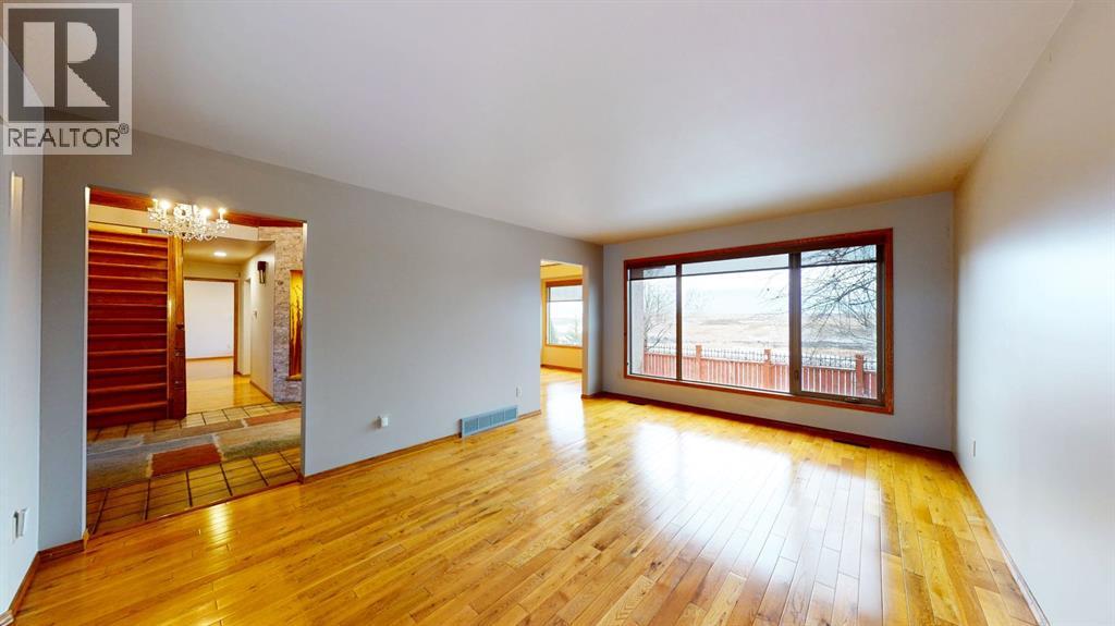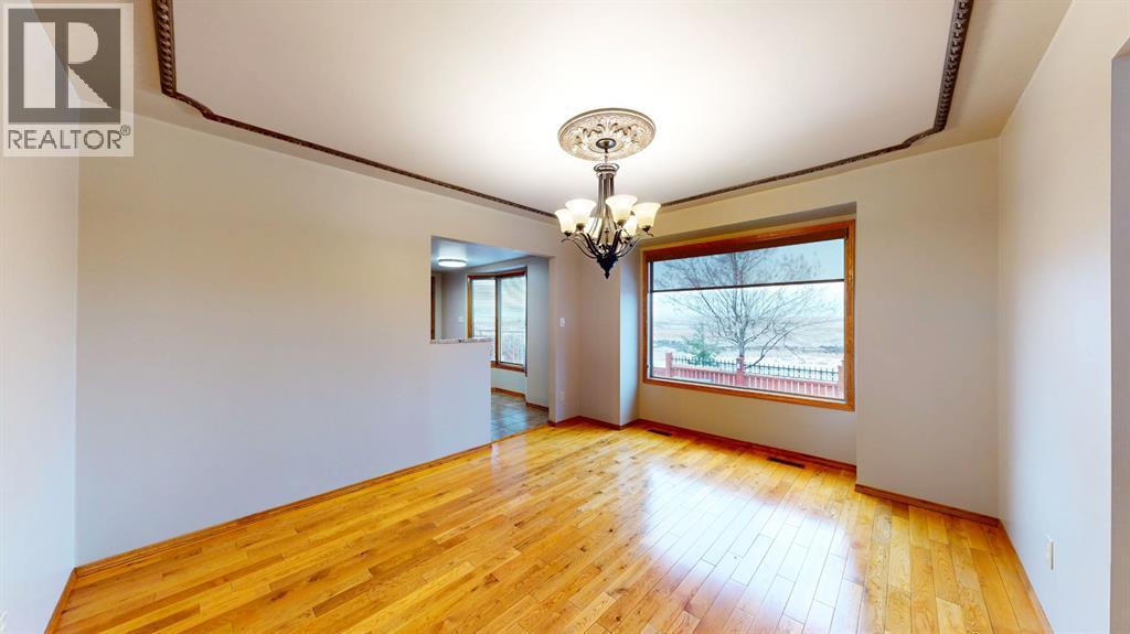 Exceptional Property with Stunning East-Facing ViewsDiscover this beautifully appointed custom 2,500 sq. ft. two-storey home, ideally situated in a highly sought-after location with captivating views of the coulee and breathtaking Southeast Alberta sunrises. On clear days, you may even catch a glimpse of the Cypress Hills. Conveniently located near schools, shopping, and both city and school bus routes, this property offers an exceptional lifestyle.The main floor showcases elegant hardwood and tile flooring throughout. As you enter this home through the beautiful foyer you will enjoy a spacious living room, a beautifully designed kitchen with granite countertops, a large formal dining room, a cozy family room featuring a floor-to-ceiling brick wood-burning fireplace, as well as a large laundry room and a dedicated office.Upstairs, you’ll find three generous bedrooms, two full bathrooms, and a bonus entertainment room with high tower ceilings above the impressive foyer.The fully developed lower level includes two additional large bedrooms—one with an expansive walk-in closet. Also, you will find a full bathroom, a TV room, an exercise room, a large storage room, a bar area, and a wine cellar. The home is equipped with two high-efficiency furnaces for year-round comfort.The heated double attached garage offers direct entry to the home. Outdoors, enjoy a comfortable rear deck complete with a fire table and BBQ, along with a landscaped yard featuring shrubs and lawn. The front yard is beautifully finished with rock accents, plantings, fountains, and statuary. A garden shed is conveniently located in the side yard.With so many exceptional features, this home is truly a must-see. Schedule your viewing today or explore the 3D walk-through! (id:63190)