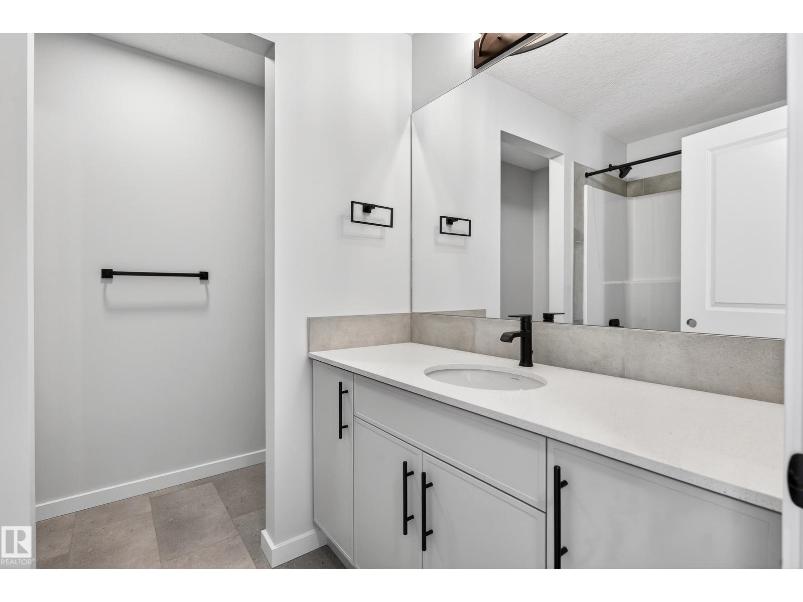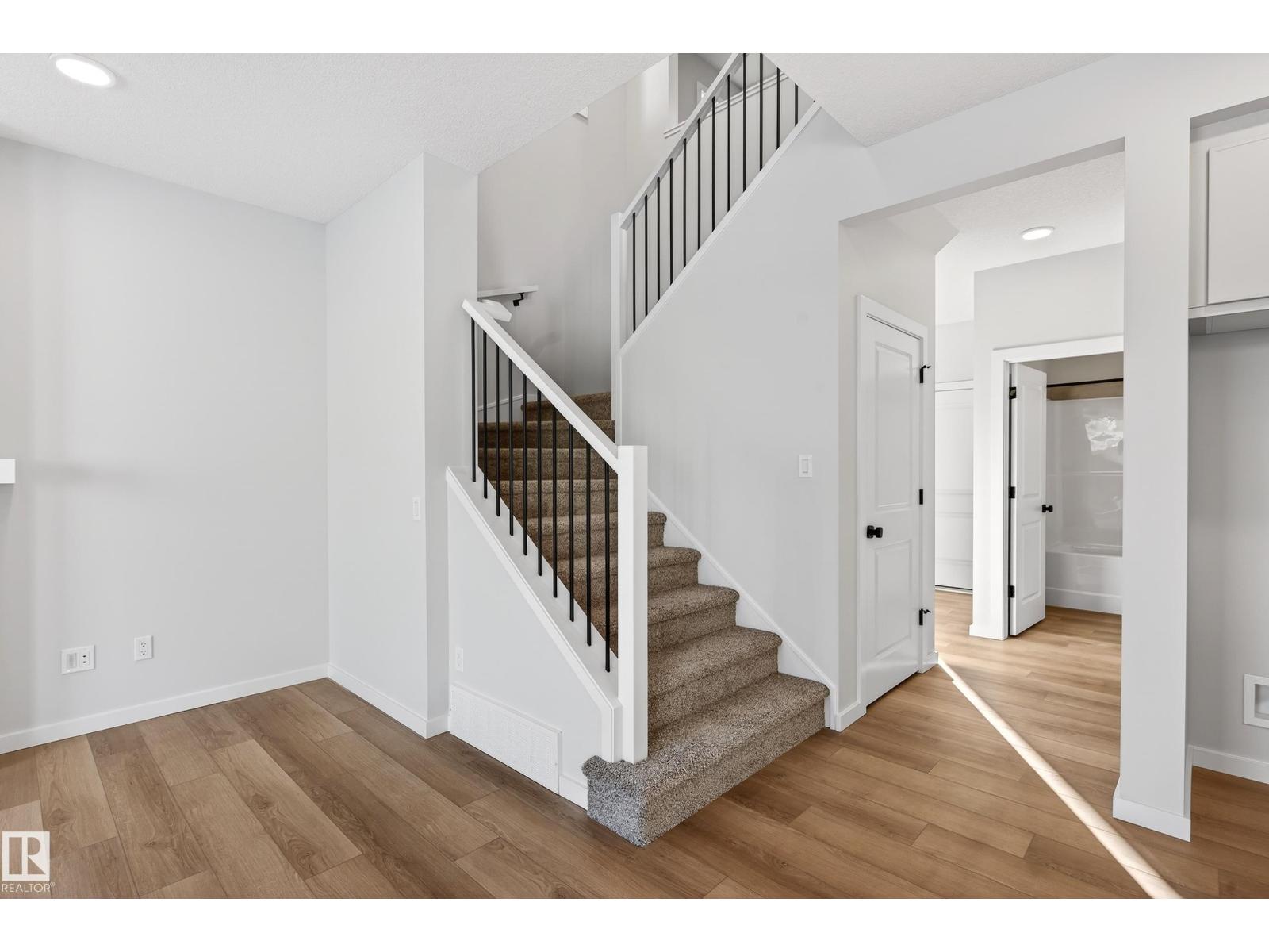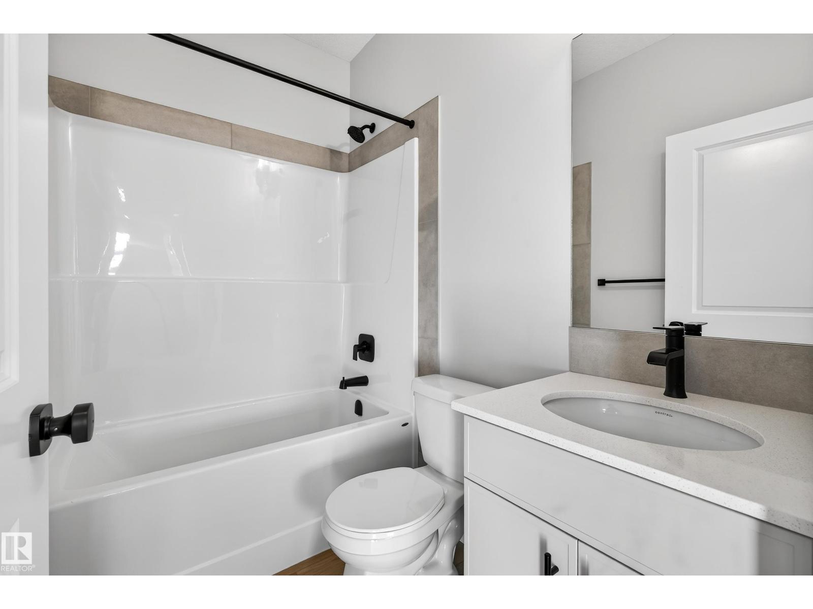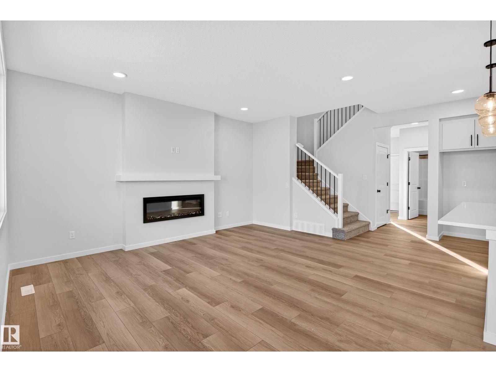 MOVE IN READY | LUXURY FINISHINGS | SUPERIOR QUALITY| SEPARATE SIDE ENTRANCE to 9’ foundation unfinished basement that is ready for future legal suite. HOMES BY AVI welcomes you to picturesque River's Edge, a community filled with hiking trails, beautiful natural scenery & nearby North Saskatchewan River. This exceptional 2 storey home displays stunning details throughout with 4 spacious bedrooms & 3 FULL bathrooms (one bed/bath on main level). Upper level showcases 1190 SQ FT with a desired living ensemble that includes a loft- style family room, quaint office & full-sized laundry room with storage. King-sized primary retreat offers a 5-piece ensuite with dual sinks, glass shower, soaker tub, private stall & WIC. Gorgeous detail throughout home with luxury vinyl plank flooring, plush carpet, stunning electric fireplace, railing with iron spindles & quartz countertops. Upgraded kitchen with chimney hood fan, microwave shelf, pot & pan drawers, cabinets to upper bulkhead & robust appliance allowance. A++ (id:63190)