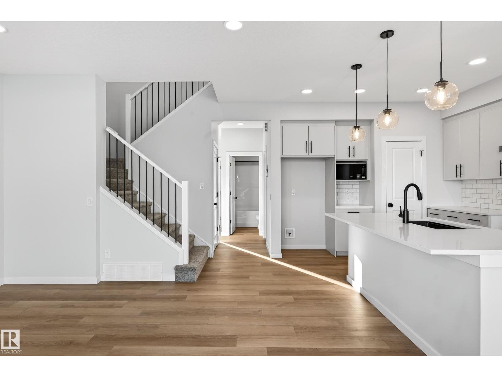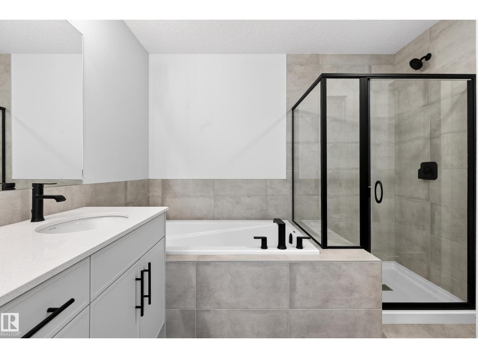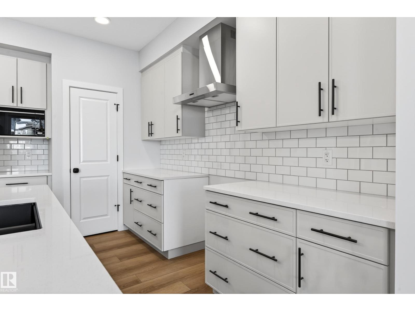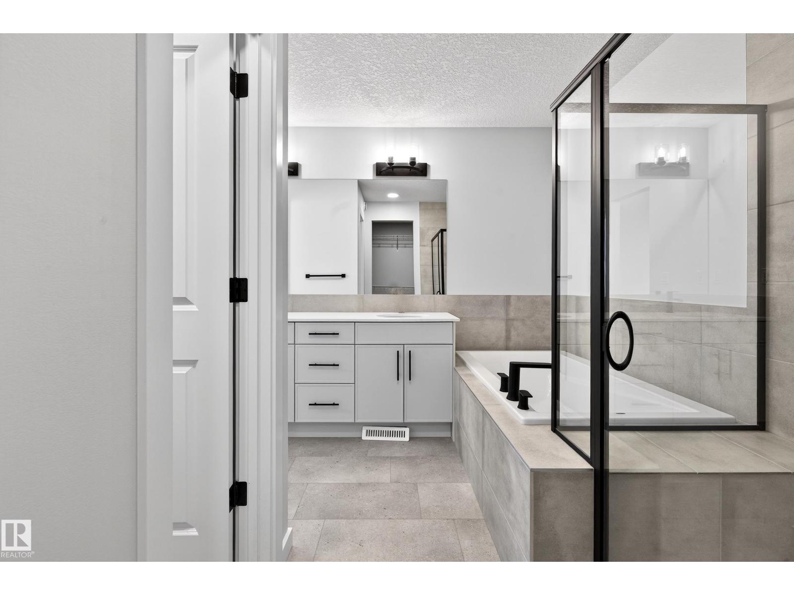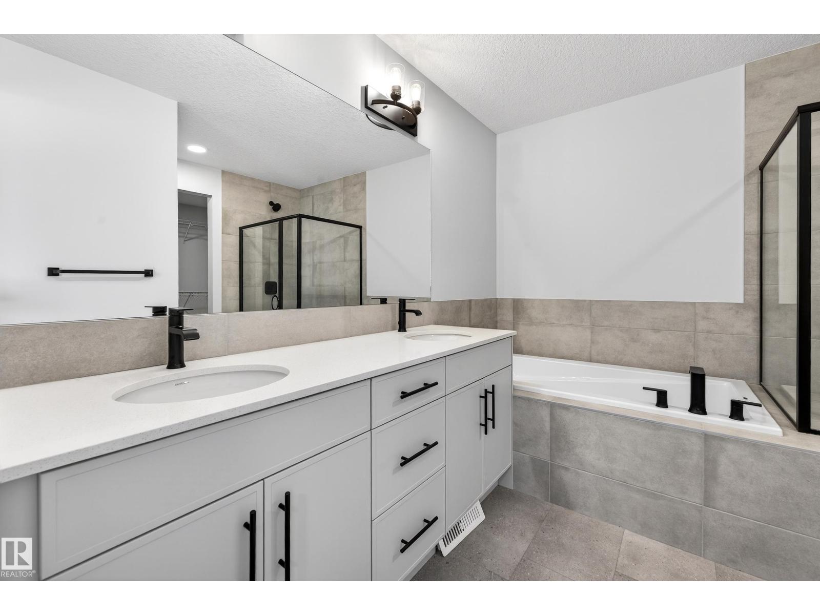 MOVE IN READY | LUXURY FINISHINGS | SUPERIOR QUALITY| SEPARATE SIDE ENTRANCE to 9’ foundation unfinished basement that is ready for future legal suite. HOMES BY AVI welcomes you to picturesque River's Edge, a community filled with hiking trails, beautiful natural scenery & nearby North Saskatchewan River. This exceptional 2 storey home displays stunning details throughout with 4 spacious bedrooms & 3 FULL bathrooms (one bed/bath on main level). Upper level showcases 1190 SQ FT with a desired living ensemble that includes a loft- style family room, quaint office & full-sized laundry room with storage. King-sized primary retreat offers a 5-piece ensuite with dual sinks, glass shower, soaker tub, private stall & WIC. Gorgeous detail throughout home with luxury vinyl plank flooring, plush carpet, stunning electric fireplace, railing with iron spindles & quartz countertops. Upgraded kitchen with chimney hood fan, microwave shelf, pot & pan drawers, cabinets to upper bulkhead & robust appliance allowance. A++ (id:63190)