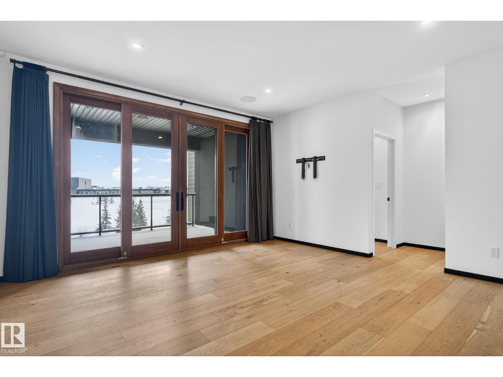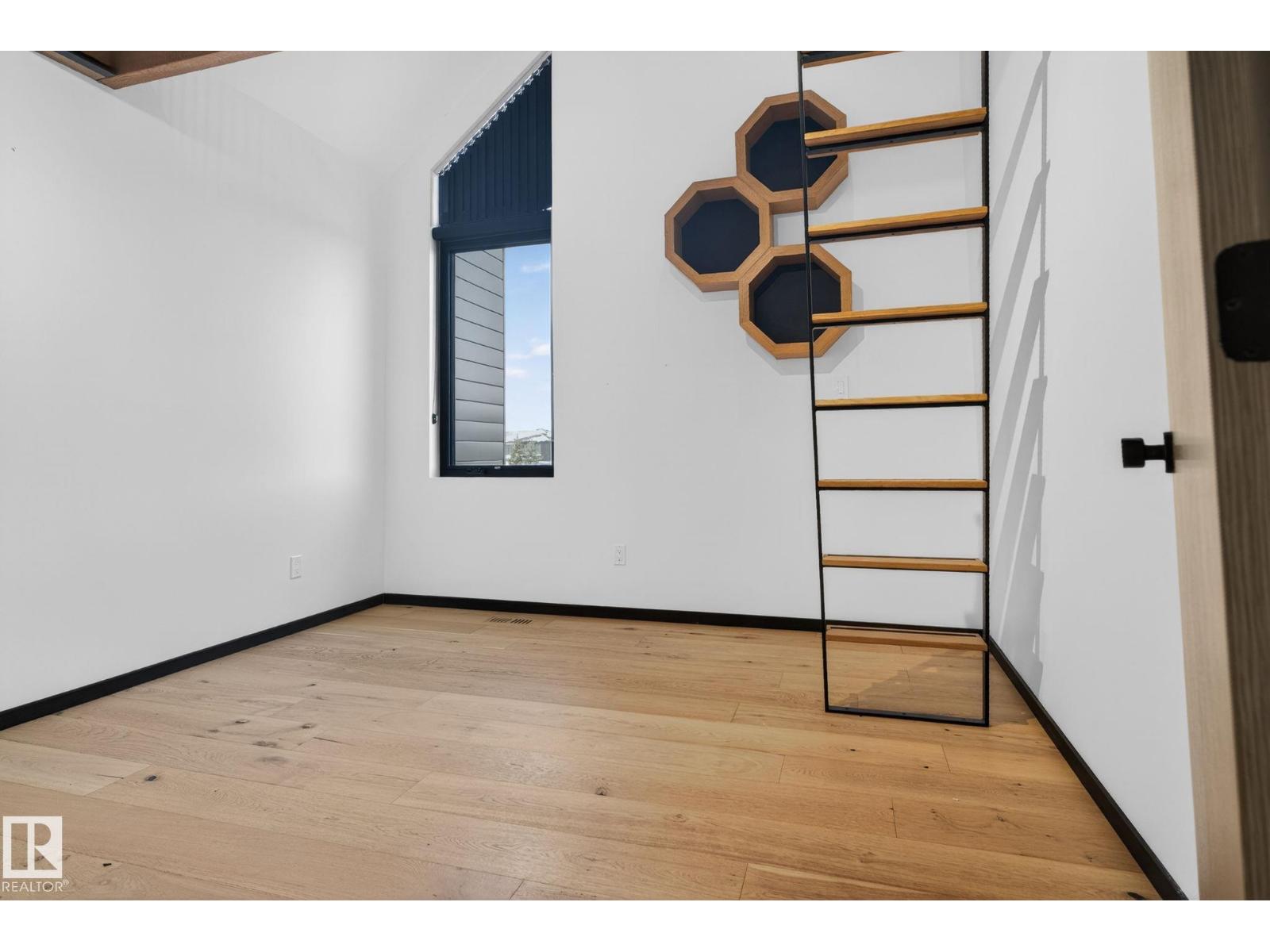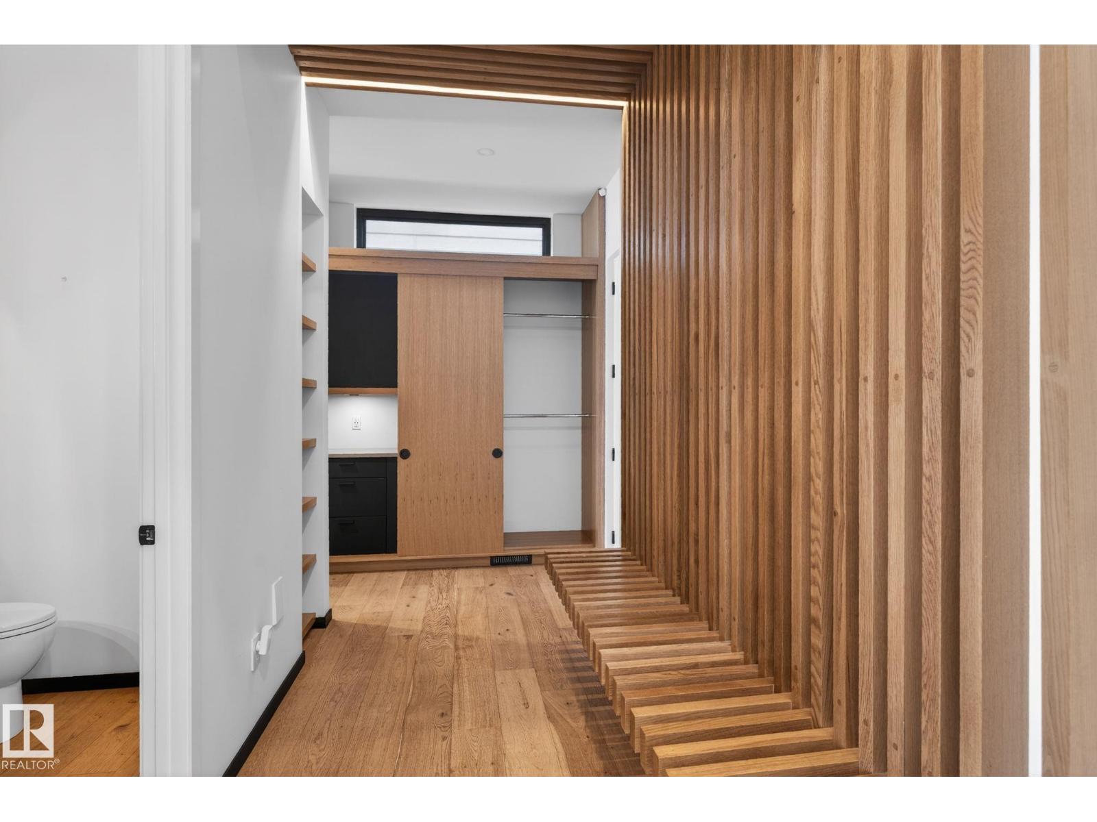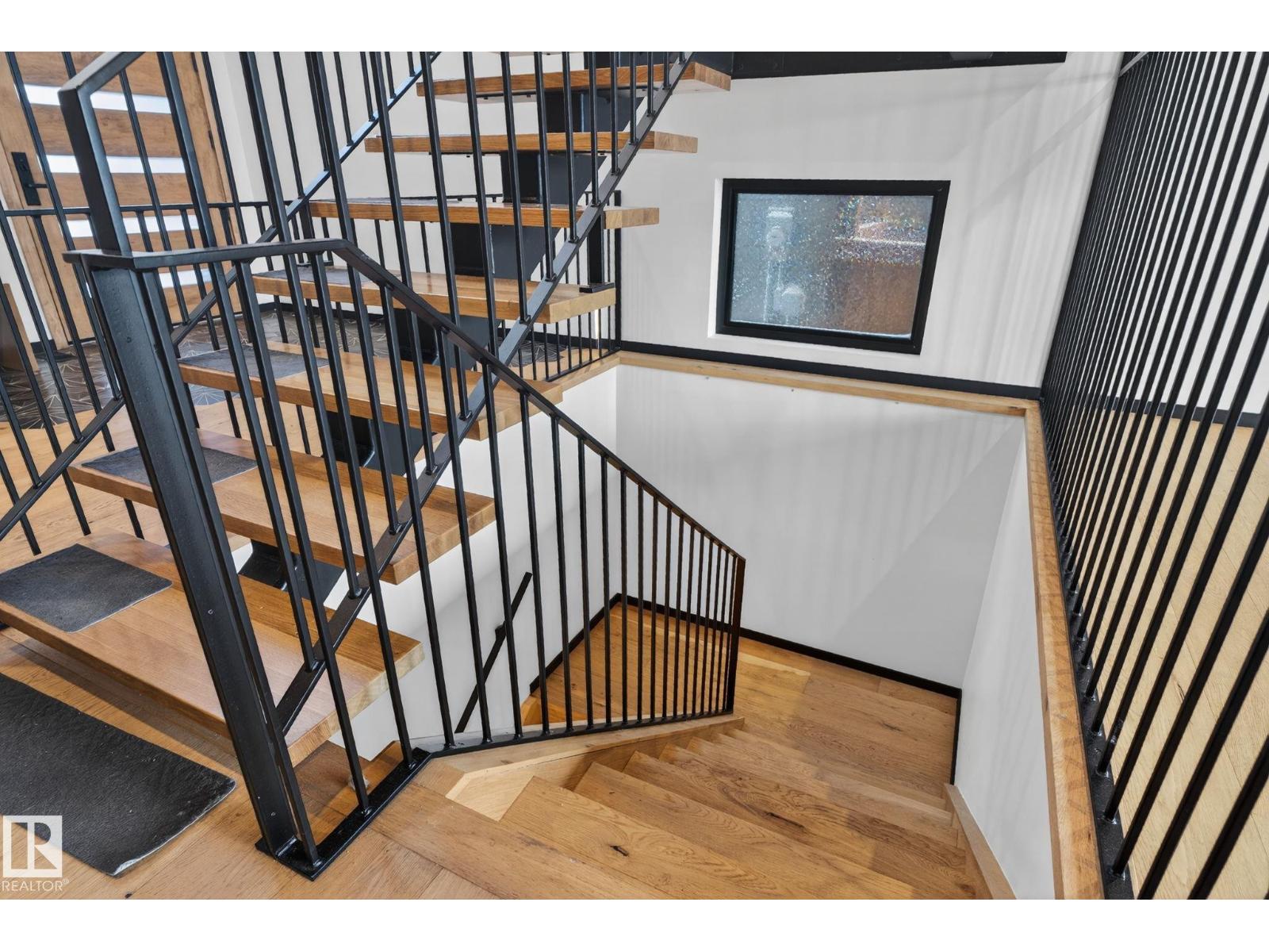Stunning Scandinavian-inspired former showhome backing onto greenspace and Father Leduc School Park. This architectural masterpiece offers over 3,400 sq ft of luxury with a custom marble sliding door, handcrafted iron railings, warm wood ceilings, and massive black-framed windows that fill the home with natural light. The kitchen impresses with over $50,000 in Dacor appliances, custom cabinetry, and refined design. Upstairs features 4 bedrooms including a unique loft bedroom and a peaceful primary suite. The fully finished basement includes a theatre room, fitness room, lounge space and 9' ceilings. Outside, two elevated decks capture the west-facing backyard’s evening sun and peaceful greenspace views, while the east-facing front brings warm morning light. Additional features include A/C, HEPA/UV air purification, floating ethanol fireplace, smart-home controls, and a heated polished garage. A rare luxury offering in Edgewater Estates. (id:63190)