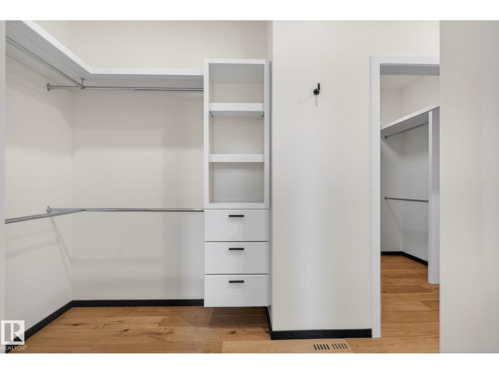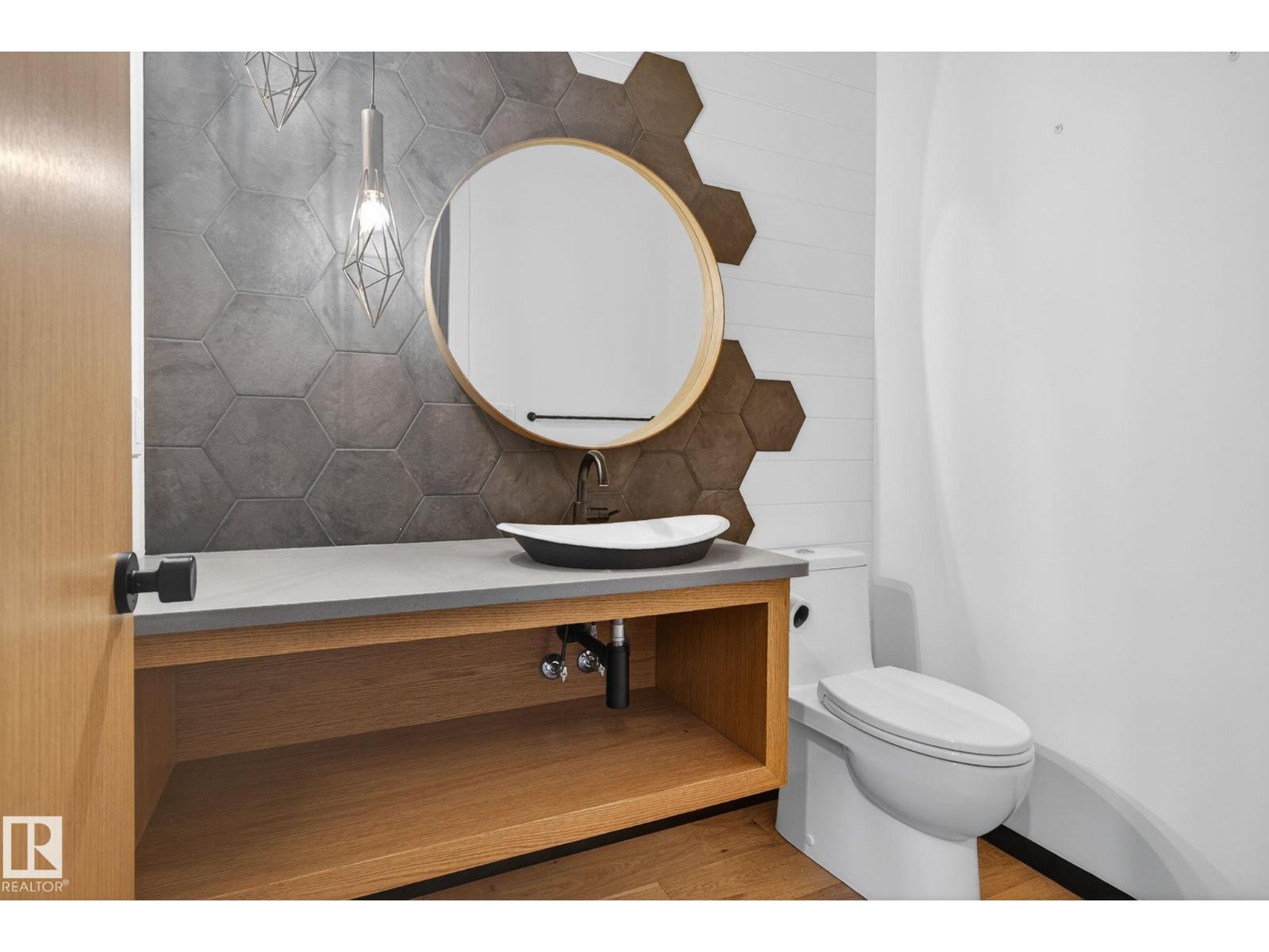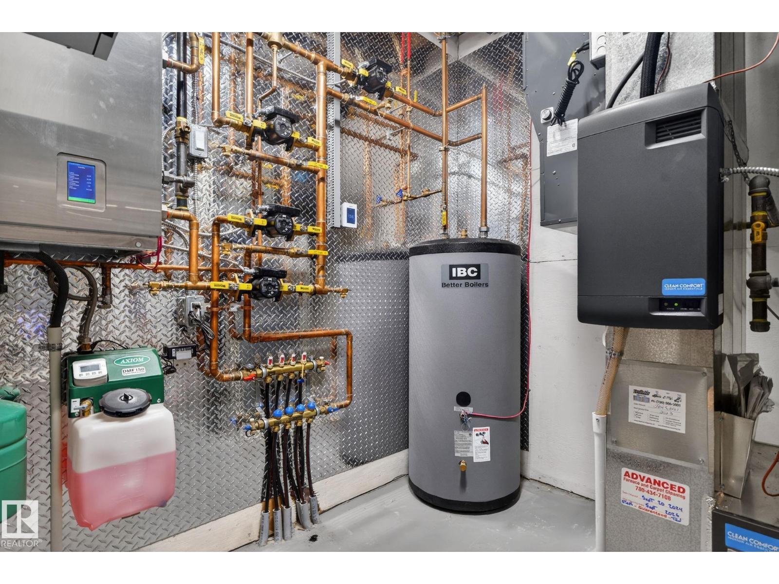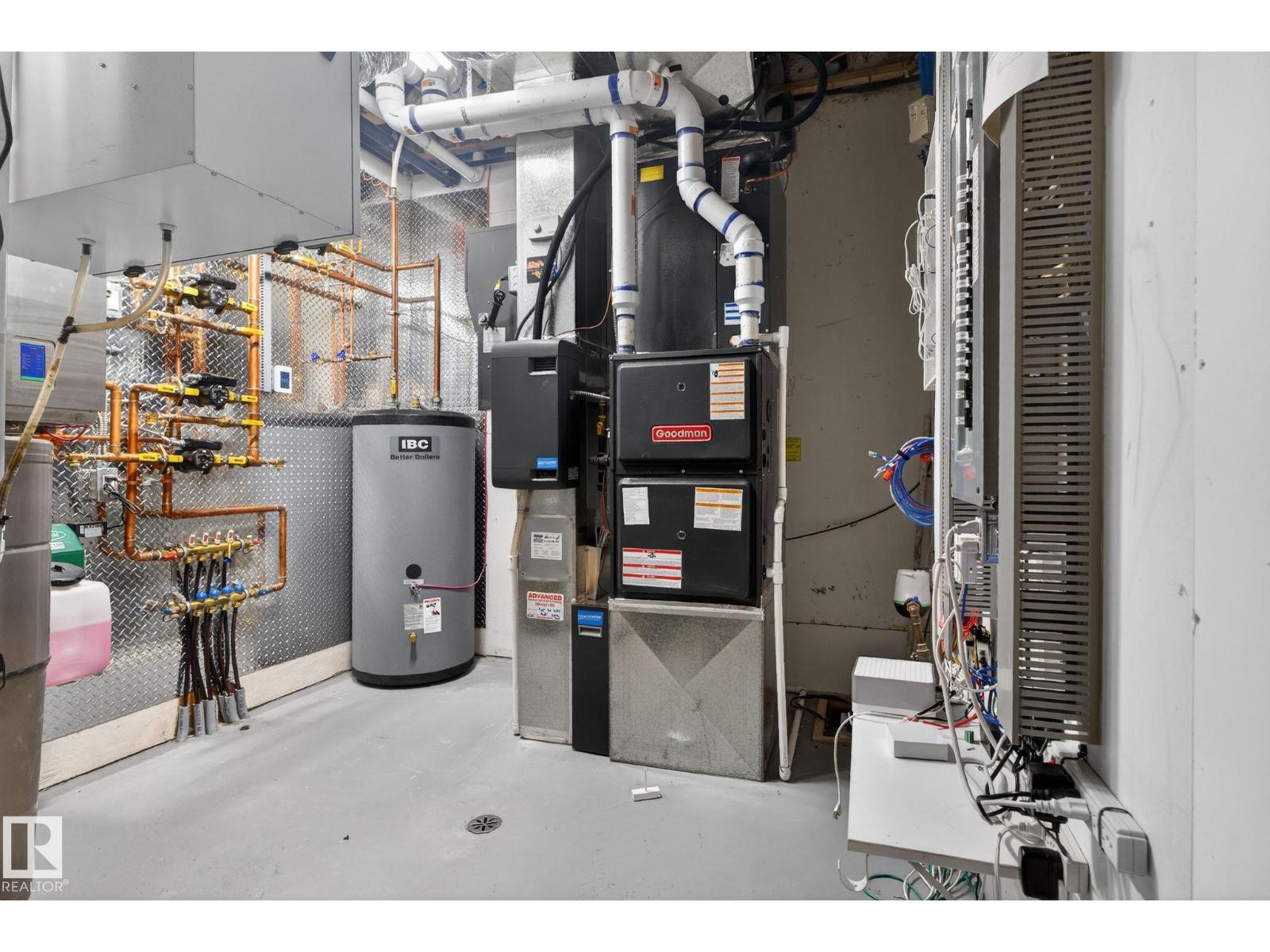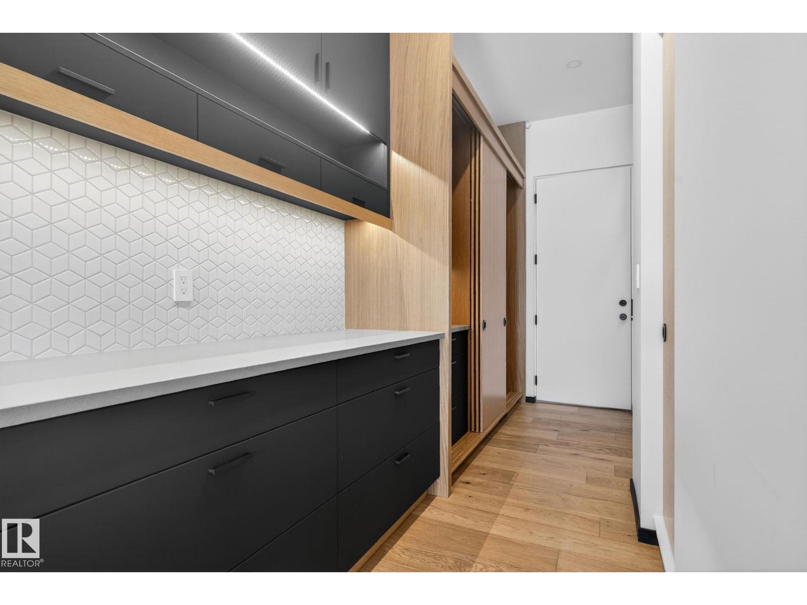 Stunning Scandinavian-inspired former showhome backing onto greenspace and Father Leduc School Park. This architectural masterpiece offers over 3,400 sq ft of luxury with a custom marble sliding door, handcrafted iron railings, warm wood ceilings, and massive black-framed windows that fill the home with natural light. The kitchen impresses with over $50,000 in Dacor appliances, custom cabinetry, and refined design. Upstairs features 4 bedrooms including a unique loft bedroom and a peaceful primary suite. The fully finished basement includes a theatre room, fitness room, lounge space and 9' ceilings. Outside, two elevated decks capture the west-facing backyard’s evening sun and peaceful greenspace views, while the east-facing front brings warm morning light. Additional features include A/C, HEPA/UV air purification, floating ethanol fireplace, smart-home controls, and a heated polished garage. A rare luxury offering in Edgewater Estates. (id:63190)