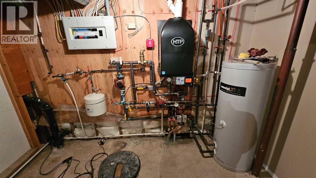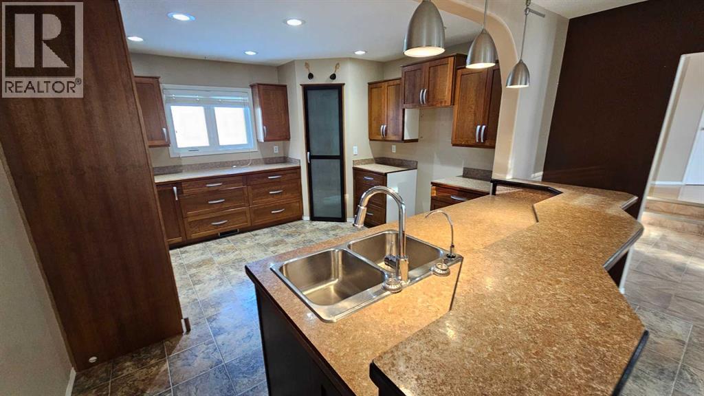 This spacious modern home in Consort, originally built in the 50's, this 1997 sq ft bungalow has gone though a major addition and renovation in 2006 & 2009. The location is excellent as the K-12 school is just east of the house. The lot is huge 95' x 130', and a driveway runs right through the property on the east side to make it very accessible to the back alley and the other double garage .The main floor has 3 bedrooms and 2 bathrooms, a spacious kitchen with a unique eating bar along with a large dining room, while the family room features a gas fireplace perfect to snuggle by in the cold winter with a loved one. The new basement is approx 1000 sq ft of the house, finished with a giant games room, wet bar and an additional bedroom and bath. The home has hot water on demand, hot water in floor heat in the basement addition and a forced air furnace for upstairs. There is a double attached garage( one wide, two deep) on the house and a double detached garage( two wide, one deep.. Normal) in the back yard. This is a very spacious home with lots of room and finished very nicely. Don't let this upgraded home escape your eyes. (id:63190)